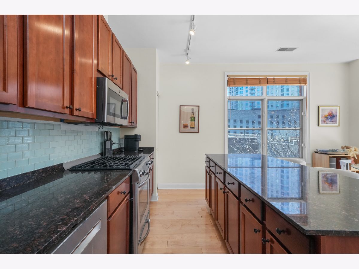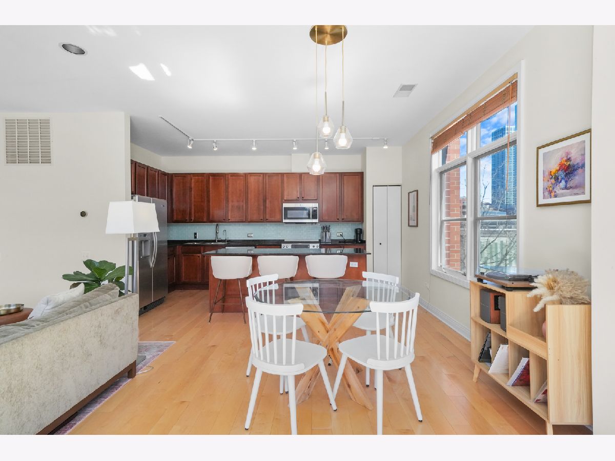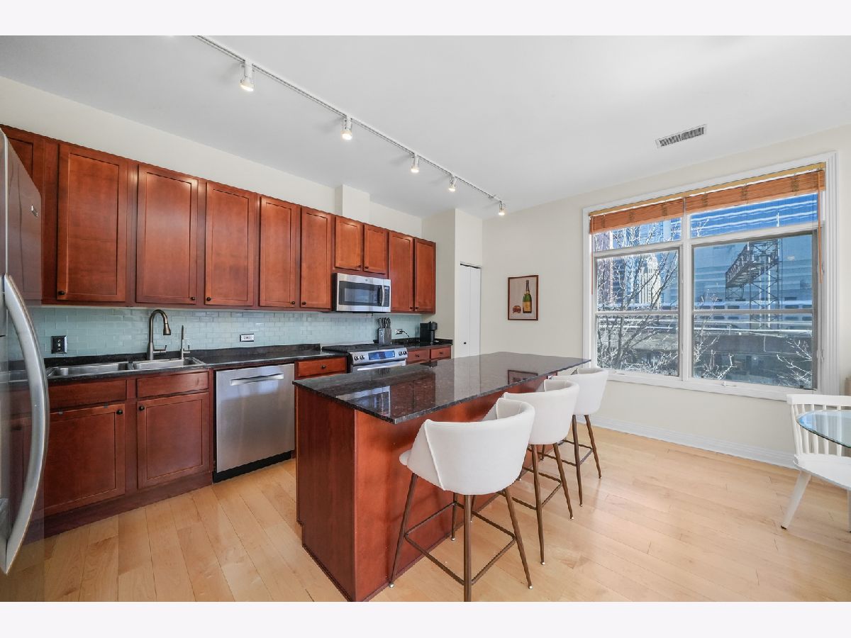 Stunning Corner 2-Bed, 2-Bath Condo with Breathtaking City Views! Flooded with natural light, this spacious CORNER condo in the heart of the Fulton River District offers an open floor plan and a large private balcony overlooking the city skyline. The chef's kitchen is designed for both style and function, featuring stainless steel appliances, granite countertops, and a sleek glass subway tile backsplash. The primary suite is a true retreat with a large walk-in closet, marble double vanity, separate glass-enclosed shower, and luxurious soaking tub. Additional highlights include in-unit laundry, heated garage parking, and extra storage. Located just moments from the East Bank Club, Randolph's Restaurant Row, the Riverwalk, the Loop, the "L", Metra, and major expressways, this home offers unmatched convenience and urban living at its finest. Don't miss this incredible opportunity to call it home! Explore the property in 3D! Click the 3D button to take a virtual tour and walk through every detail.
