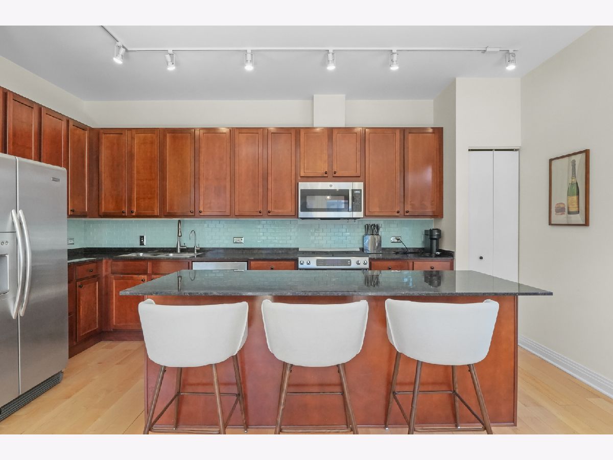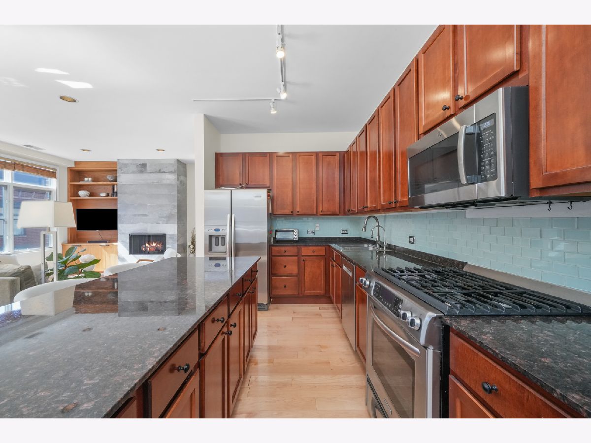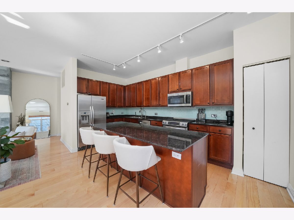 Stunning Corner 2-Bed, 2-Bath Condo with Breathtaking City Views! Flooded with natural light, this spacious CORNER condo in the heart of the Fulton River District offers an open floor plan and a large private balcony overlooking the city skyline. The chef's kitchen is designed for both style and function, featuring stainless steel appliances, granite countertops, and a sleek glass subway tile backsplash. The primary suite is a true retreat with a large walk-in closet, marble double vanity, separate glass-enclosed shower, and luxurious soaking tub. Additional highlights include in-unit laundry, heated garage parking, and extra storage. Located just moments from the East Bank Club, Randolph's Restaurant Row, the Riverwalk, the Loop, the "L", Metra, and major expressways, this home offers unmatched convenience and urban living at its finest. Don't miss this incredible opportunity to call it home! Explore the property in 3D! Click the 3D button to take a virtual tour and walk through every detail.