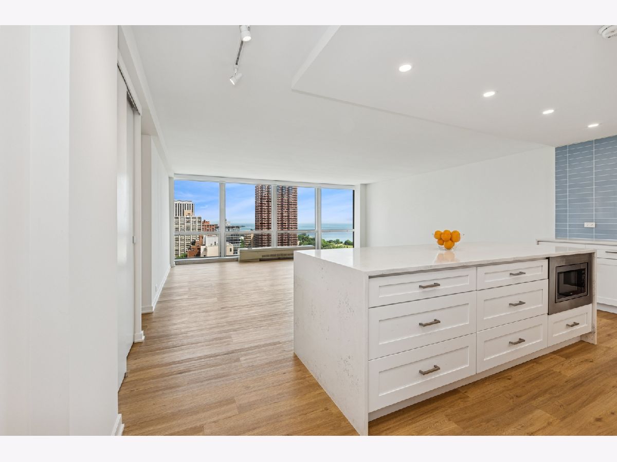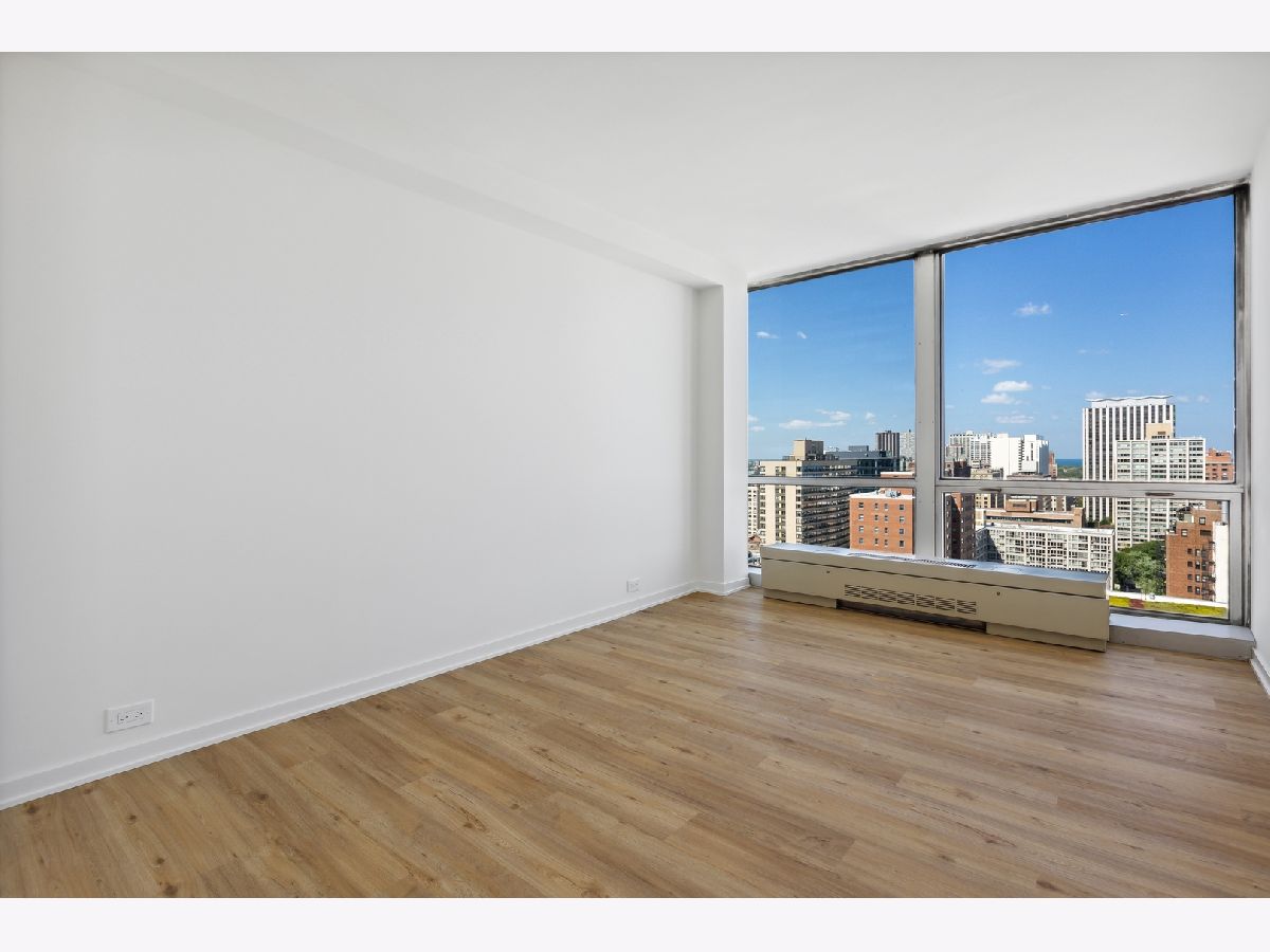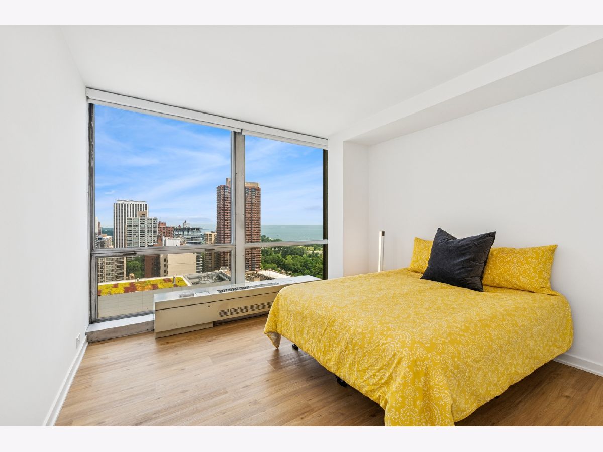 Amazing lake and neighborhood views from every room in this rarely available, high floor rehabbed unit at Commonwealth Plaza! Recent rehab consisted of all new plumbing and electric, new kitchen featuring high end appliances (Miele, Bosch, GE), quartz counters with waterfall edge, TONS of cabinets all with soft close, custom glass backsplash, and pantry. Huge living room with floor to ceiling, wall to wall glass, motorized shades, and gorgeous views of Lake Michigan and Lakeview! Both bathrooms were gutted with high end porcelain tile, electrified Robern medicine cabinets, and custom lighting. Primary bedroom features room for a king bed and full suite of furniture, en suite bath, walk in closet, and motorized blackout shades. 2nd bedroom can accommodate queen sized bed plus desk and dresser. This tier is the only one that features extra walk in closet off the foyer! Assessment includes 1 GIG fiber internet, deluxe cable package including Showtime & HBO, and access to all of the amenities. Building features 24 hour doorperson, outdoor pool, newly renovated fitness rooms, smart laundry center, BBQ/Playground area, herb garden, and commissary. Steps to Diversey Harbor and lakefront, Trader Joe's, Mariano's, CTA and Lincoln Park. Parking available immediately for lease.