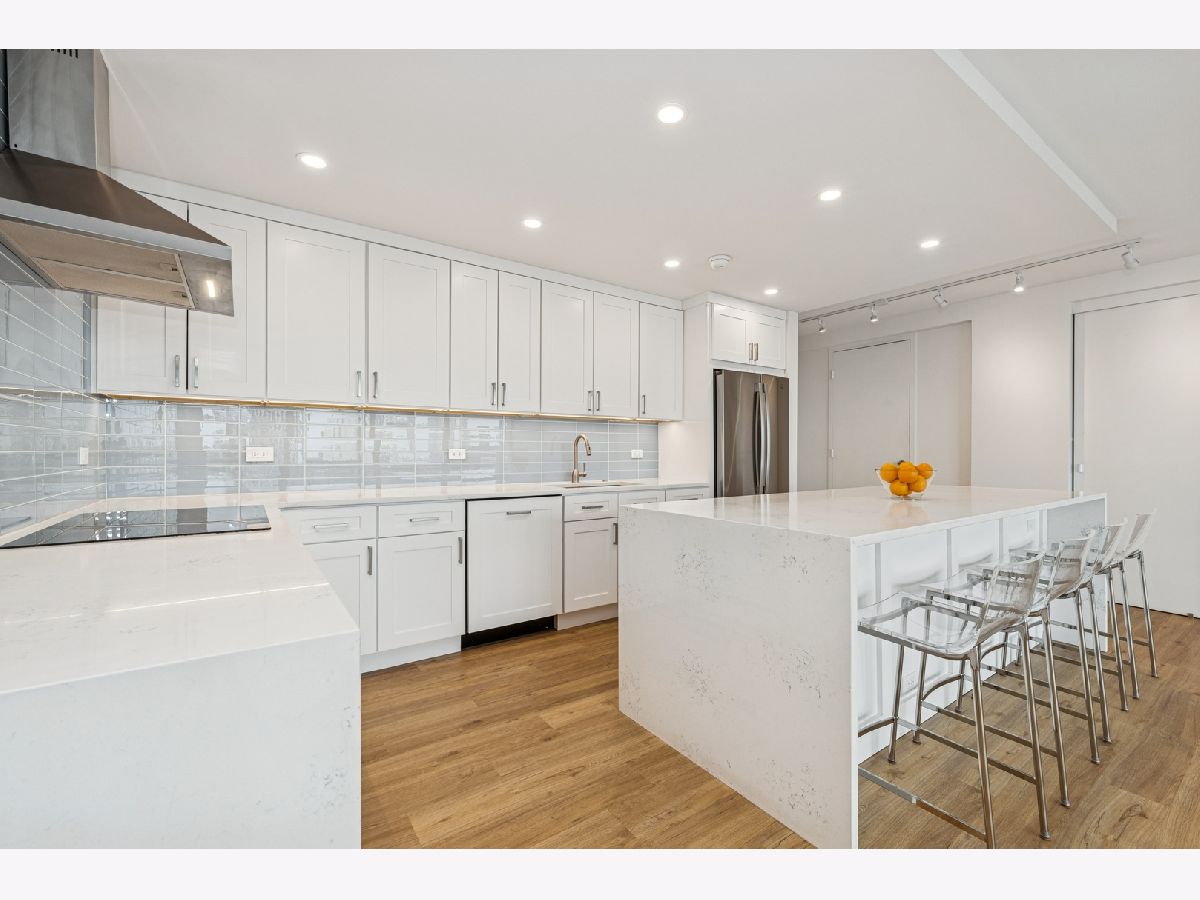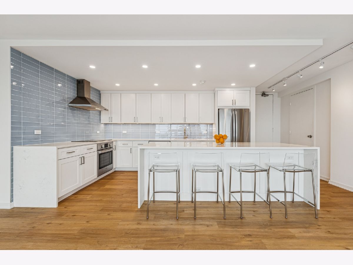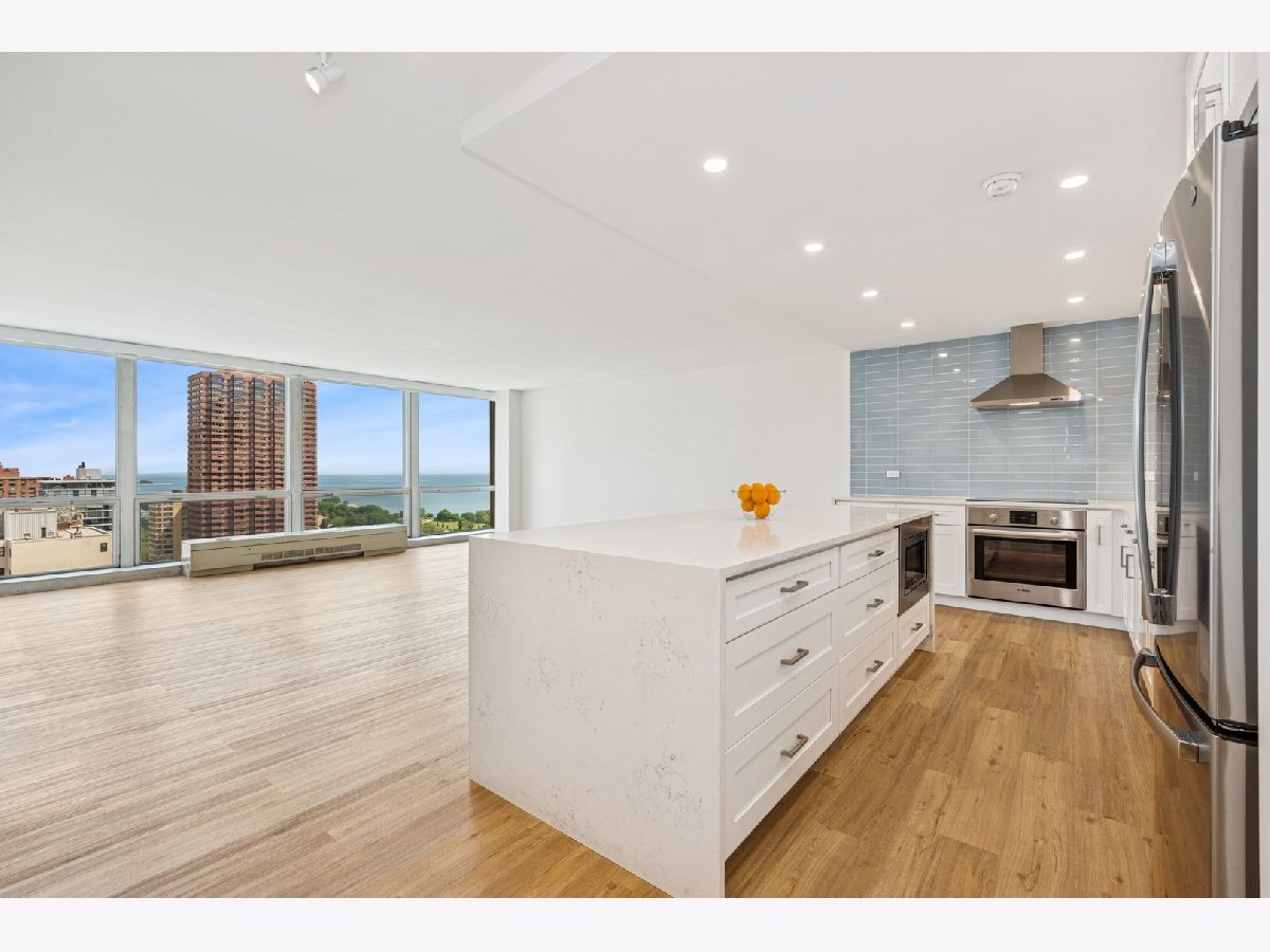 Amazing lake and neighborhood views from every room in this rarely available, high floor rehabbed unit at Commonwealth Plaza! Recent rehab consisted of all new plumbing and electric, new kitchen featuring high end appliances (Miele, Bosch, GE), quartz counters with waterfall edge, TONS of cabinets all with soft close, custom glass backsplash, and pantry. Huge living room with floor to ceiling, wall to wall glass, motorized shades, and gorgeous views of Lake Michigan and Lakeview! Both bathrooms were gutted with high end porcelain tile, electrified Robern medicine cabinets, and custom lighting. Primary bedroom features room for a king bed and full suite of furniture, en suite bath, walk in closet, and motorized blackout shades. 2nd bedroom can accommodate queen sized bed plus desk and dresser. This tier is the only one that features extra walk in closet off the foyer! Assessment includes 1 GIG fiber internet, deluxe cable package including Showtime & HBO, and access to all of the amenities. Building features 24 hour doorperson, outdoor pool, newly renovated fitness rooms, smart laundry center, BBQ/Playground area, herb garden, and commissary. Steps to Diversey Harbor and lakefront, Trader Joe's, Mariano's, CTA and Lincoln Park. Parking available immediately for lease.