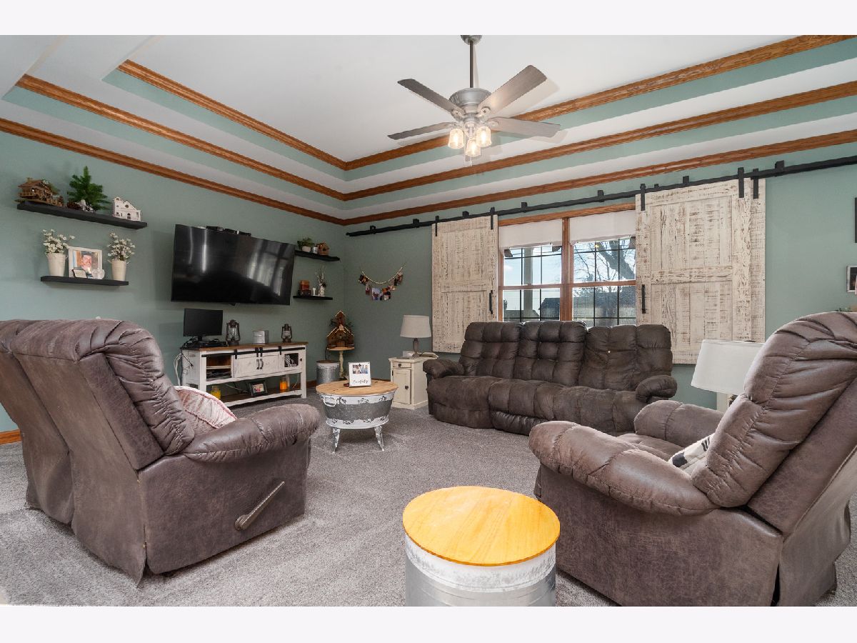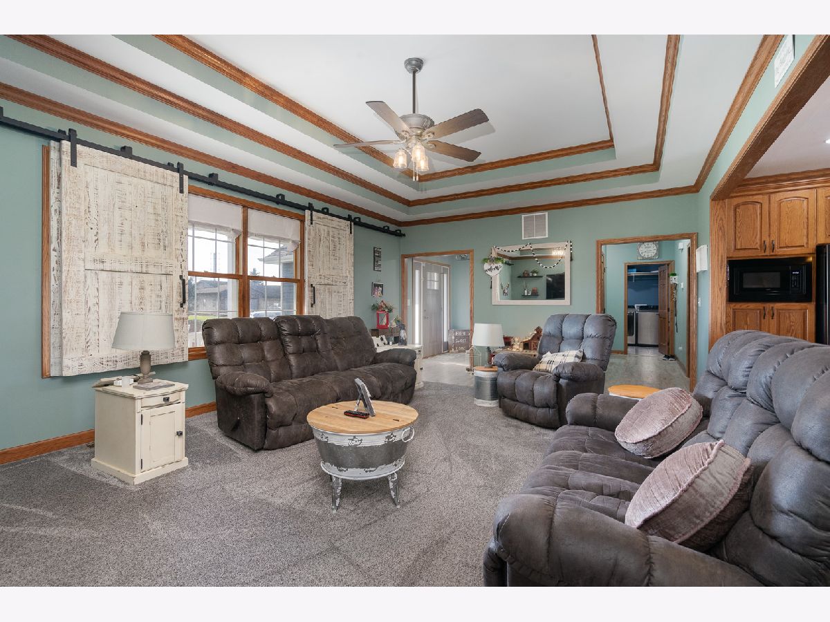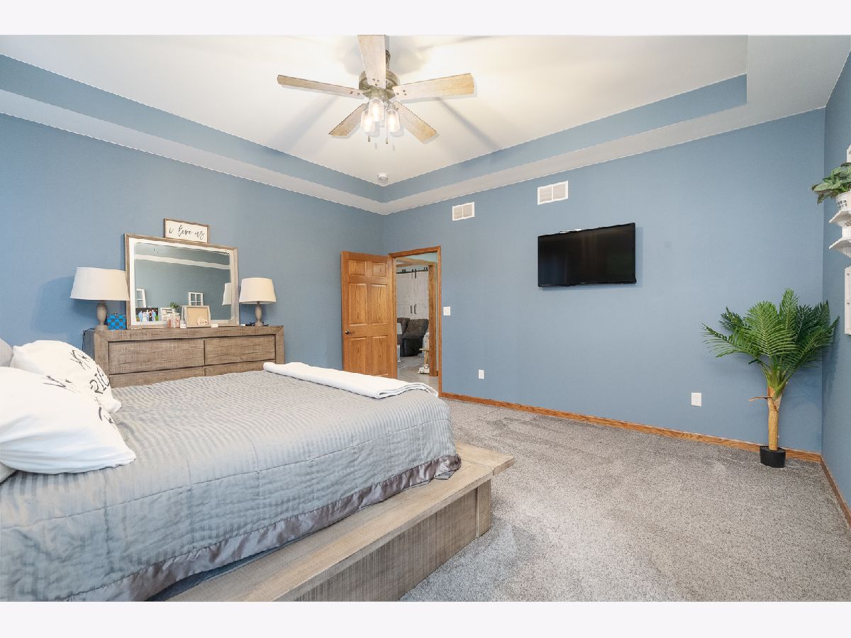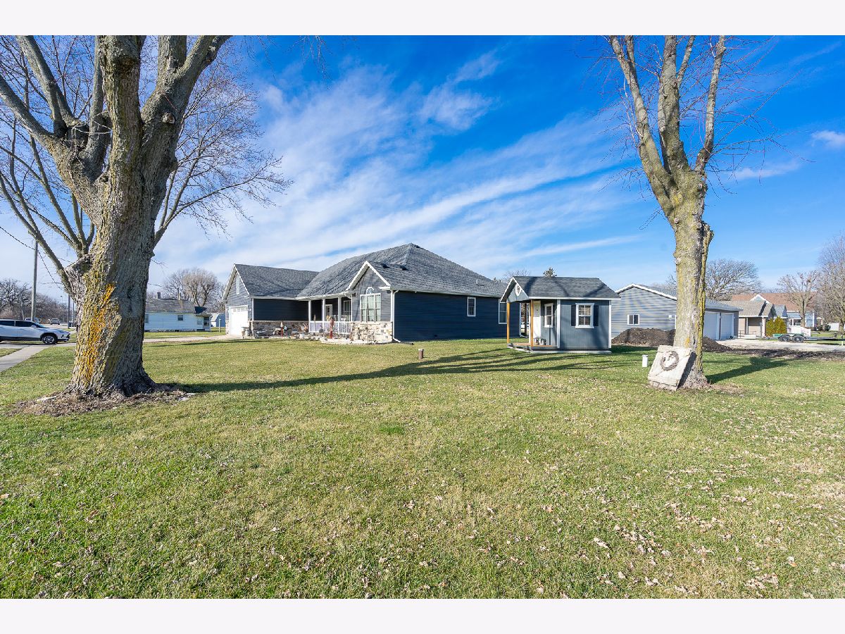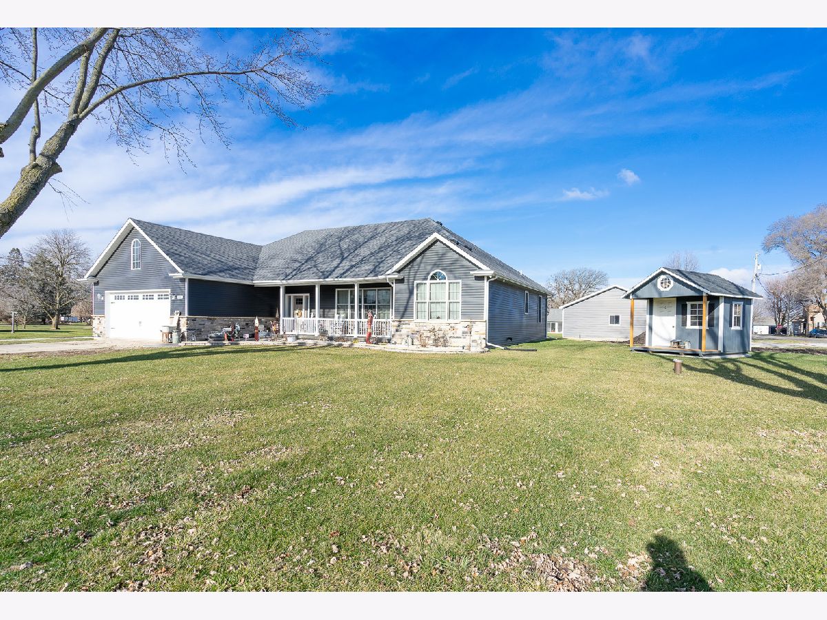 This newly built sprawling ranch that's nestled on a large .65 acre lot exudes excellence and quality throughout with it's attention to detail & upgraded amenities! Features an open floor plan that offers: A cozy covered front porch to greet you; Large, sun-filled living room with dramatic triple tray ceiling & custom barn door style shades; Chef's kitchen with dark stainless steel appliances, farm sink, large quartz island & quartz counters; Dining room with access to the covered, stamped concrete patio overlooking the large yard with fire pit & 30x48, heated outbuilding with (2) 16x8 overhead doors, 9' ceiling, concrete floor & bathroom (perfect for car enthusiast, mechanic or contractor) & shed; Posh master suite with tray ceiling, walk-in closet & private, luxury bath with corian vanity, oversized tiled shower & soaking tub; Spacious laundry room with folding table; Attached extra deep 2.5 car garage; Plenty of storage in the 4' crawl. Nice rural location with easy access to 2 train stations for direct access to Chicago.