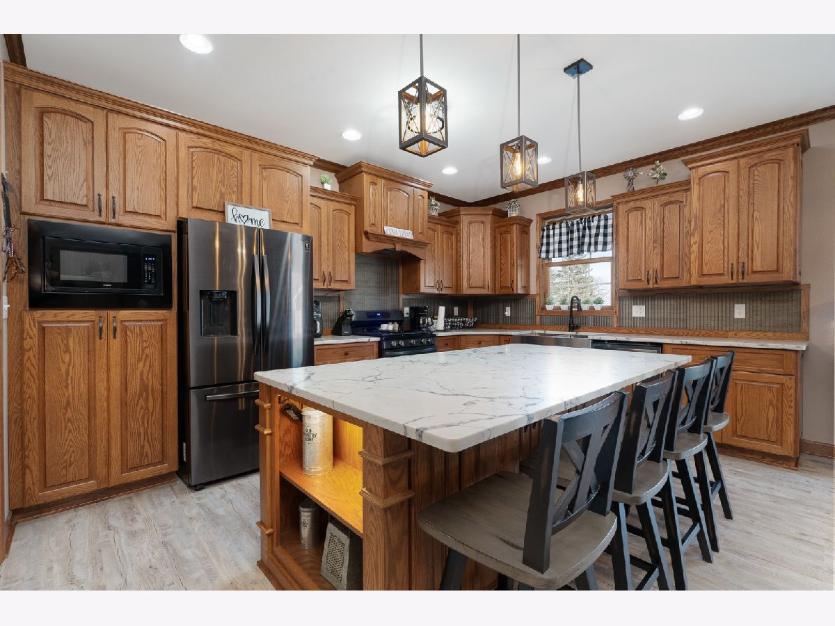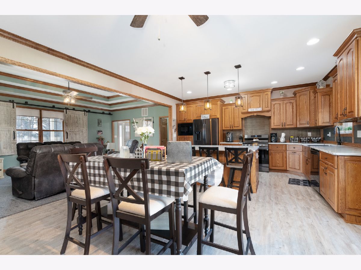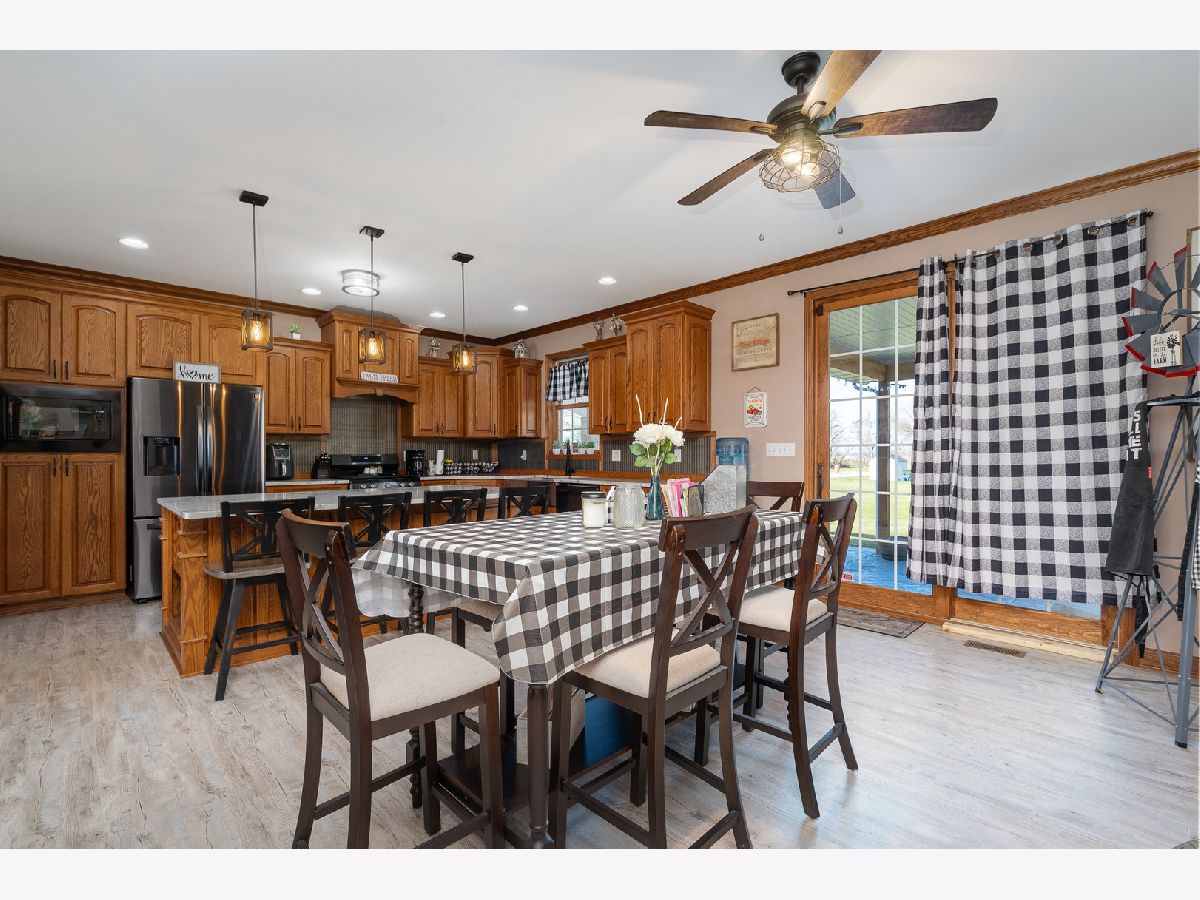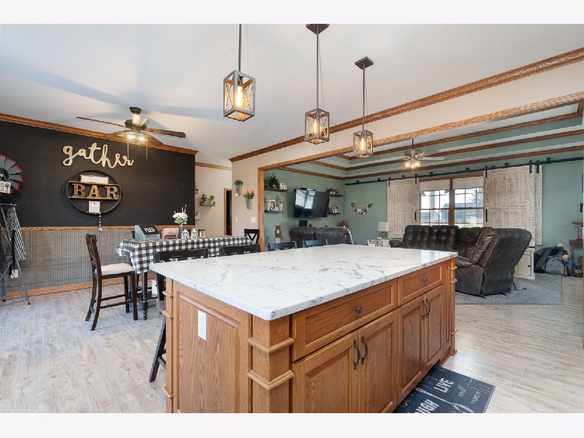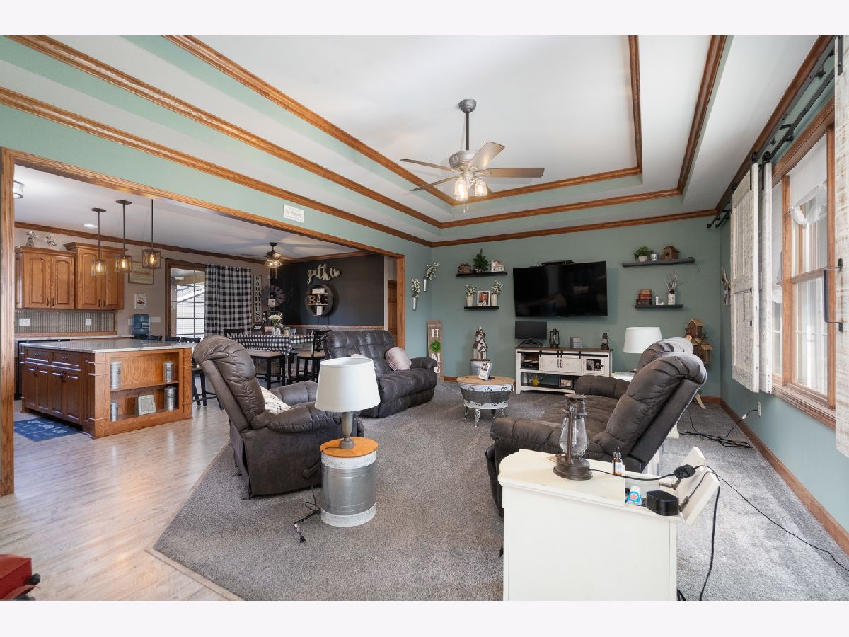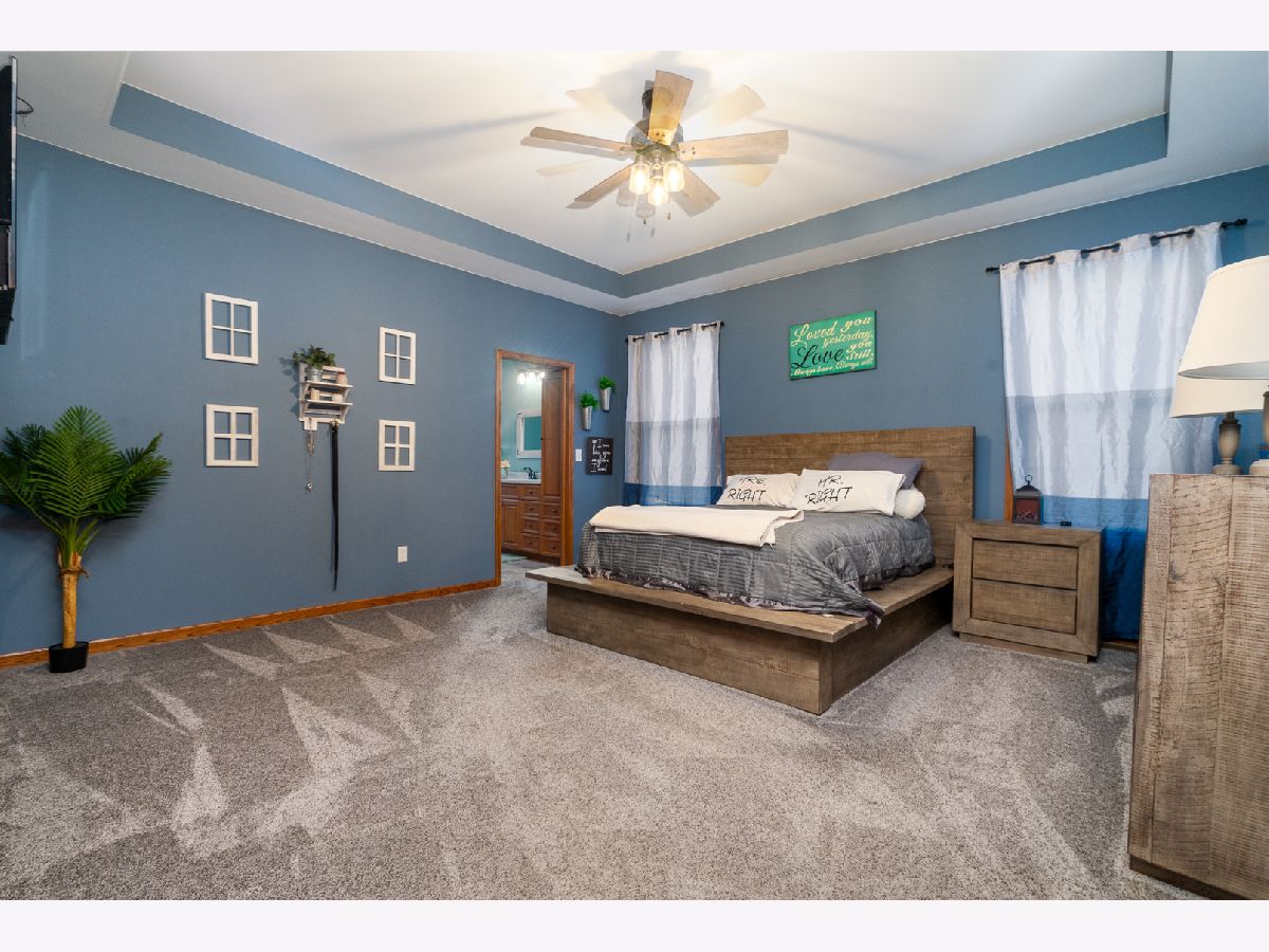 This newly built sprawling ranch that's nestled on a large .65 acre lot exudes excellence and quality throughout with it's attention to detail & upgraded amenities! Features an open floor plan that offers: A cozy covered front porch to greet you; Large, sun-filled living room with dramatic triple tray ceiling & custom barn door style shades; Chef's kitchen with dark stainless steel appliances, farm sink, large quartz island & quartz counters; Dining room with access to the covered, stamped concrete patio overlooking the large yard with fire pit & 30x48, heated outbuilding with (2) 16x8 overhead doors, 9' ceiling, concrete floor & bathroom (perfect for car enthusiast, mechanic or contractor) & shed; Posh master suite with tray ceiling, walk-in closet & private, luxury bath with corian vanity, oversized tiled shower & soaking tub; Spacious laundry room with folding table; Attached extra deep 2.5 car garage; Plenty of storage in the 4' crawl. Nice rural location with easy access to 2 train stations for direct access to Chicago.