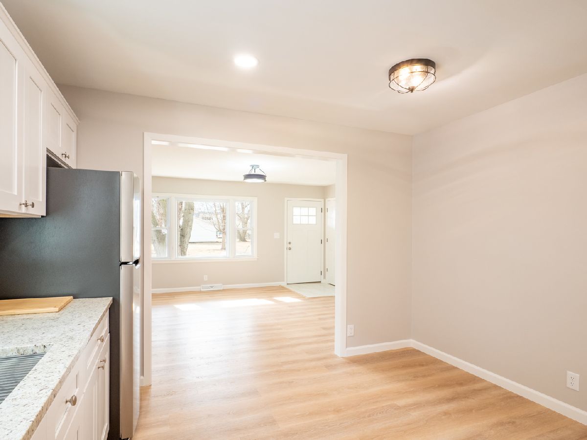 This beautifully updated 2-bedroom, 1-bathroom ranch home offers modern comfort and style. Inside, you'll find freshly painted walls, brand new flooring, a new HVAC system, and a new water heater. The kitchen and bathroom have been completely renovated with granite countertops and new appliances. The spacious backyard features a new deck, perfect for outdoor relaxation, and there's a 2-car detached garage. Conveniently located within walking distance of downtown Elburn. Property is sold "as is."