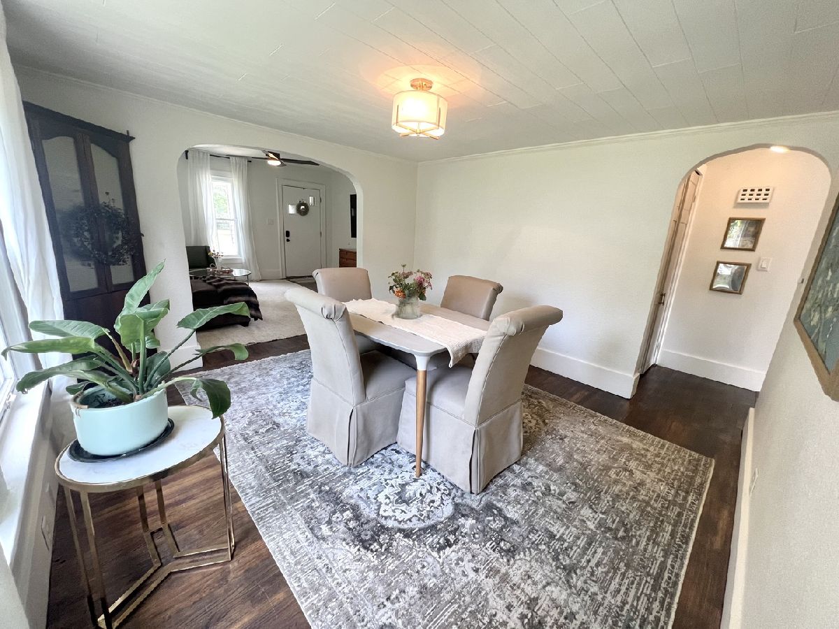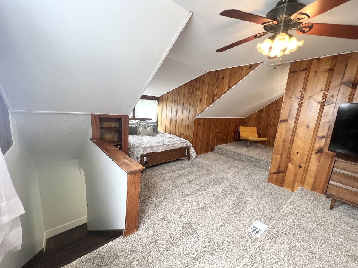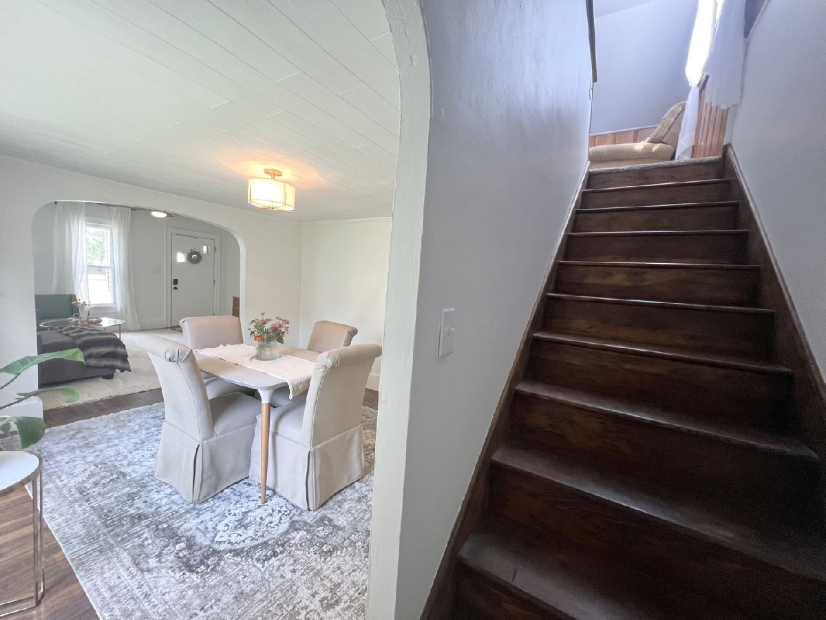 This charming bungalow has been brought back to life within the last three years!! Recently refinished Hardwood floors run through most of the living areas on the main level, which features a cozy front living room and a dining room accessible through a charming arched doorway. The eat-in kitchen offers plenty of workspace along with a center island that includes seating. Additionally, the kitchen has been updated with newly painted cabinets, butcher block countertops, new appliances, updated flooring, and new cabinet knobs and handles. The full bathroom with built-ins and fashionable tile flooring is conveniently located between two main-level bedrooms. The upstairs loft makes an ample-sized bedroom, providing a walk-in closet and plenty of space for a sitting area. Additional storage is available in the unfinished basement, which includes washer and dryer hookups, as well as in the detached two-car garage. The whole house has been freshly painted. New light fixtures, switches, and outlets have been installed throughout the home. This bungalow seamlessly blends classic charm with modern updates. Other updates to mention: Garage roof (2022), some updated plumbing, New deck, new front steps, whole house water filter & Reverse Osmosis (1 yr old), Water softener (1 yr old), Sealed asphalt Drive (2024).