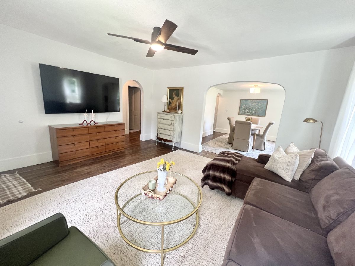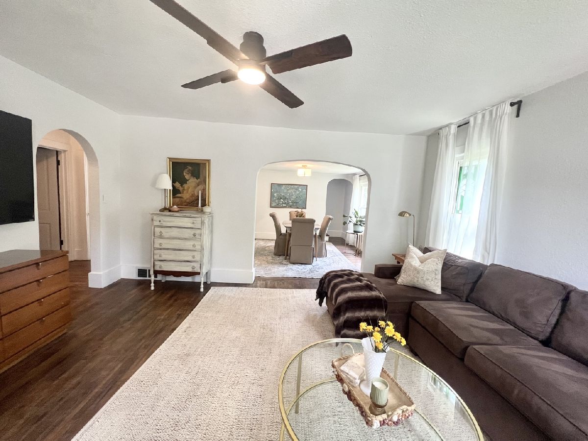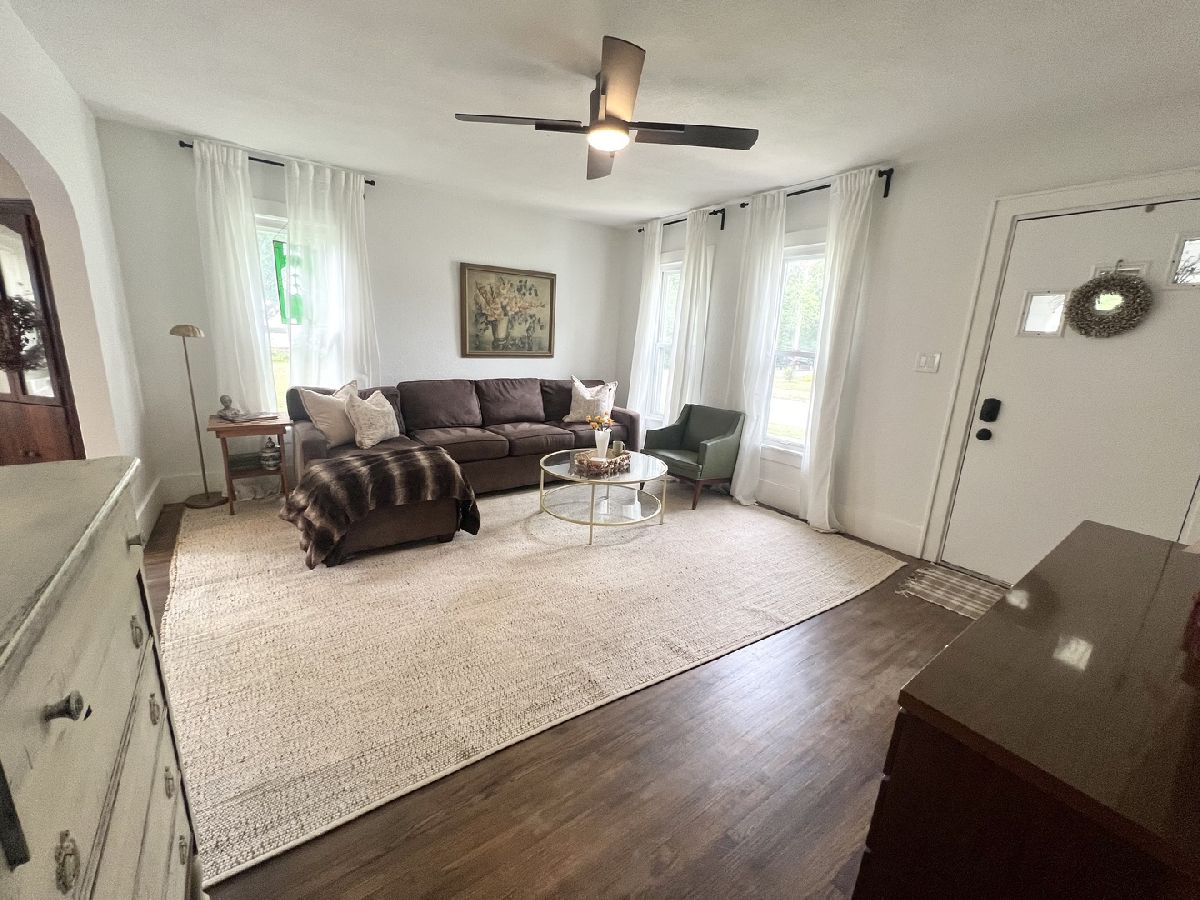This charming bungalow has been brought back to life within the last three years!! Recently refinished Hardwood floors run through most of the living areas on the main level, which features a cozy front living room and a dining room accessible through a charming arched doorway. The eat-in kitchen offers plenty of workspace along with a center island that includes seating. Additionally, the kitchen has been updated with newly painted cabinets, butcher block countertops, new appliances, updated flooring, and new cabinet knobs and handles. The full bathroom with built-ins and fashionable tile flooring is conveniently located between two main-level bedrooms. The upstairs loft makes an ample-sized bedroom, providing a walk-in closet and plenty of space for a sitting area. Additional storage is available in the unfinished basement, which includes washer and dryer hookups, as well as in the detached two-car garage. The whole house has been freshly painted. New light fixtures, switches, and outlets have been installed throughout the home. This bungalow seamlessly blends classic charm with modern updates. Other updates to mention: Garage roof (2022), some updated plumbing, New deck, new front steps, whole house water filter & Reverse Osmosis (1 yr old), Water softener (1 yr old), Sealed asphalt Drive (2024).