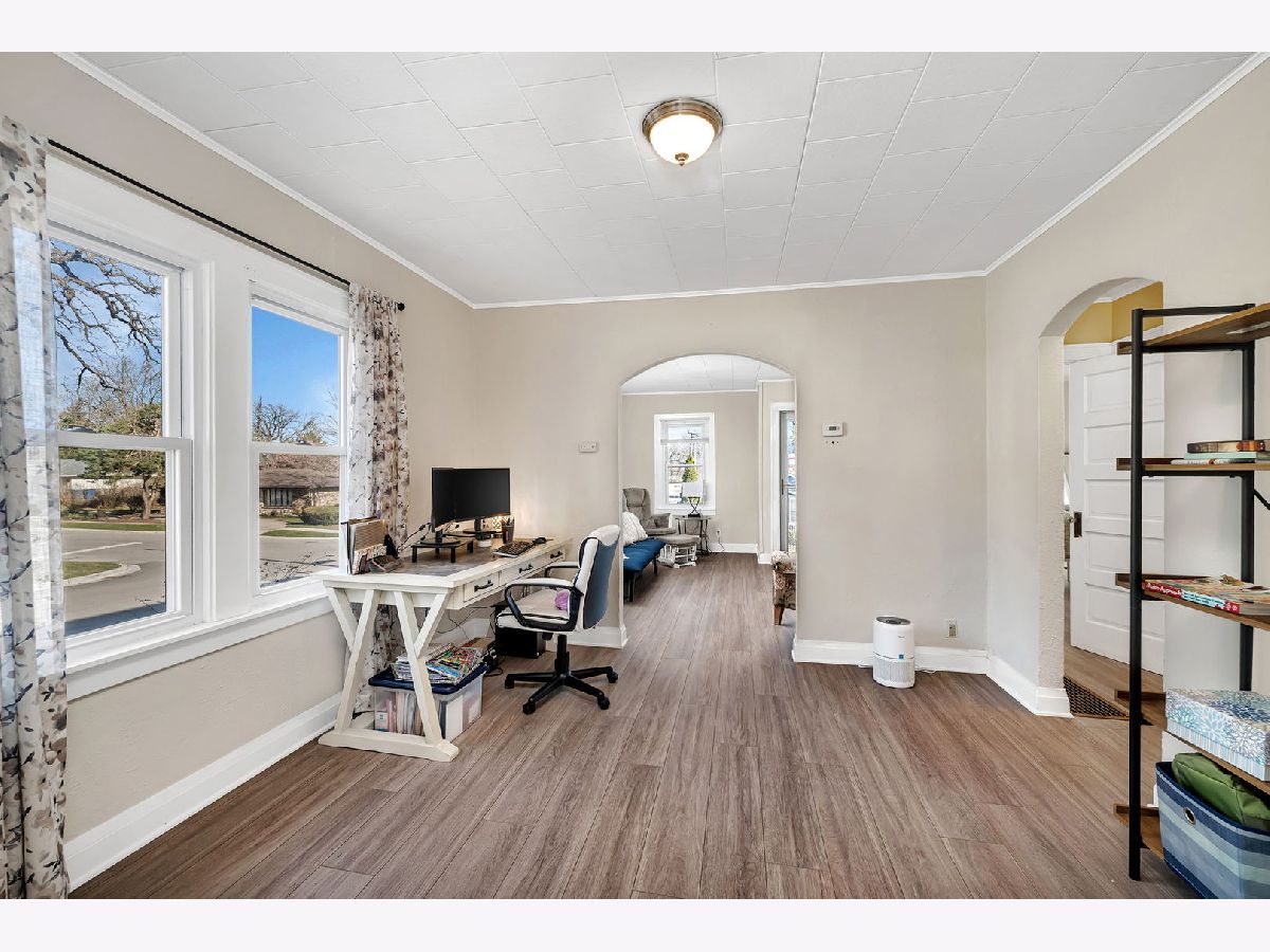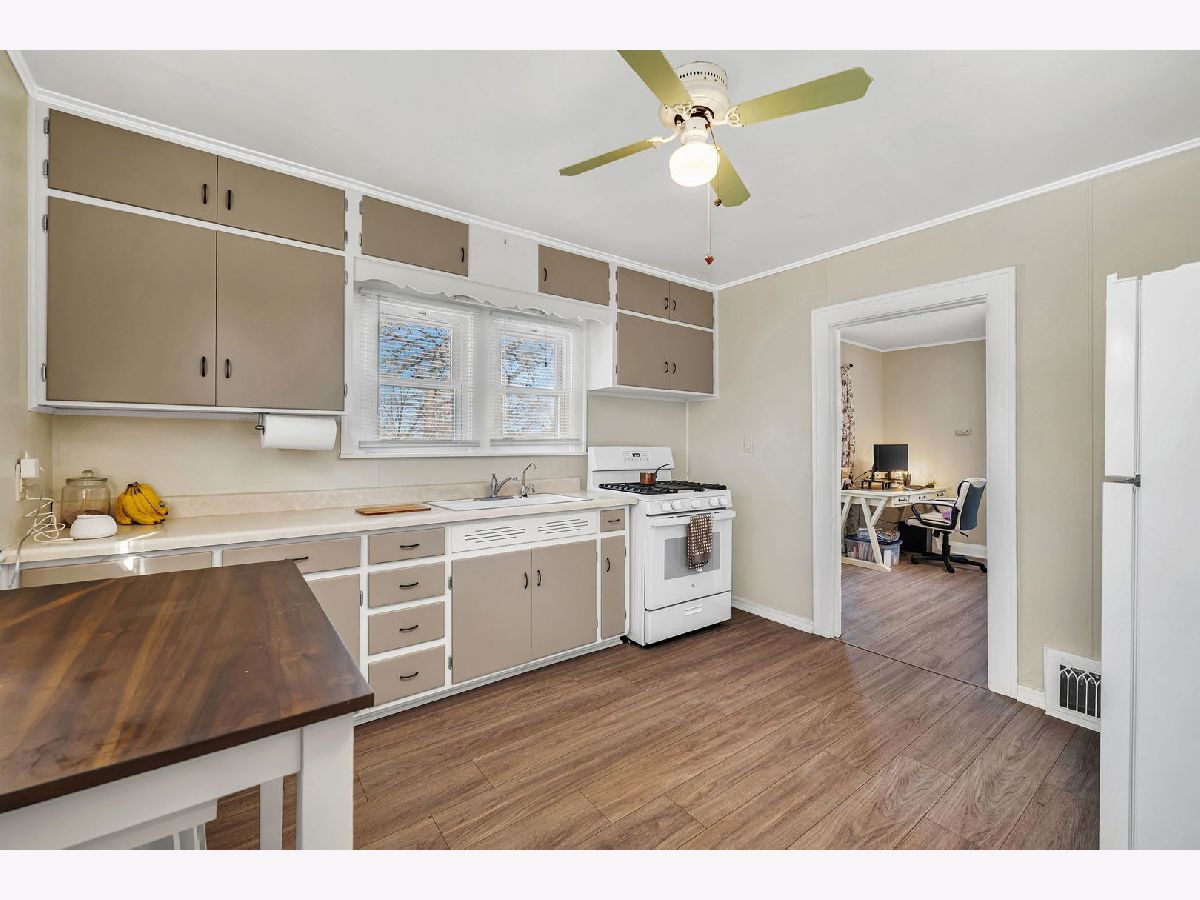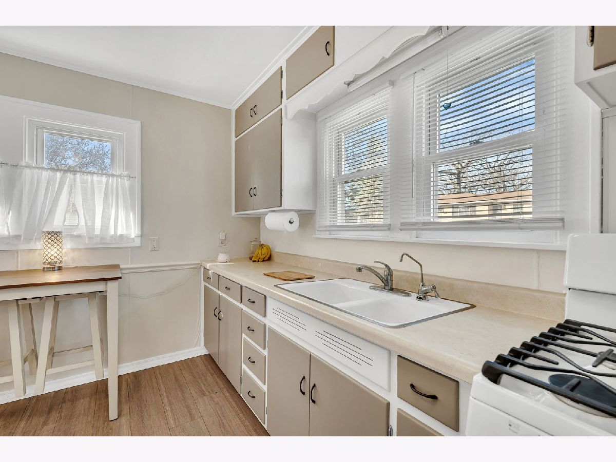 Charming and well-maintained, this one-story home sits on a desirable corner lot in Crest Hill, featuring an oversized two-car garage! Step inside and be greeted by stunning new wood laminate flooring (installed September 2024), flowing seamlessly throughout the entire home. The bright and inviting family room is bathed in natural light and opens into a separate dining area, featuring a unique built-in corner cabinet. The spacious kitchen is as functional as it is welcoming, with freshly painted wood cabinets, a cozy sitting area, and ample room for meal prep. Plus, enjoy brand-new appliances, including a stove (Spring 2024) and refrigerator (January 2025)-all appliances stay! The home boasts a generous primary bedroom and a spacious second bedroom with stairway access to the attic from the second bedroom. A conveniently located hallway bathroom adds to the home's practicality. Downstairs, the full basement offers incredible storage, a dedicated laundry area with a washer, dryer, and utility sink, and plenty of extra space for all your needs. The fabulous oversized two-car garage is perfect for additional vehicles, a workshop, or extra storage-complete with a brand-new entrance side door that's sure to impress! Step outside to enjoy the beautifully landscaped backyard, featuring a concrete patio and stunning Magnolia tree ready to bloom. The walk-up attic provides even more storage or the potential to be converted into additional living space. Freshly painted interior, solid wood panel doors with vintage glass doorknobs, additional recent upgrades include: New front, back, and storm doors (2023/2024) New furnace & electrical panel (November 2024) New water heater (Spring 2022) New chimney liner (2025). Perfectly located just one block from Chaney Monge School and within the Lockport HS District, this home offers easy access to parks, shopping, and dining. Low taxes. Start your memories here...See it. Buy it. Love it!