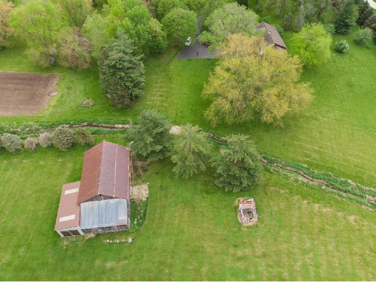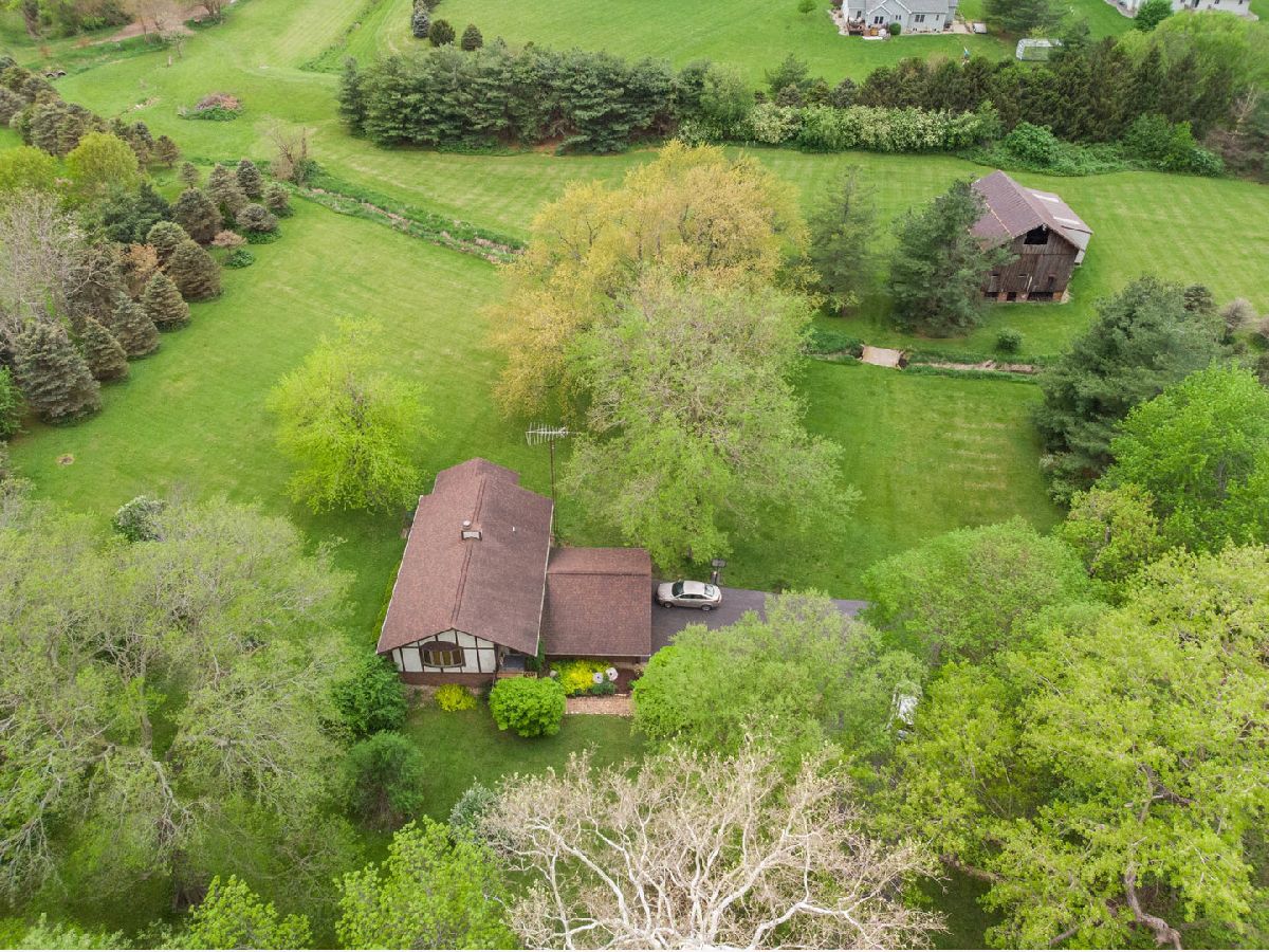 12+ acres just 8 minutes south of Bloomington! Approximately 7 acres are tillable and 5 are beautifully maintained. You'll find apple, pear ,cherry, plum and pine trees on the property. There is a creek that meanders behind the home and a large barn built in 1878 with a 16'X36' lean-to for storing mowers or your RV. The home is an English Tudor style 3 bedroom 2 1/2 bath bi-level with a geothermal system for heating and cooling. The pond in the pictures do not belong to this property. Updates and disclosures are included in the Documents.