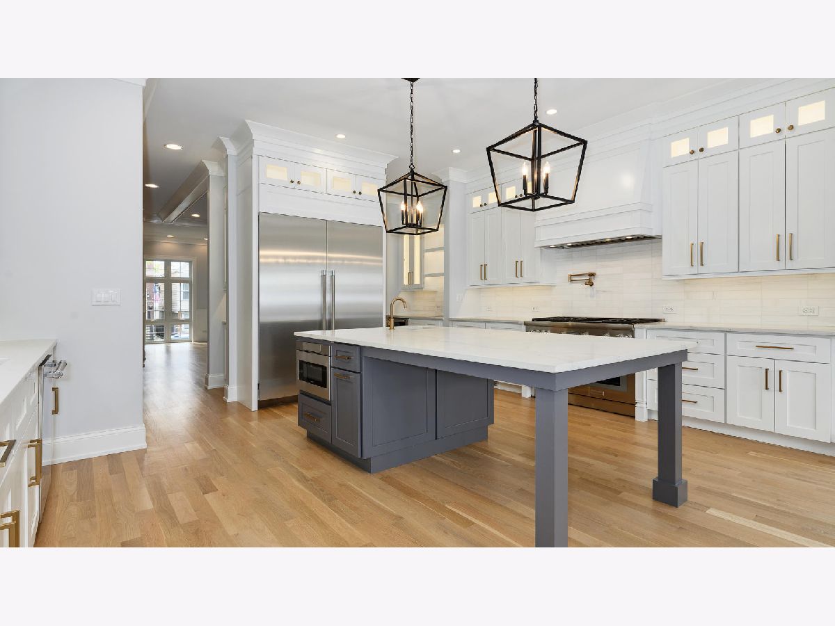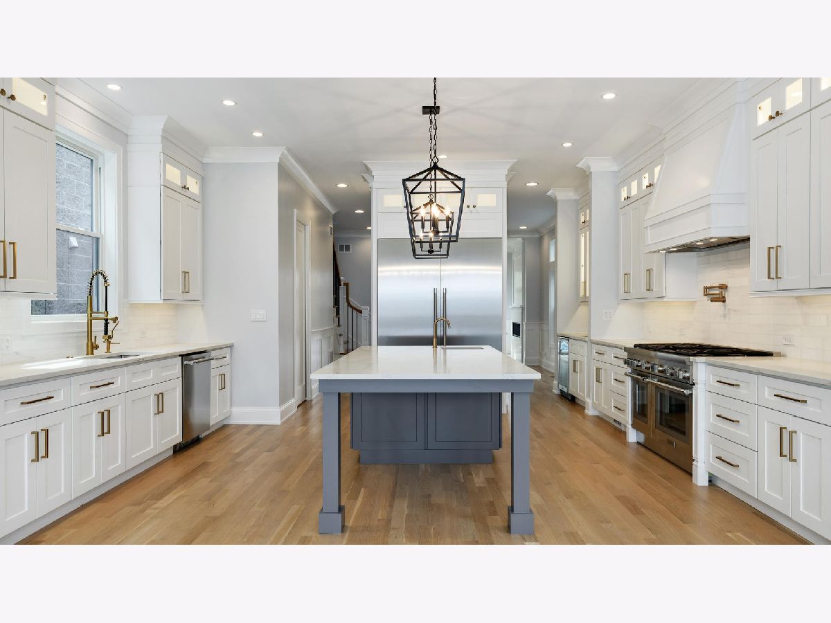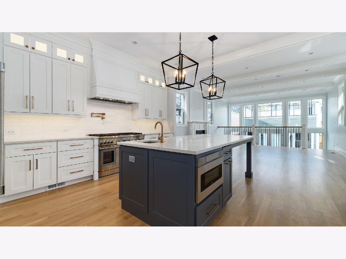 Just completed and ready to amaze. LUXURY home in the heart of Roscoe Village. In the 1+ rated Audubon School District. Incomparable quality. No detail overlooked. Contemporary timeless finishes, thoughtful, functional layout. Traditional but modern open concept floor plan. True chef's kitchen, w/ commercial grade Thermador SS apps, island with prep sink, wet butler & storage pantries. HUGE, sunny great room w/ stunning coffered ceiling, wood burning FP, & dramatic full wall of East facing windows. Desirable, large mud space w/ heated floors and French doors to the back yard. Formal LR/DR w/ wainscot & crown. HUGE master bedroom suite w/ vaulted ceilings, custom WIC. Master spa bathroom w/ soaking tub, rain heads, body sprays, steam, heated floor & water closet. Spacious 2nd & 3rd BRs both w/ vaulted ceilings, large closets, ensuite bathrooms w/ marble & quartz finishes. Heated floors in all bathrooms. 2nd floor washer/dryer and lower level laundry hookups. Bright finished LL w/ radiant heat floors, 10' ceilings, 4th & 5th BRs, wet bar, full bath, storage. White oak floors with natural light finish, master crafted millwork, & crown molding thru out. Custom organized closets. Large, finished 2 car garage w/ roof deck & pergola and gas line. Fenced front & back yards. Only 3/4 of a block to the booming Roscoe St. retail strip and 1 1/4 blocks to the Belmont Ave. retail strip. Too many casual and fine dining restaurants, cafes, bars and shops within walking distance to list.