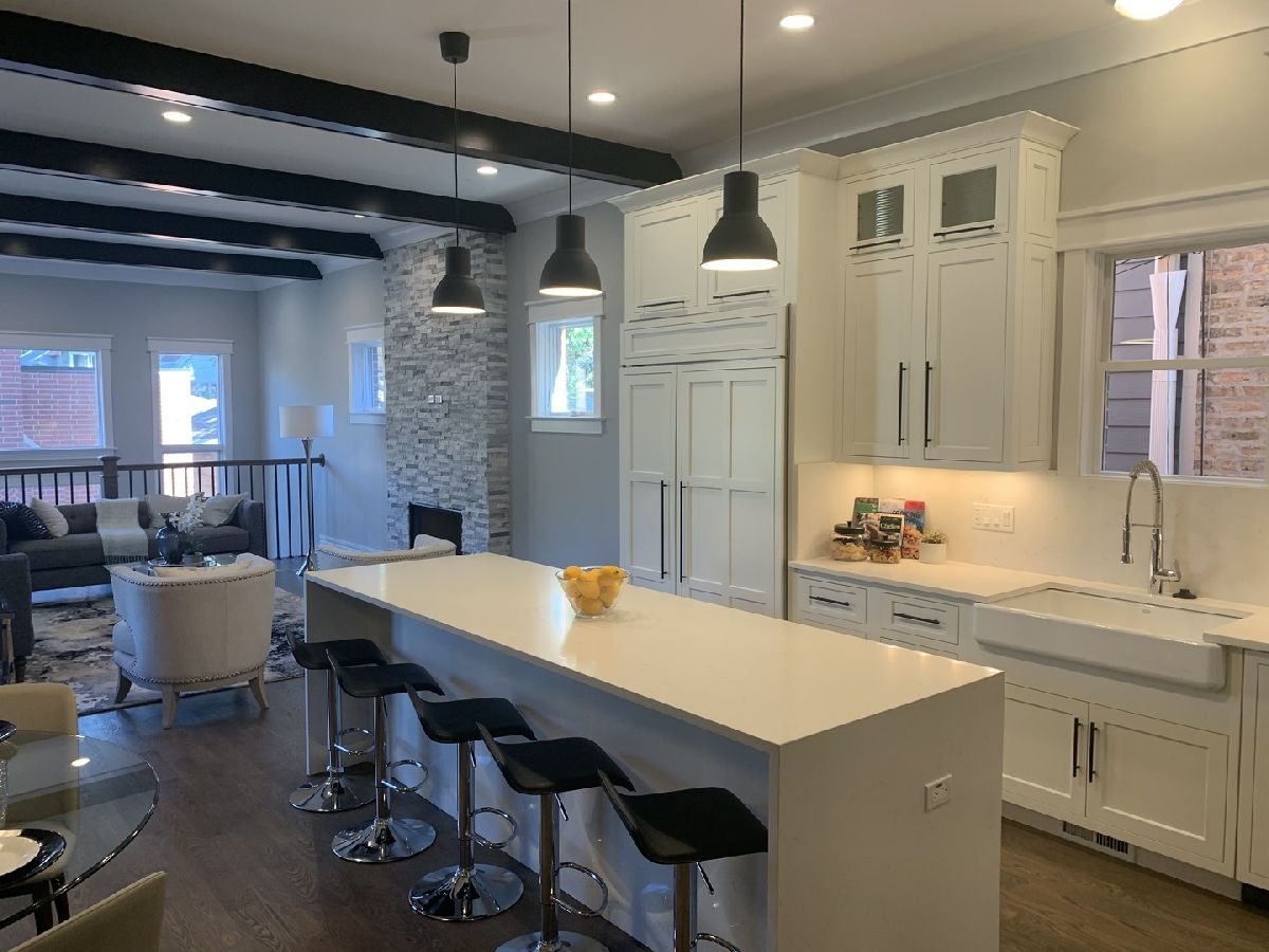 NEW CONSTRUCTION - Roscoe Village - Beautifully appointed home (6 bed/5.1 bath). Show-stopping kitchen with commercial grade appliances (Sub-Zero, Professional BlueStar Oven/Range). Great home for entertaining. Basement equipped with wet bar, wine fridge, dishwasher and radiant heat floors. Unique master bedroom layout with walk-in closet, fireplace, and luxury bath - Bonus make-up station and separate water closet. Laundry on both 2nd floor and basement. Every square foot of this home has been impeccably designed for entertaining and comfort. Roof deck with fabulous views. Also, garage roof top and paved yard with outdoor fireplace. Spacious two-car garage at rear and stately iron fence adorning front entrance welcoming you home! Taxes are currently under appeal.