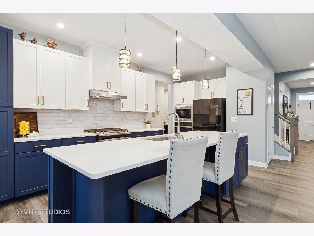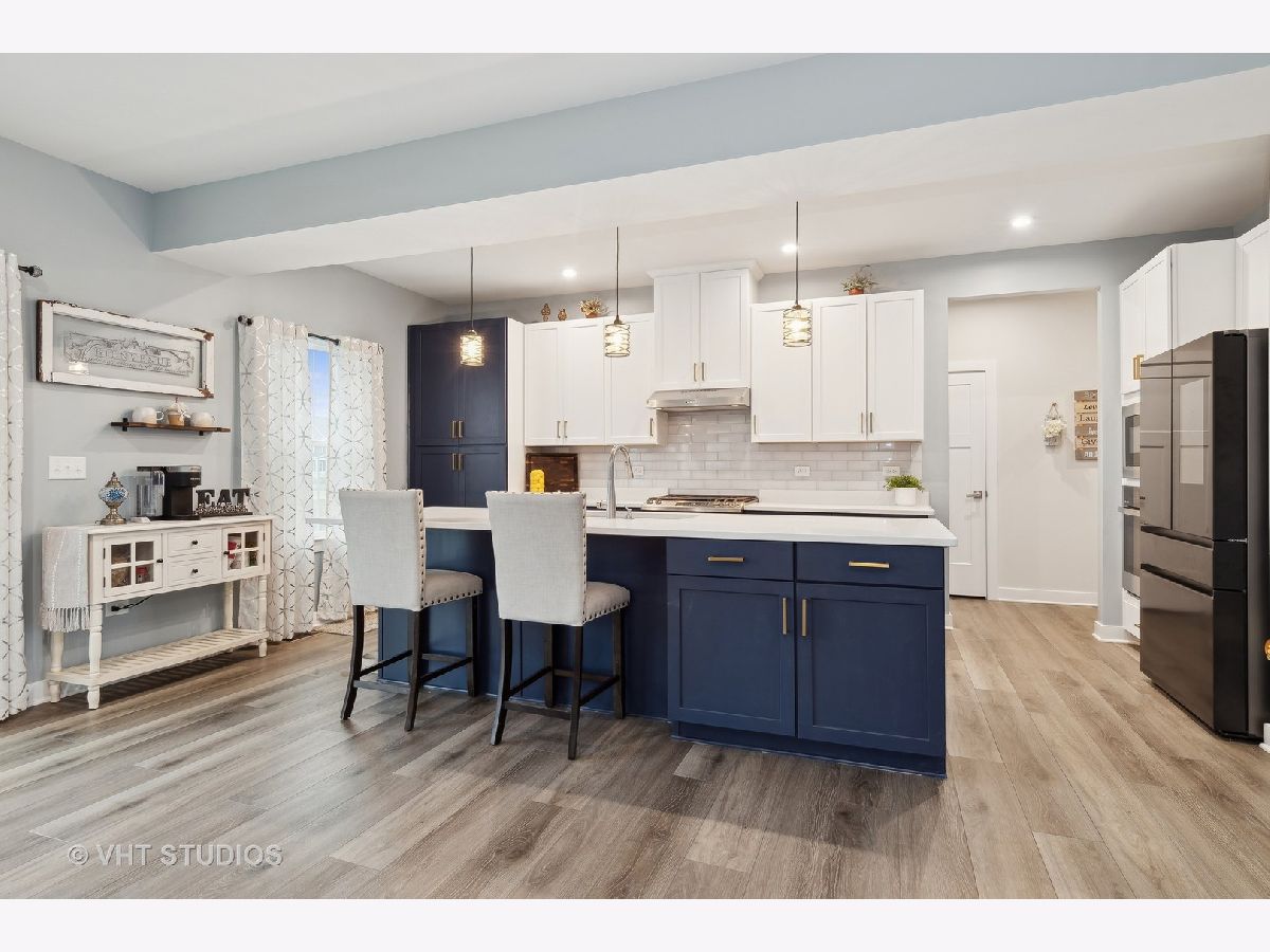 Gorgeous two-story home built 2023 and shows like a model home in desirable Sugar Grove, Settlers Ridge neighborhood. Boasting 3 bedrooms, first floor office plus flex room. Open floor plan, neutral colors with fresh paint on first floor (2024) and spacious rooms. Welcoming foyer leads you to study featuring French doors and allowing for a study, parlor, office or den, you choose! Fantastic entertaining space between kitchen, living room and dining room. Large island with seating for four, tons of prep space and sleek white and navy cabinets. Quartz countertops, 42" upper cabinets, gold accents, pendant lighting, Subway tile backsplash and walk-in pantry. Appliance package includes: stainless steel GE Profile range with hood, 2nd built-in oven, built-in microwave, dishwasher and black matte stainless Samsung Bespoke refrigerator with Family Hub (2024). Office tucked behind the kitchen provides privacy and quiet from the bustle of the main living space. Family room on second floor proposes so many options; family room, play room, game room or close it off for a 4th bedroom upstairs. Luxurious Primary suite highlighting two generously sized walk-in closets and private bath; dual sinks, oversized walk-in shower with seat and water closet. Two other bedrooms sharing full bath with dual sinks and tub/shower combo. Full unfinished basement with roughed-in plumbing for bath and mechanicals positioned appropriately for finishing the space. Backyard offers large stone paver patio for enjoying those summer days and landscaping added along back of lot (2024). Highly desirable three car garage finishes this beautiful home!