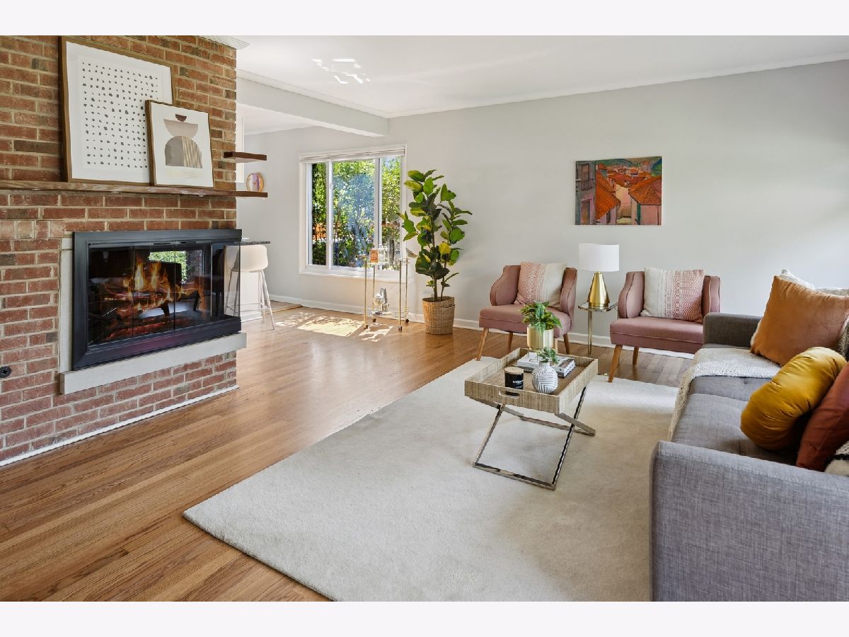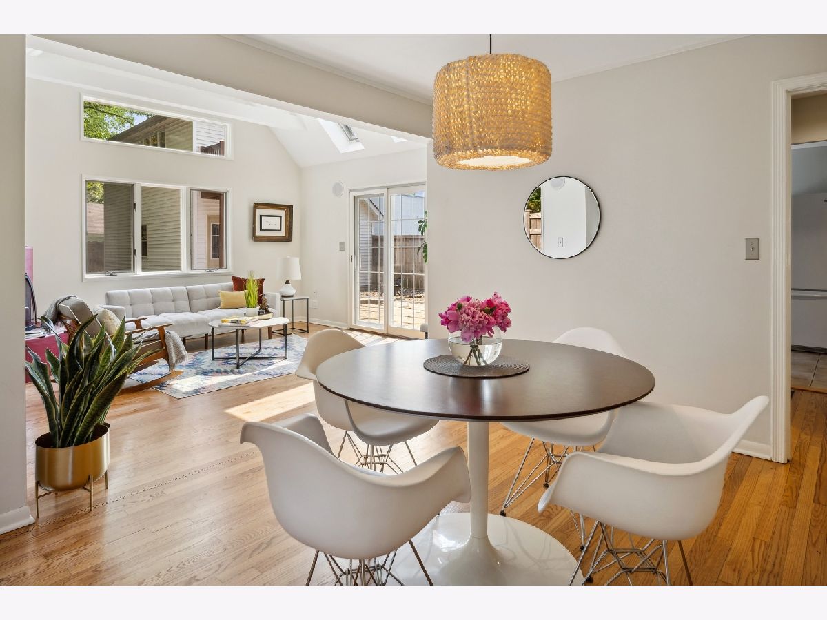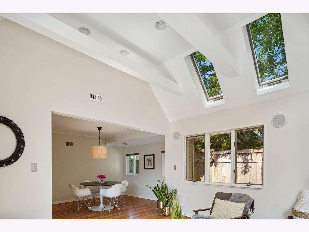 Welcome to this delightful Irwin Blietz mid-century modern gem! Nestled in a tranquil neighborhood on a lot overflowing with a lush perennial garden. This home features abundant natural light, timeless architectural details and is sure to capture your heart. Lovingly maintained, this 3BR | 2bath charmer offers newly refinished hardwood floors on the main level and is freshly painted. The bright sunny Living Room invites you to an open galley Kitchen with counter seating. Here, black granite countertops and streamlined stainless steel appliances complement bright white cabinets. Entertain with ease as the Dining Room flows into the Den with access to a private oasis, where a beautifully landscaped yard and a serene patio await. Perfect for enjoying the natural surroundings and entertaining guests with plenty of room to grill, dine or relax! As well, find more space in the light-filled bonus loft over the 2.5 car Garage; ideal for an additional Family Room, Office, Art Studio or Workout Room situated on a shared private alley! Plus the home features two fireplaces. One, the signature Blietz wood-burning brick fireplace in the living room makes a bold statement while a modern gas fireplace anchors the spacious Den, where natural light beams through the skylights of the impressive vaulted ceiling. The main level also offers a generous BR and a full Bath while the second level provides 2 more BRs and a full Bath. This inviting living space is an absolute treasure! Located down the way from Cartwright Park with playground, tennis & basketball courts. Willard School District. Close to Central Street, Downtown Evanston, Old Orchard Mall and convenient to Edens Expressway.