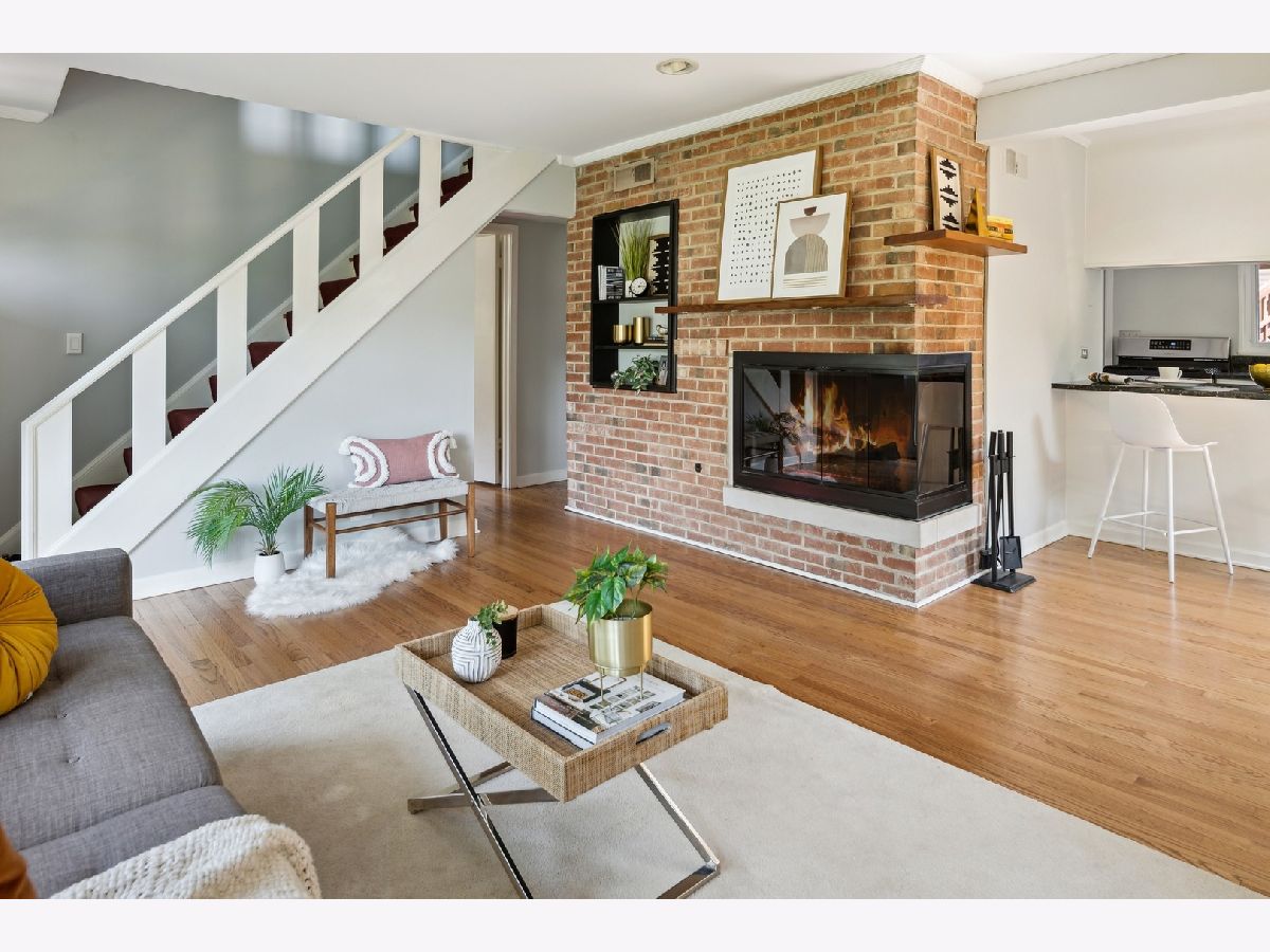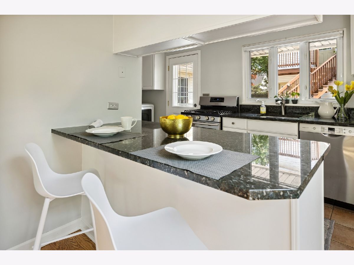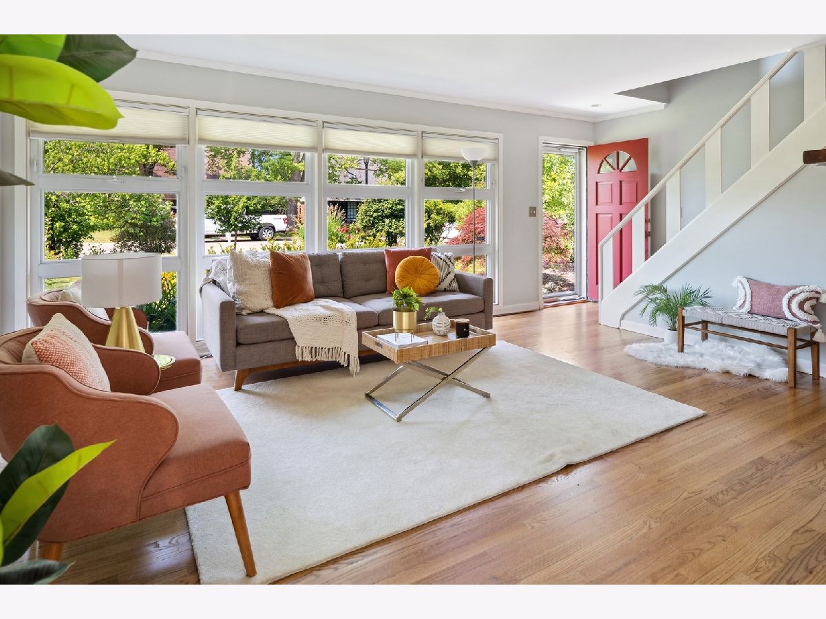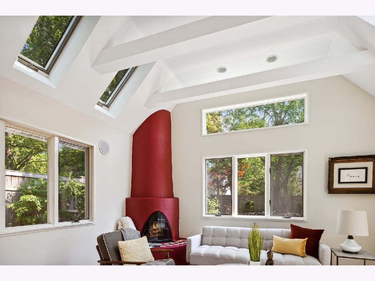 Welcome to this delightful Irwin Blietz mid-century modern gem! Nestled in a tranquil neighborhood on a lot overflowing with a lush perennial garden. This home features abundant natural light, timeless architectural details and is sure to capture your heart. Lovingly maintained, this 3BR | 2bath charmer offers newly refinished hardwood floors on the main level and is freshly painted. The bright sunny Living Room invites you to an open galley Kitchen with counter seating. Here, black granite countertops and streamlined stainless steel appliances complement bright white cabinets. Entertain with ease as the Dining Room flows into the Den with access to a private oasis, where a beautifully landscaped yard and a serene patio await. Perfect for enjoying the natural surroundings and entertaining guests with plenty of room to grill, dine or relax! As well, find more space in the light-filled bonus loft over the 2.5 car Garage; ideal for an additional Family Room, Office, Art Studio or Workout Room situated on a shared private alley! Plus the home features two fireplaces. One, the signature Blietz wood-burning brick fireplace in the living room makes a bold statement while a modern gas fireplace anchors the spacious Den, where natural light beams through the skylights of the impressive vaulted ceiling. The main level also offers a generous BR and a full Bath while the second level provides 2 more BRs and a full Bath. This inviting living space is an absolute treasure! Located down the way from Cartwright Park with playground, tennis & basketball courts. Willard School District. Close to Central Street, Downtown Evanston, Old Orchard Mall and convenient to Edens Expressway.