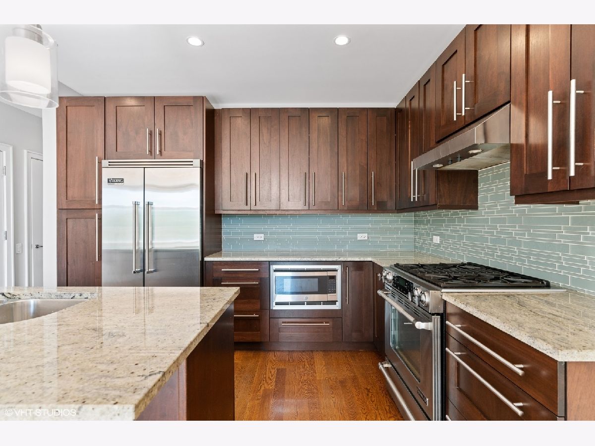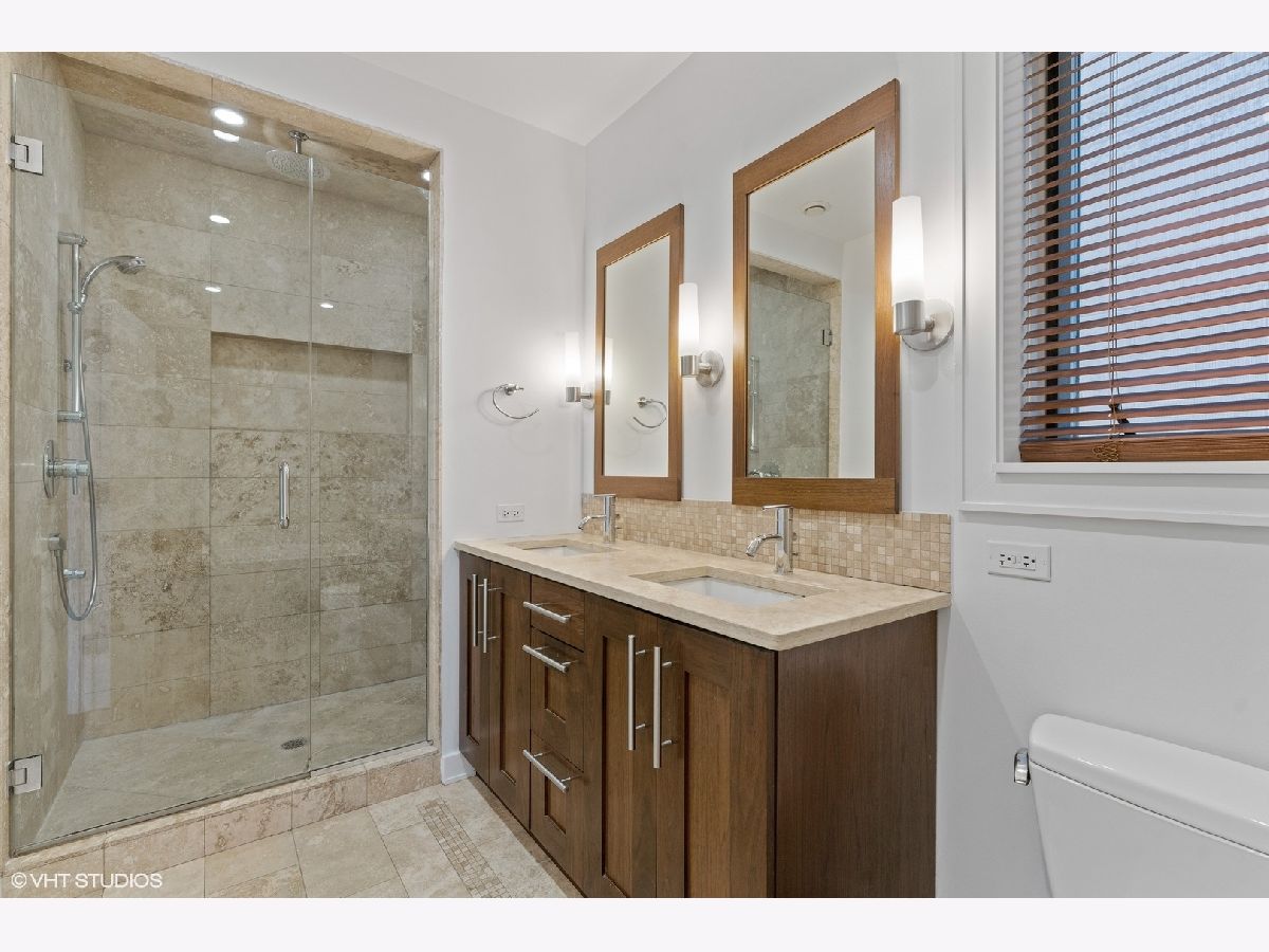 CHIC contemporary 2 bedroom, 2 bathroom condo in heart of Lakeview on a tree lined street steps away from HOT Belmont and Clark street!! This home is in a perfect location and has it all!!! GORGEOUS extra-wide condo features 1350 sqft of living space, high ceilings, espresso hardwood floors throughout, desired open concept kitchen/living/dining and private balcony off the primary suite. Sundrenched living room with floor-to-ceiling windows and a beautiful wood burning fireplace. Impressive extra-wide chef's kitchen offers walnut cabinets, granite countertops, glass tile backsplash, Viking/Bosh high-end SS appliances with an expansive breakfast bar. HUGE Primary AND Secondary bedroom. The primary suite features a large walk-in closet, lots of natural light and a PRIVATE balcony. The spa-inspired primary bathroom features dual vanity, standing shower with body jets, separate jacuzzi bathtub and heated floors. The Large 2nd bedroom comes with generous closet space and it can also be an in-home office for your WFH needs. A beautiful massive shared roof deck perfect for entertainment with CITY SKYLINE views! New W/D in unit. AMAZING location just steps from Wrigley Field, cafes, bars, restaurants, theaters, nightlife, shops and parks! Only a couple blocks to the EL and public transportation. 1 exterior parking spot included in the price!