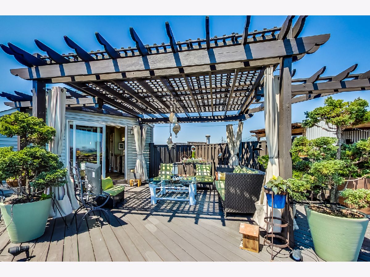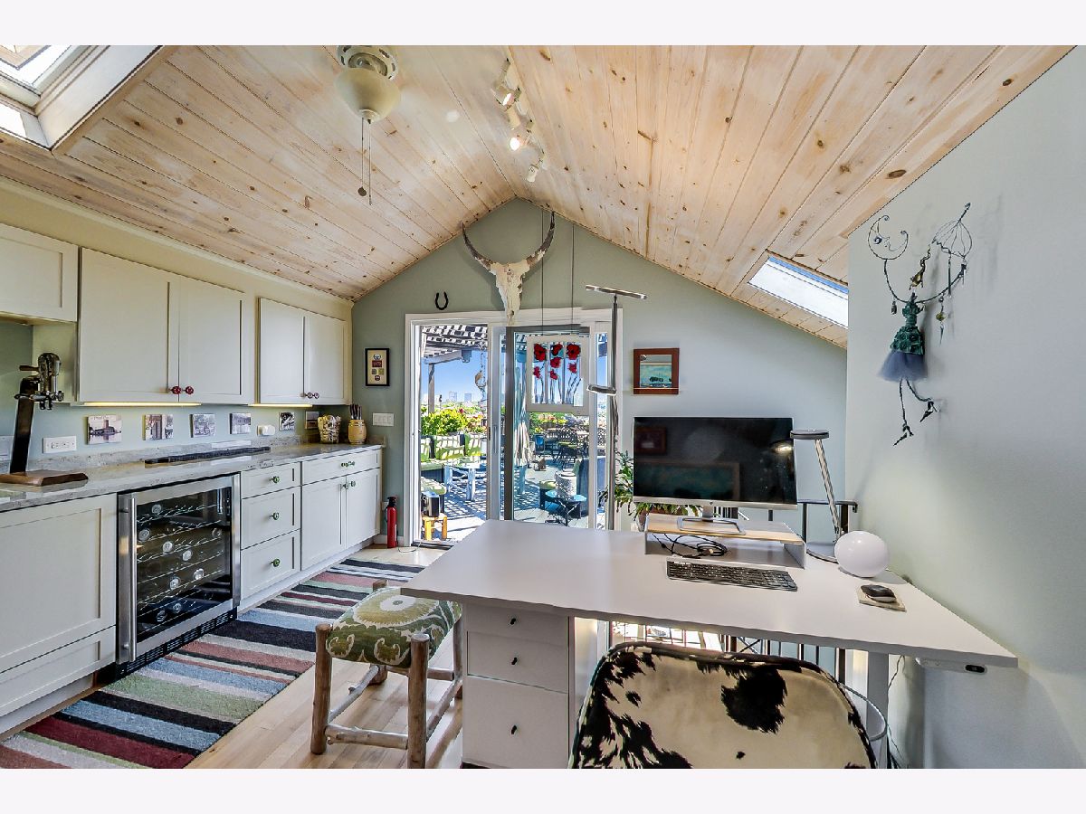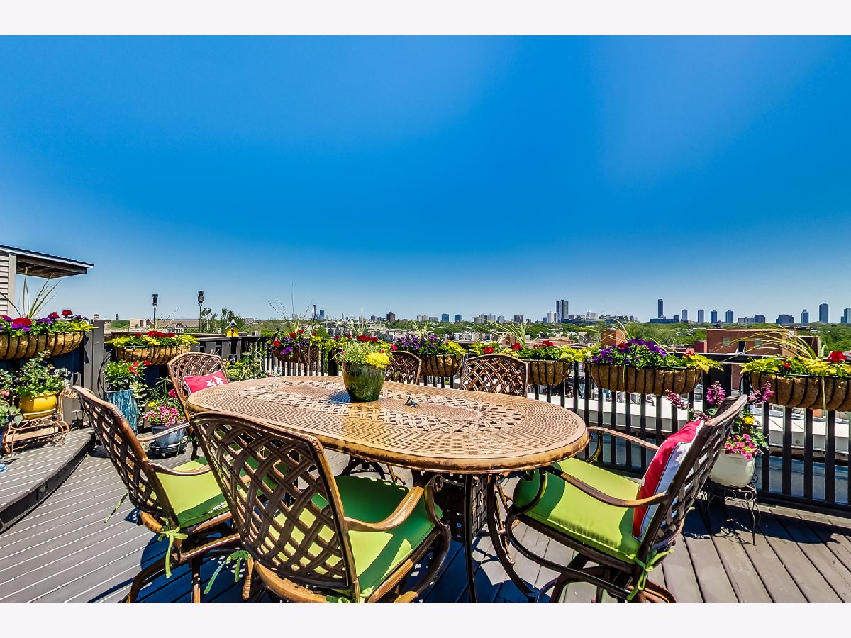 Rarely available, PENTHOUSE, oversized 1 BEDROOM plus OFFICE/BONUS room with with huge DECK, in an intimate, Boutique, elevator building. Generously sized main level has 17'soaring ceilings, an open, wide floor plan, LR having built ins, a FP, Dr space; newer k w/ SS appliances and granite tops. Bedroom suite is lofted and includes a beautiful bathroom w/ frame-less shower, and loads of built ins. The upper floor of the home is the OFFICE/ BONUS room with wet bar, beverage fridge and opens to the amazing 25 x 31 DECK( Over 700 SF) Garage space #103 at 1601 School must be sold with the unit for add'l 15k. You will see nothing like this. It is a MUST see. This Lakeview/ Roscoe Village location is a minutes from Whole Foods, Target, Brown line, Fitness centers, restaurants and shops.