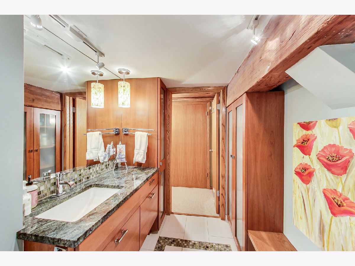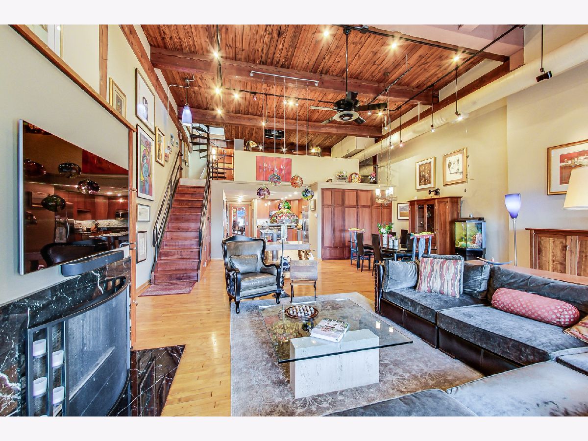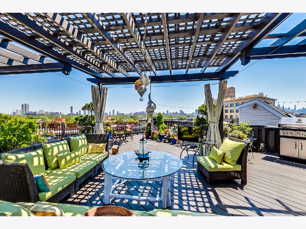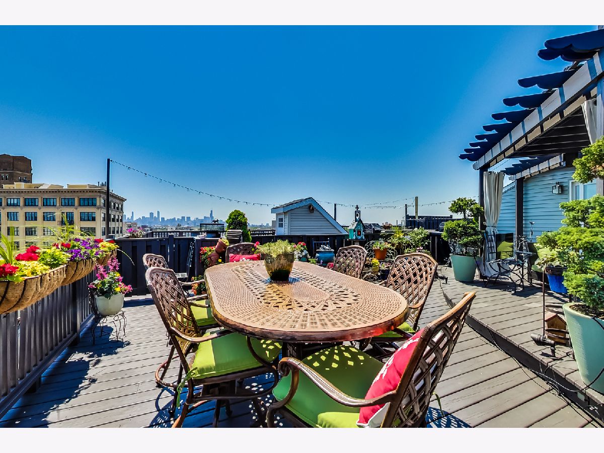Rarely available, PENTHOUSE, oversized 1 BEDROOM plus OFFICE/BONUS room with with huge DECK, in an intimate, Boutique, elevator building. Generously sized main level has 17'soaring ceilings, an open, wide floor plan, LR having built ins, a FP, Dr space; newer k w/ SS appliances and granite tops. Bedroom suite is lofted and includes a beautiful bathroom w/ frame-less shower, and loads of built ins. The upper floor of the home is the OFFICE/ BONUS room with wet bar, beverage fridge and opens to the amazing 25 x 31 DECK( Over 700 SF) Garage space #103 at 1601 School must be sold with the unit for add'l 15k. You will see nothing like this. It is a MUST see. This Lakeview/ Roscoe Village location is a minutes from Whole Foods, Target, Brown line, Fitness centers, restaurants and shops.