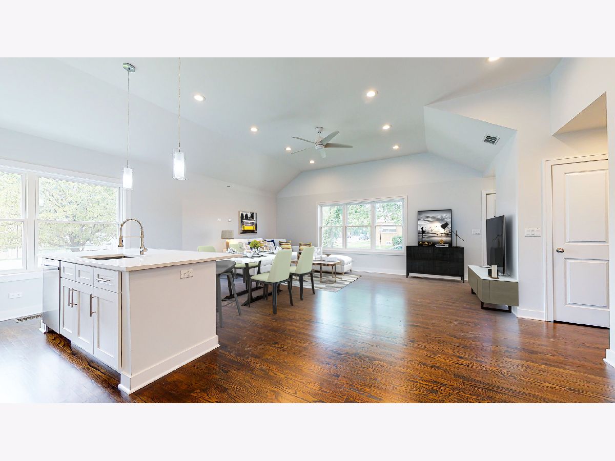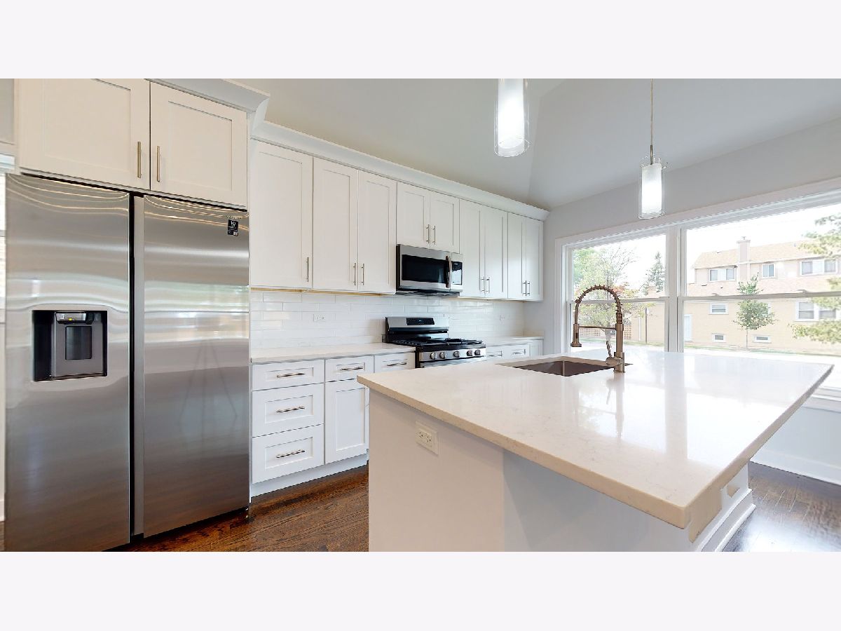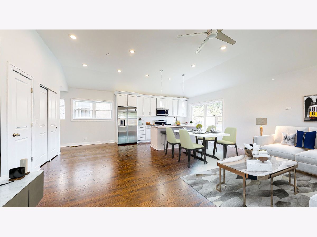 Welcome to this exquisite sunny bright ranch situated in hot Portage Park on oversized lot! Approximately 2000 sq.feet! This spectacular single family has just been remodeled and updated! 4 bedrooms plus sun room! Offers an open concept living/dining room with cathedral celling; Updated kitchen with big centered island with quartz countertop. Stainless steel Samsung refrigerator, conventional stove with air fryer. Hardwood floor throughout main level. LED lighting. Bathroom upstairs has shower and double vanity; downstairs with bathtub; full basement with big family room, two bedrooms and a den, also utility room with washer and a dryer; new heating system and hot water tank,, new windows, roof, tuckpointing; fenced yard,. Nothing else to do or to improved! 2 car garage with side driveway to park extra cars.. Convenient location. Come to see it! Everything is ready for you to move in and enjoy it!