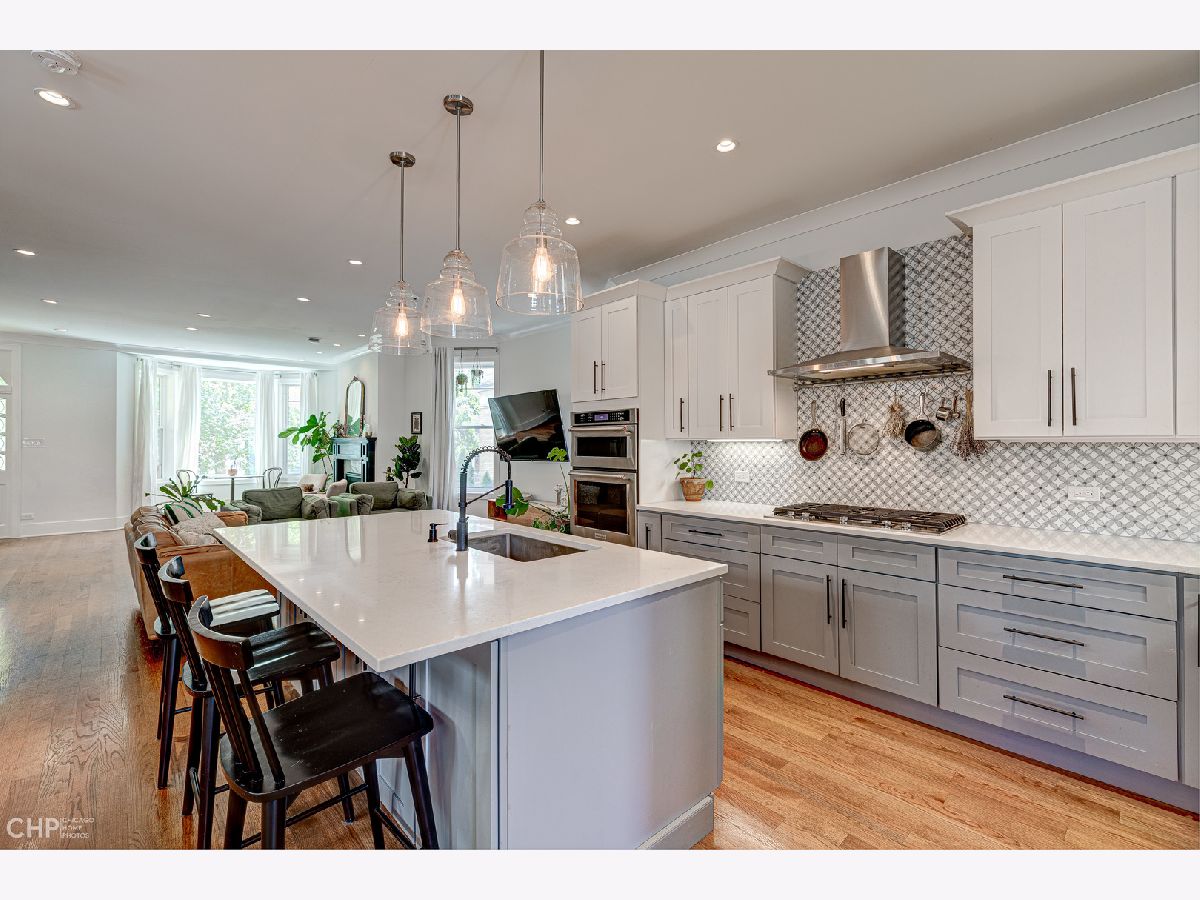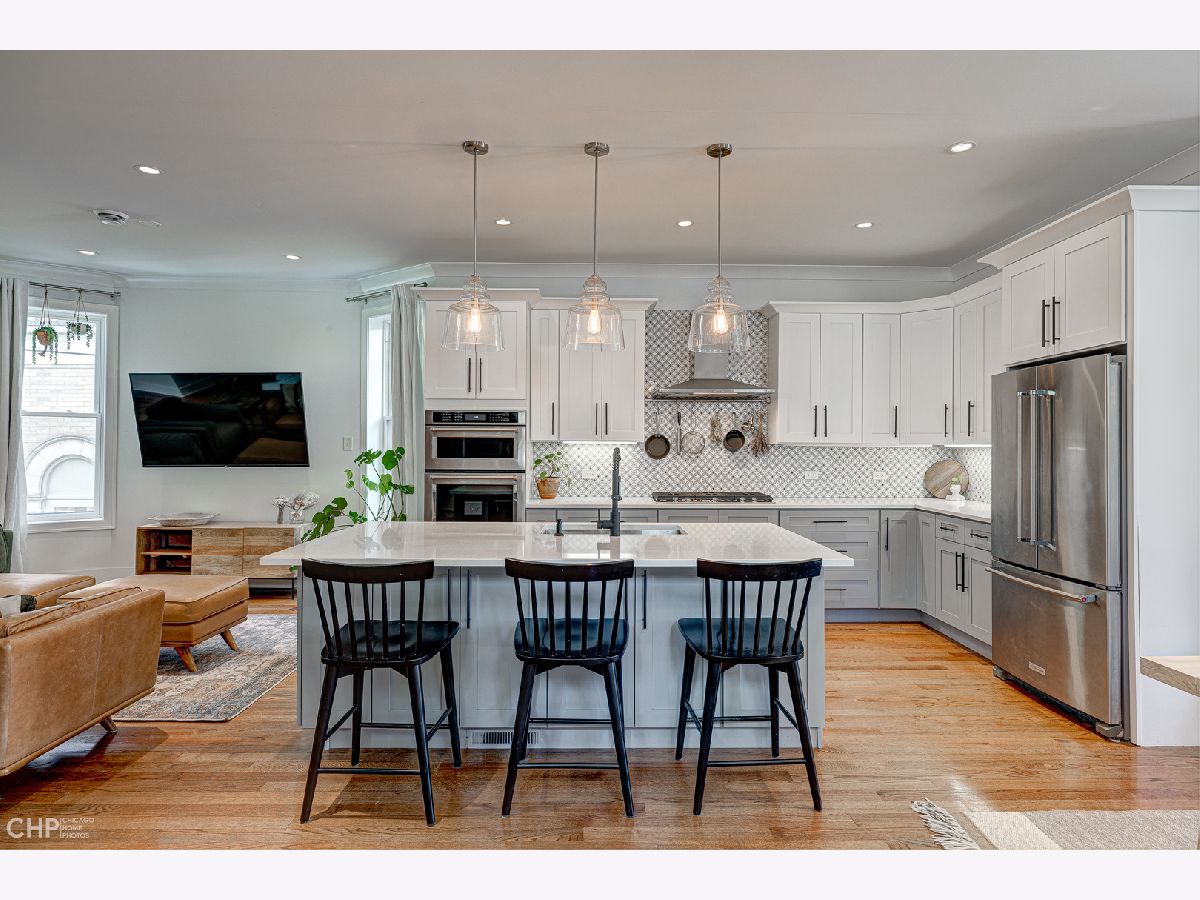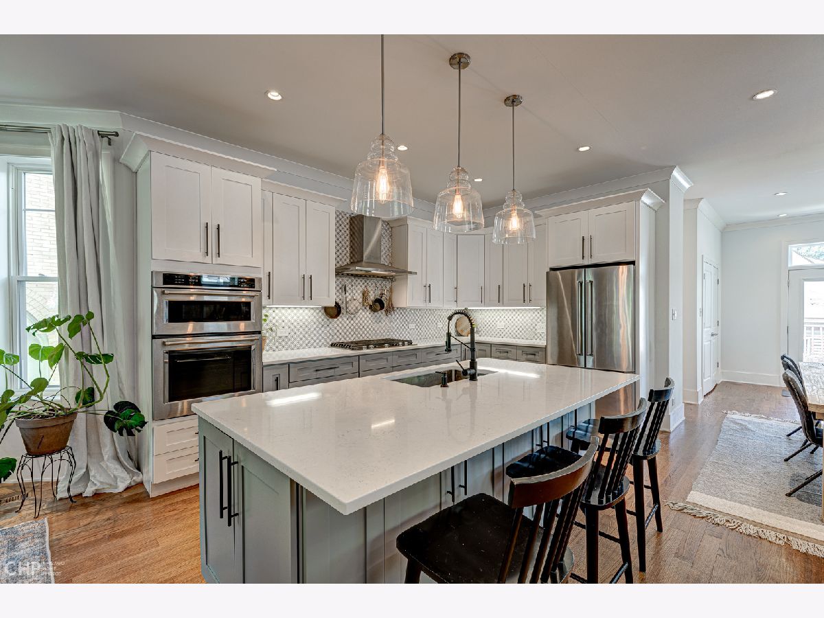 Completely renovated in 2019, this stunning Avondale home has everything you've been looking for! The main level features a flexible open floor plan with tons of natural light, a gas fireplace, 7.5" tall baseboards, crown molding, oak floors, quartz counters, KitchenAid appliances, a Zephyr hood, and multiple storage closets. French doors lead to the large back deck and yard space with turf. The yard is fenced with a 6' cedar fence. There is an insulated 2 car garage as well. The upstairs has 3 good-sized bedrooms, upstairs laundry and lots more storage. The luxurious primary bath features skylights, surround sound, heated floors and a steam-ready shower. The bright basement space has a second kitchen and a full bath, making it great for a nanny, in laws, guests or for an Airbnb or rental. The owners made an average of $105/night when they rented it on Airbnb. The basement is set up to have a private entrance as well. The space also easily works as a 4th bedroom and 2nd family room. The home has easy highway access and is close to the Belmont Blue line. It's also walkable to Brands Park, Honey Butter Fried Chicken, Revolution Brewery, Cafe Tola, Kuma's Corner and more!