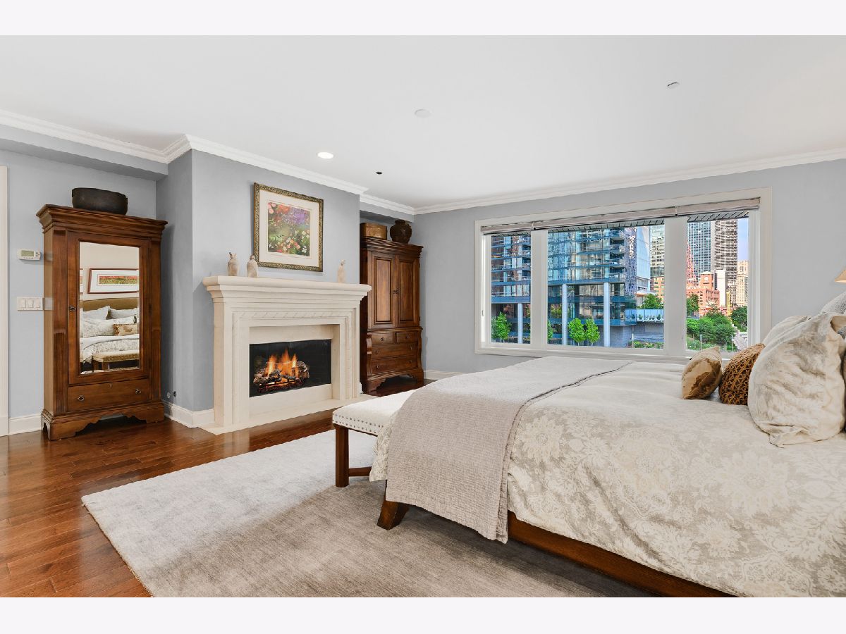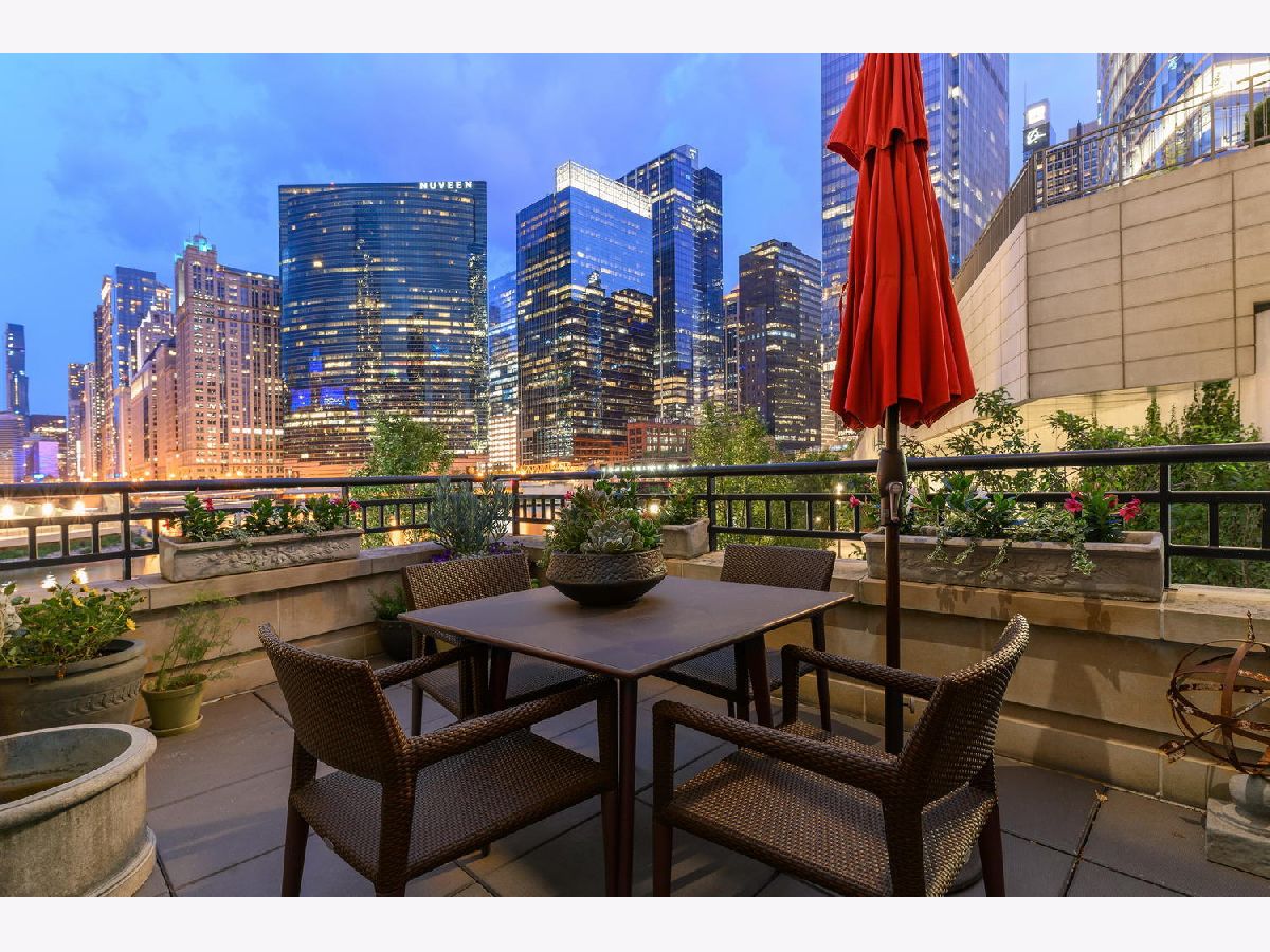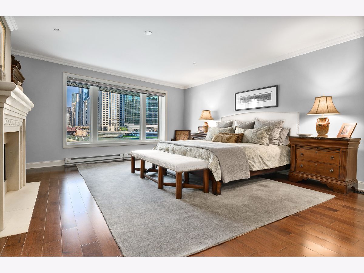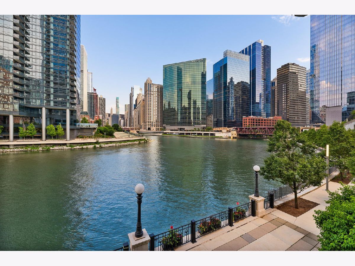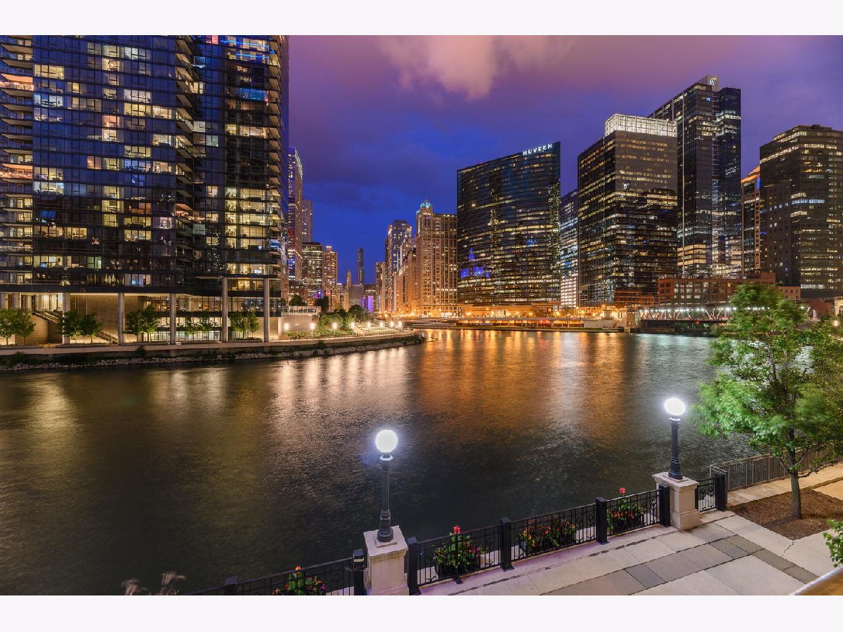 Absolutely spectacular 5400 square foot 3 bedroom (4th bedroom used as office), 4.1 bath plus family room Waterfront property inside the River Bend Condominium Building! This property is an Entire Townhome with 75 feet of waterfront and offers spectacular river and skyline views out every window, in a solid luxury full amenity high-rise. This stunning impeccably and extensively renovated property combines the best lifestyle of a home and Highrise living. It's a condominium with a private interior three stop elevator and has attached 2 car garage parking without the expense of maintaining a roof, yard or other costs of a house! Home features quality workmanship throughout with over-the-top refined finishes including rich flooring, 3 fireplaces, wine bar, wet bars, gorgeous updated kitchen with white cabinetry, stainless appliances, white quartz counters and new pendant lighting. The kitchen opens to a great room with an over-the-top custom wine bar featuring 2 30" Sub Zero wine refrigerators each with 146 bottle capacity, Subzero refrigerator/freezer drawers, stone counter, chic tiled backsplash and walk in pantry plus dramatic double high soaring ceiling with French doors leading to terrace on the river front! Incredibly Lavish massive primary bedroom suite offers sitting area, fireplace and the most phenomenal spa bath featuring custom tile, heated floors, double vanity, freestanding Bain Ultra air jet soaking tub and 2 large tricked out walk in showers one with steam shower plus has 2 Huge professionally outfitted walk- in closets! Gracious living room has Paris Ceramics fireplace, huge formal dining area, separate office area and fantastic large private stone terrace with breathtaking views of the river, bridges and buildings serves as an urban garden and large enough for 6 top table for entertaining. First floor family room features stacked stone wall with integrated gas fireplace, custom wet-bar with Subzero refrigerator/freezer drawers, separate wine refrigerator giving the home a total capacity to store 380 bottles of wine! Full guest suite and smaller 4th bedroom used as home office. Tricked out upgrades include Motorized window treatment and very large private laundry room with storage systems. There are also 2 large additional deeded storage closets outside of the unit and 2 deeded parking spaces $50,000 each. This is a once-in-a-lifetime opportunity to live in such a fantastic property in perfect turnkey condition offering the optimal lifestyle in the city! The high-rise amenities include 24 hour door person, enormous state of the art fitness room with spa room, party room with catering kitchen, Receiving room for packages, Business center room, Drycleaner and Outdoor party space! This neighborhood is very convenient as it is across the street from East Bank Club, Merchandise Mart, centrally located to River North, West Loop and Fulton Market Dining plus Gibson's Italia next door and the Chicago Riverfront walking path right out the door! Amazing price for space, amenities and gorgeous views!