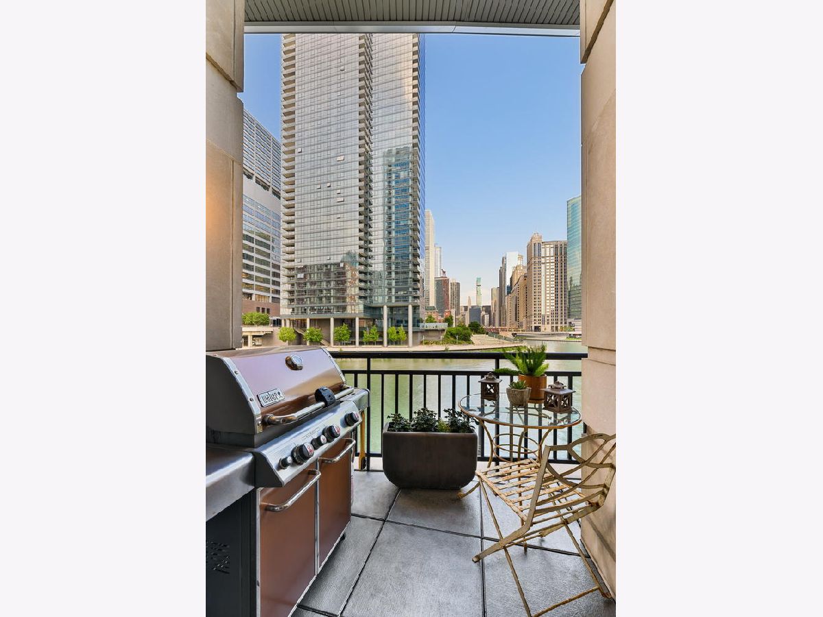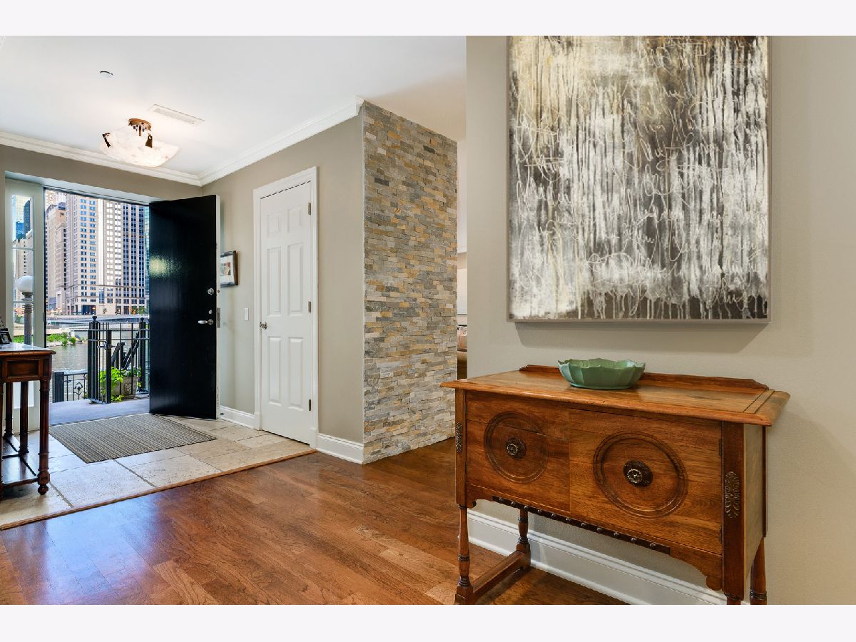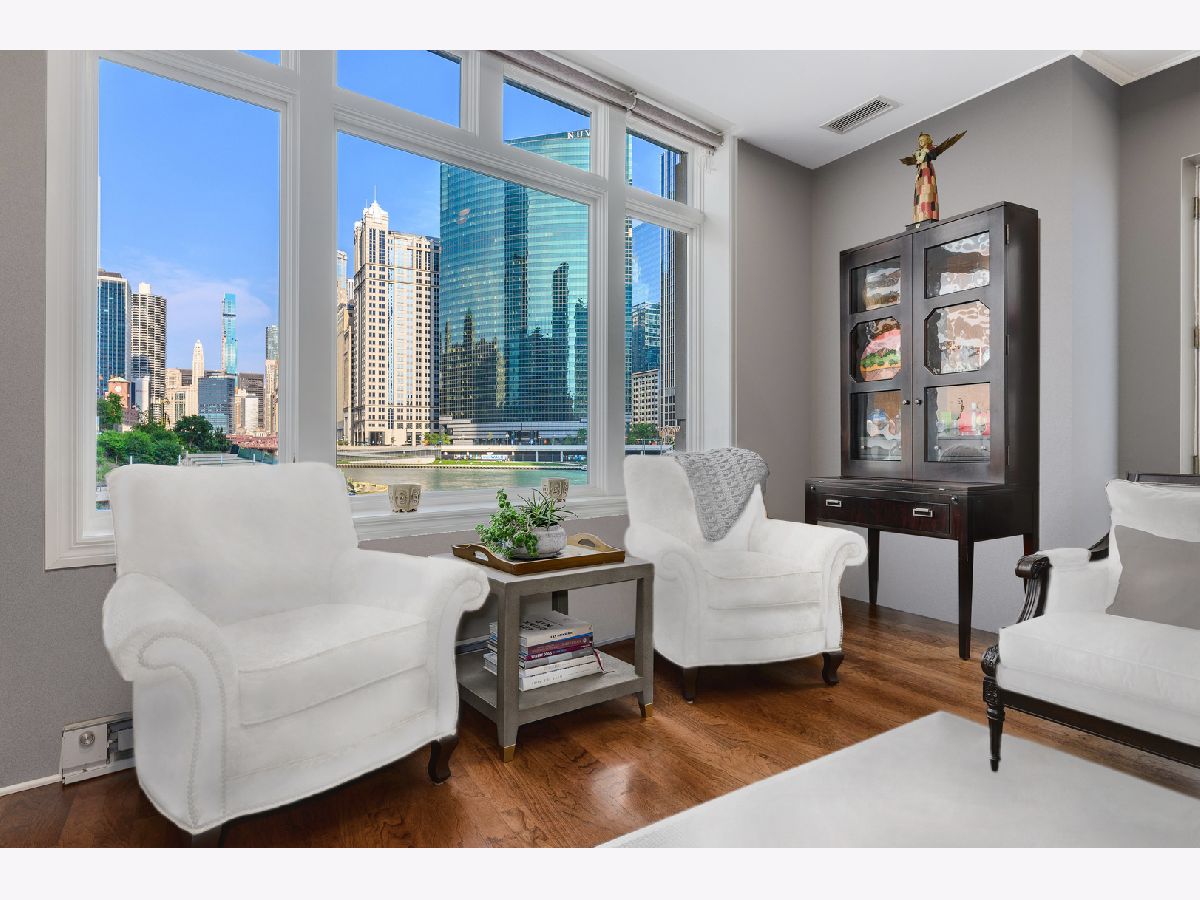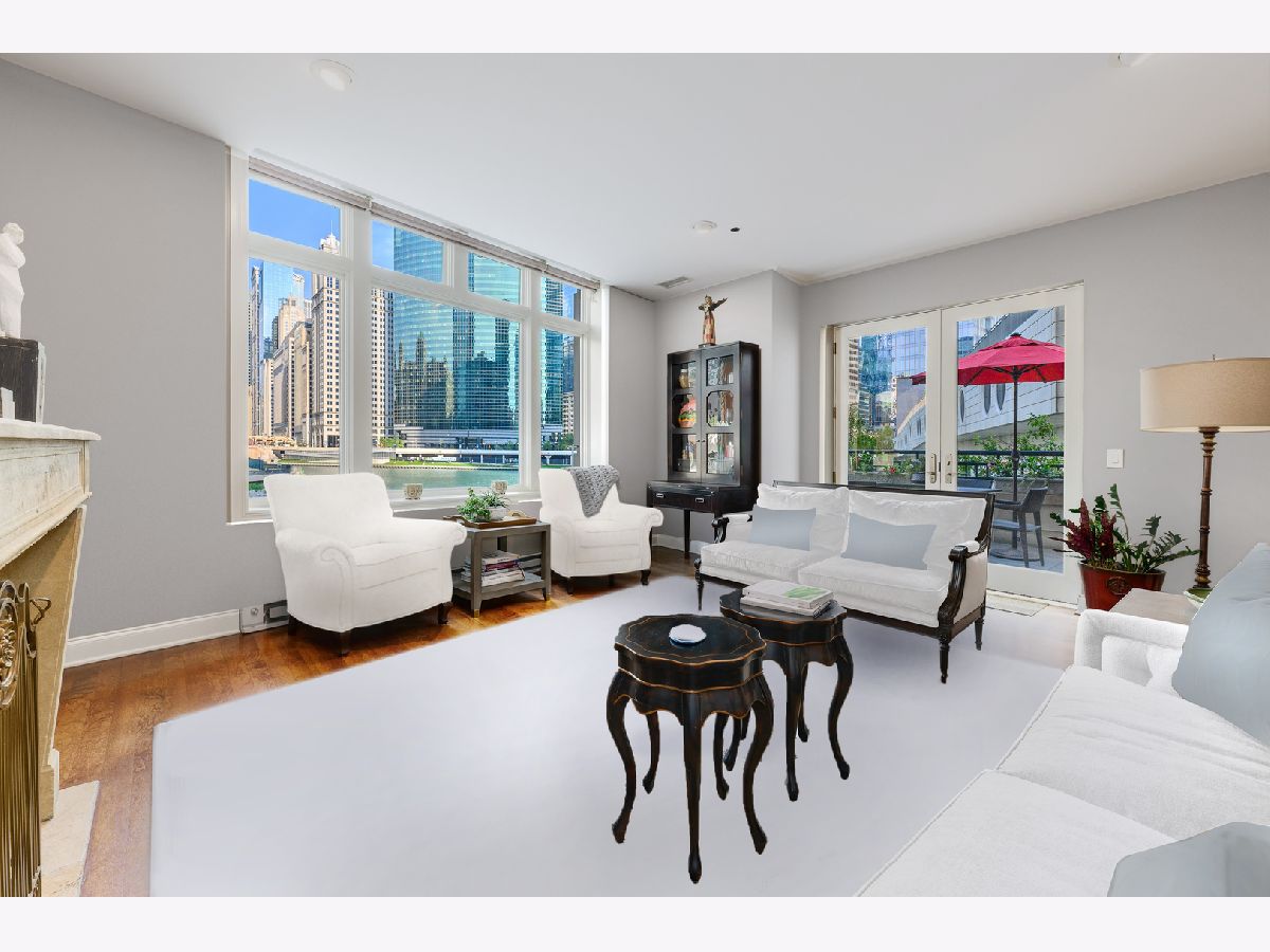 Absolutely spectacular 5400 square foot 3 bedroom (4th bedroom used as office), 4.1 bath plus family room Waterfront property inside the River Bend Condominium Building! This property is an Entire Townhome with 75 feet of waterfront and offers spectacular river and skyline views out every window, in a solid luxury full amenity high-rise. This stunning impeccably and extensively renovated property combines the best lifestyle of a home and Highrise living. It's a condominium with a private interior three stop elevator and has attached 2 car garage parking without the expense of maintaining a roof, yard or other costs of a house! Home features quality workmanship throughout with over-the-top refined finishes including rich flooring, 3 fireplaces, wine bar, wet bars, gorgeous updated kitchen with white cabinetry, stainless appliances, white quartz counters and new pendant lighting. The kitchen opens to a great room with an over-the-top custom wine bar featuring 2 30" Sub Zero wine refrigerators each with 146 bottle capacity, Subzero refrigerator/freezer drawers, stone counter, chic tiled backsplash and walk in pantry plus dramatic double high soaring ceiling with French doors leading to terrace on the river front! Incredibly Lavish massive primary bedroom suite offers sitting area, fireplace and the most phenomenal spa bath featuring custom tile, heated floors, double vanity, freestanding Bain Ultra air jet soaking tub and 2 large tricked out walk in showers one with steam shower plus has 2 Huge professionally outfitted walk- in closets! Gracious living room has Paris Ceramics fireplace, huge formal dining area, separate office area and fantastic large private stone terrace with breathtaking views of the river, bridges and buildings serves as an urban garden and large enough for 6 top table for entertaining. First floor family room features stacked stone wall with integrated gas fireplace, custom wet-bar with Subzero refrigerator/freezer drawers, separate wine refrigerator giving the home a total capacity to store 380 bottles of wine! Full guest suite and smaller 4th bedroom used as home office. Tricked out upgrades include Motorized window treatment and very large private laundry room with storage systems. There are also 2 large additional deeded storage closets outside of the unit and 2 deeded parking spaces $50,000 each. This is a once-in-a-lifetime opportunity to live in such a fantastic property in perfect turnkey condition offering the optimal lifestyle in the city! The high-rise amenities include 24 hour door person, enormous state of the art fitness room with spa room, party room with catering kitchen, Receiving room for packages, Business center room, Drycleaner and Outdoor party space! This neighborhood is very convenient as it is across the street from East Bank Club, Merchandise Mart, centrally located to River North, West Loop and Fulton Market Dining plus Gibson's Italia next door and the Chicago Riverfront walking path right out the door! Amazing price for space, amenities and gorgeous views!