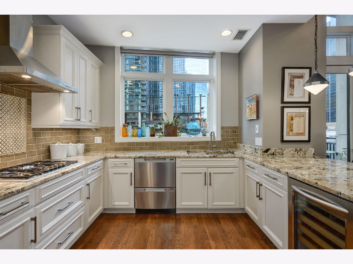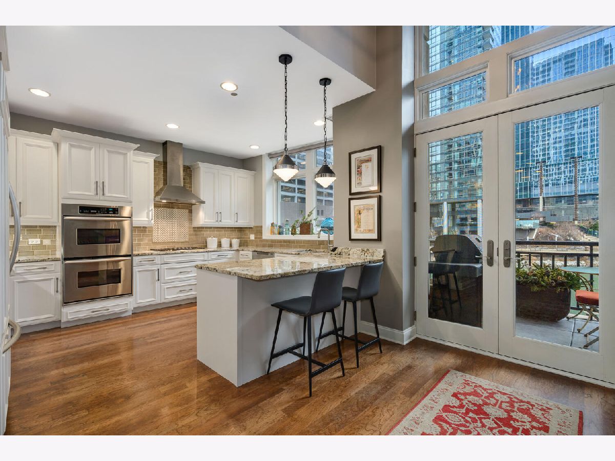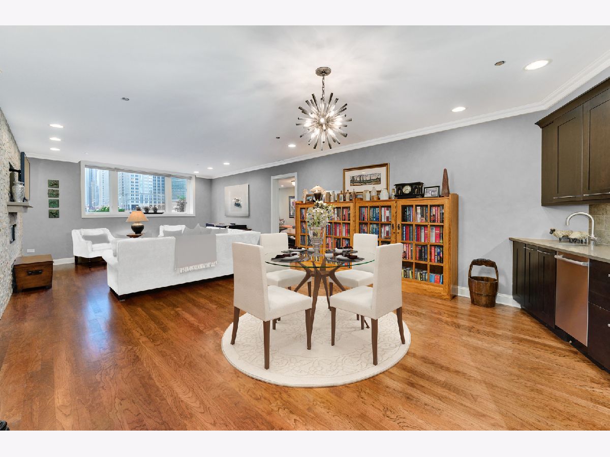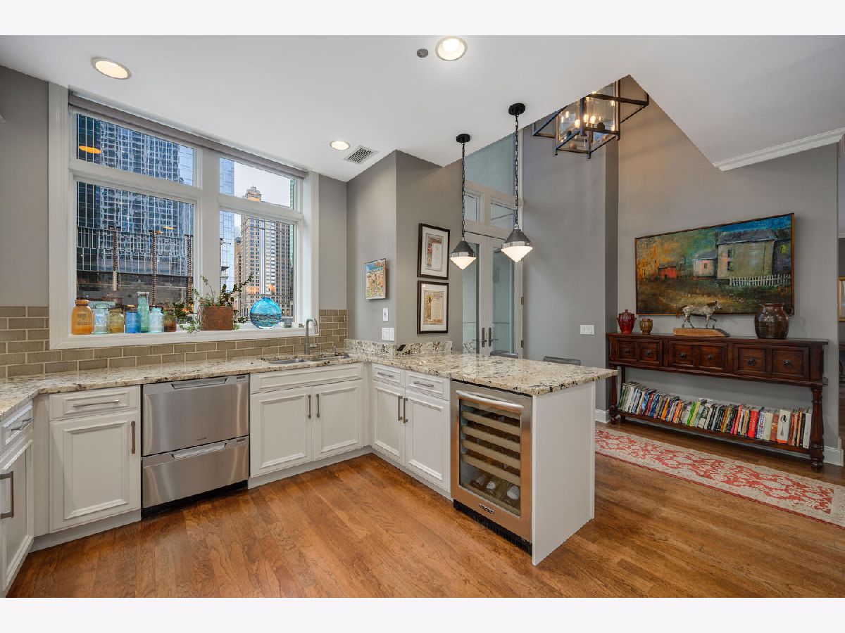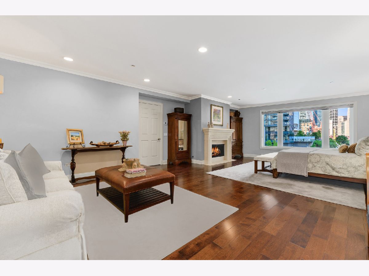 Absolutely spectacular 5400 square foot 3 bedroom (4th bedroom used as office), 4.1 bath plus family room Waterfront property inside the River Bend Condominium Building! This property is an Entire Townhome with 75 feet of waterfront and offers spectacular river and skyline views out every window, in a solid luxury full amenity high-rise. This stunning impeccably and extensively renovated property combines the best lifestyle of a home and Highrise living. It's a condominium with a private interior three stop elevator and has attached 2 car garage parking without the expense of maintaining a roof, yard or other costs of a house! Home features quality workmanship throughout with over-the-top refined finishes including rich flooring, 3 fireplaces, wine bar, wet bars, gorgeous updated kitchen with white cabinetry, stainless appliances, white quartz counters and new pendant lighting. The kitchen opens to a great room with an over-the-top custom wine bar featuring 2 30" Sub Zero wine refrigerators each with 146 bottle capacity, Subzero refrigerator/freezer drawers, stone counter, chic tiled backsplash and walk in pantry plus dramatic double high soaring ceiling with French doors leading to terrace on the river front! Incredibly Lavish massive primary bedroom suite offers sitting area, fireplace and the most phenomenal spa bath featuring custom tile, heated floors, double vanity, freestanding Bain Ultra air jet soaking tub and 2 large tricked out walk in showers one with steam shower plus has 2 Huge professionally outfitted walk- in closets! Gracious living room has Paris Ceramics fireplace, huge formal dining area, separate office area and fantastic large private stone terrace with breathtaking views of the river, bridges and buildings serves as an urban garden and large enough for 6 top table for entertaining. First floor family room features stacked stone wall with integrated gas fireplace, custom wet-bar with Subzero refrigerator/freezer drawers, separate wine refrigerator giving the home a total capacity to store 380 bottles of wine! Full guest suite and smaller 4th bedroom used as home office. Tricked out upgrades include Motorized window treatment and very large private laundry room with storage systems. There are also 2 large additional deeded storage closets outside of the unit and 2 deeded parking spaces $50,000 each. This is a once-in-a-lifetime opportunity to live in such a fantastic property in perfect turnkey condition offering the optimal lifestyle in the city! The high-rise amenities include 24 hour door person, enormous state of the art fitness room with spa room, party room with catering kitchen, Receiving room for packages, Business center room, Drycleaner and Outdoor party space! This neighborhood is very convenient as it is across the street from East Bank Club, Merchandise Mart, centrally located to River North, West Loop and Fulton Market Dining plus Gibson's Italia next door and the Chicago Riverfront walking path right out the door! Amazing price for space, amenities and gorgeous views!