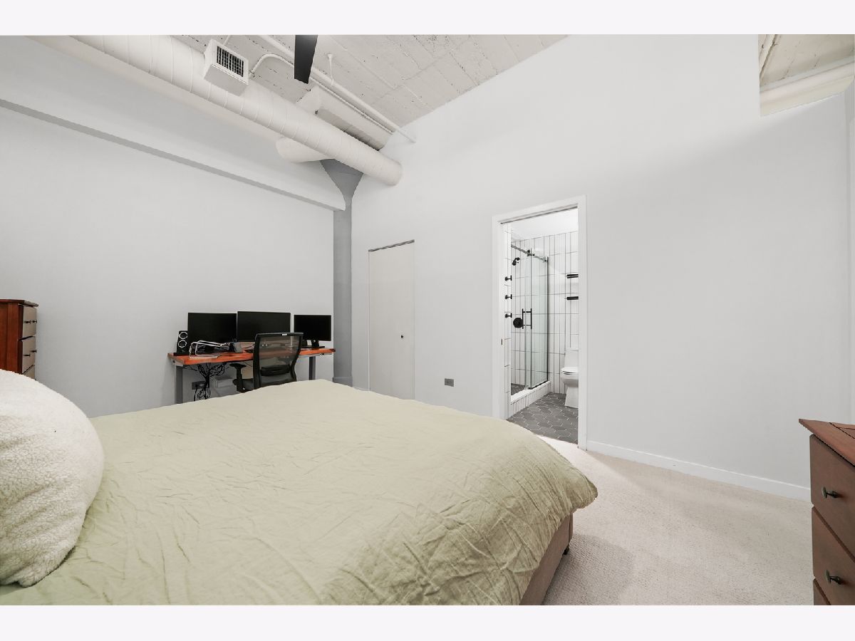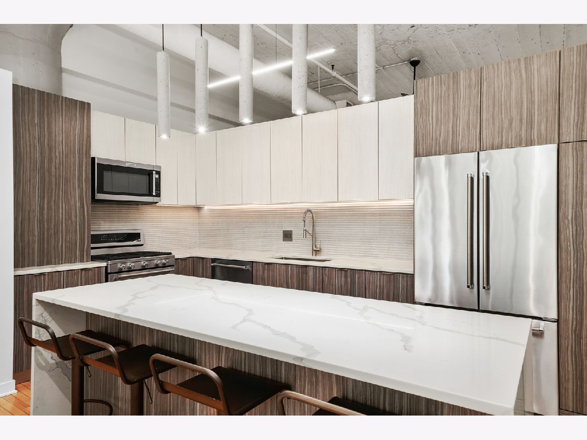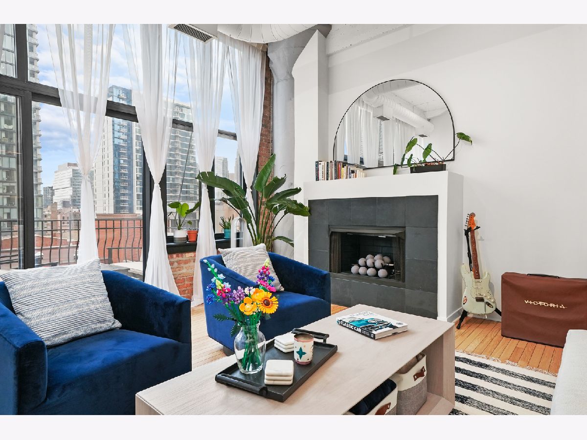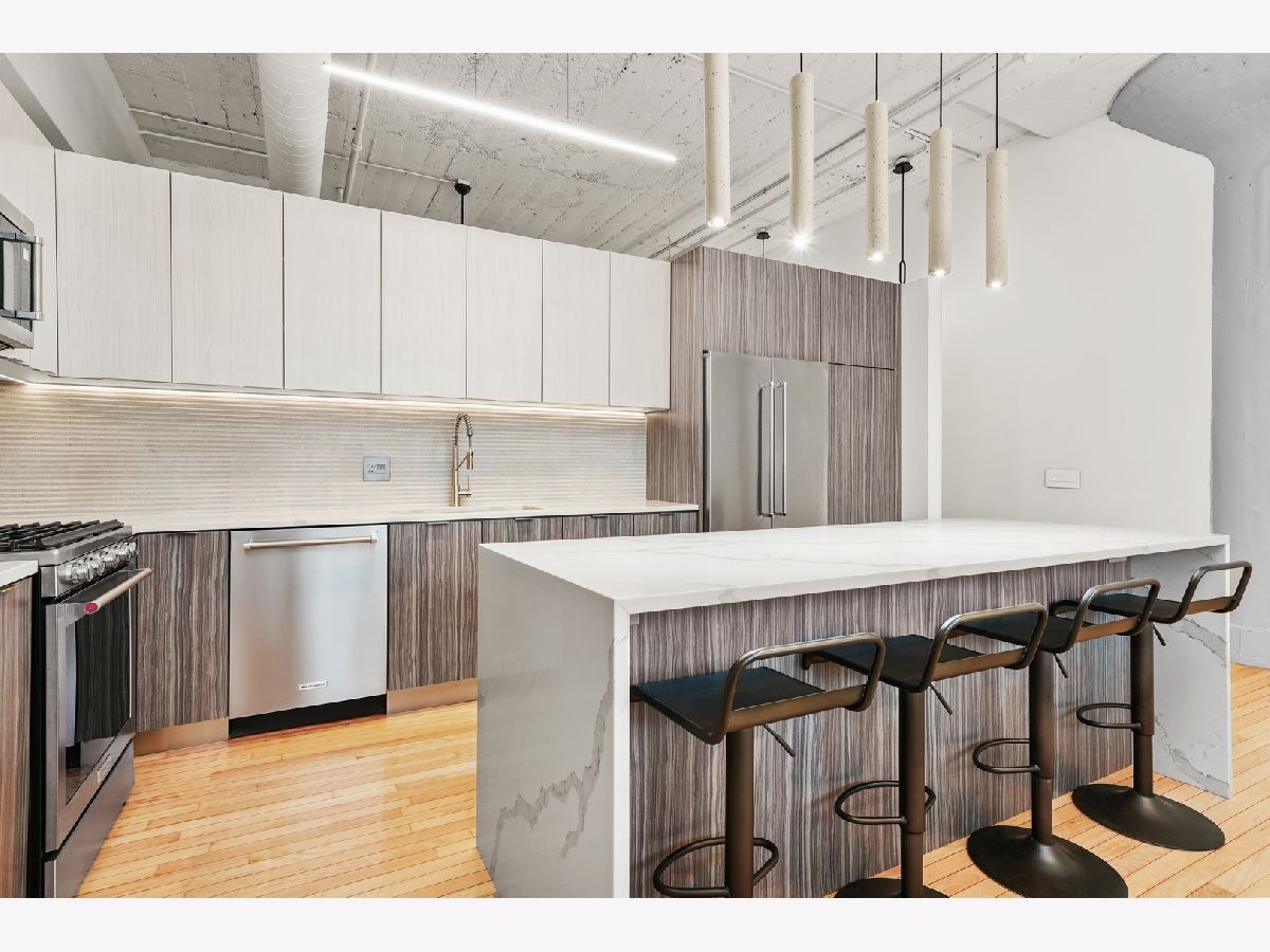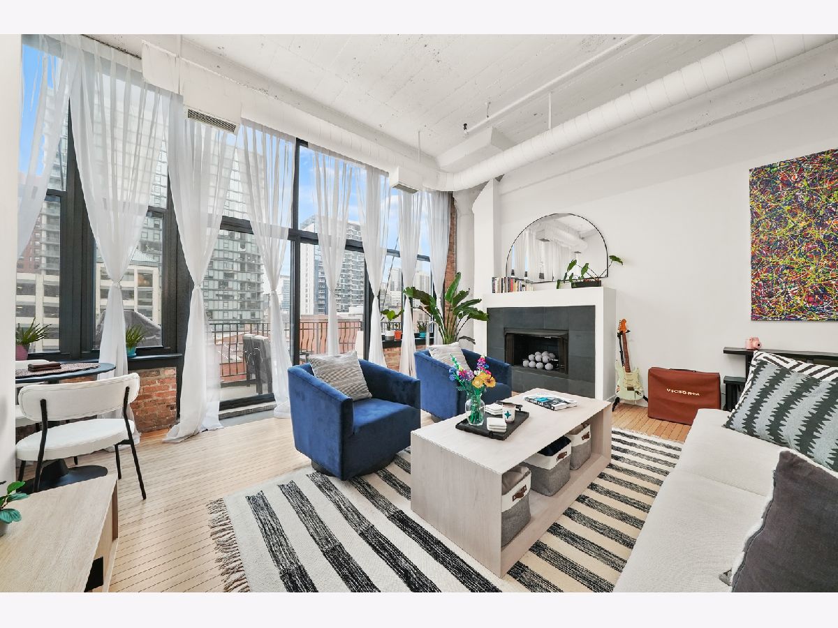 Turn-Key, Fully Renovated 1Bed/1Bath Loft at Union Square Lofts - Prime River North Location! Welcome to this spacious and stylish concrete loft, perfectly located in the heart of River North. This beautifully renovated home features dramatic 12-foot ceilings, gorgeous hardwood floors, and oversized windows that flood the space with natural light. The expansive, open-concept living area offers plenty of room for a large sectional and flows seamlessly into the designer kitchen, complete with custom cabinetry, a stunning 7+ foot waterfall island, stainless steel appliances, and a wine fridge-perfect for entertaining. Retreat to the primary suite featuring custom built-ins, lofted storage, and a thoughtfully designed layout. The updated bathroom is outfitted with classic subway tile and a spacious walk-in shower. Enjoy warm weather on your private balcony, ideal for relaxing or entertaining. Every detail in this unit has been carefully considered-custom cabinets and closets throughout (each with unique, texture-matched finishes), designer lighting, a Bosch washer and dryer, Ecobee smart thermostat, additional storage, and garage parking for $30K. Unbeatable location just one block from the Merchandise Mart Brown Line stop and within half a mile of nearly every major train line. Steps to East Bank Club and some of Chicago's best dining, shopping, and nightlife. Explore this stunning property in 3D! Click the 3D button to take a virtual tour and experience every detail.
