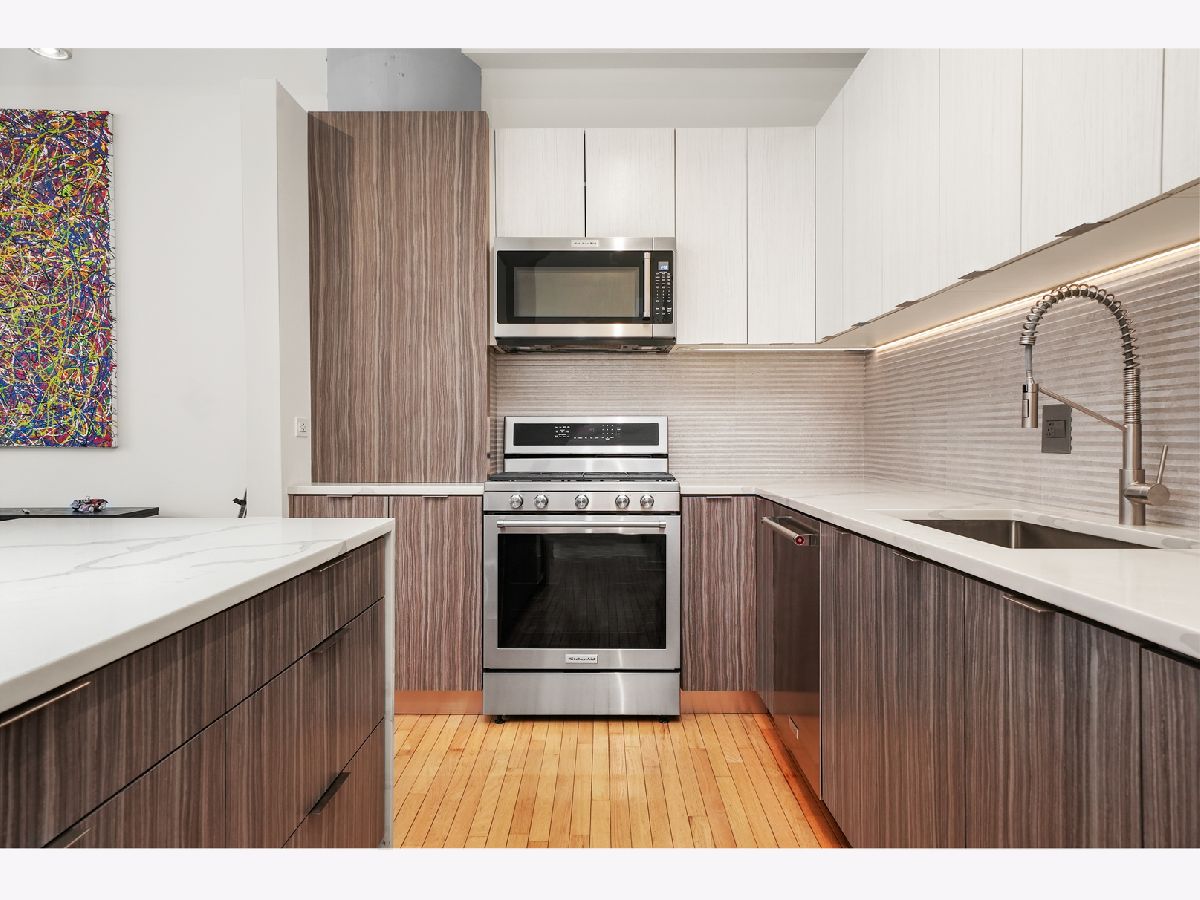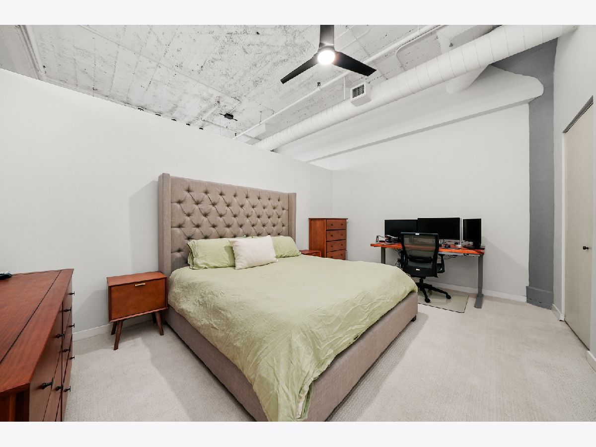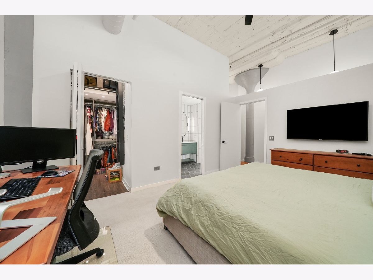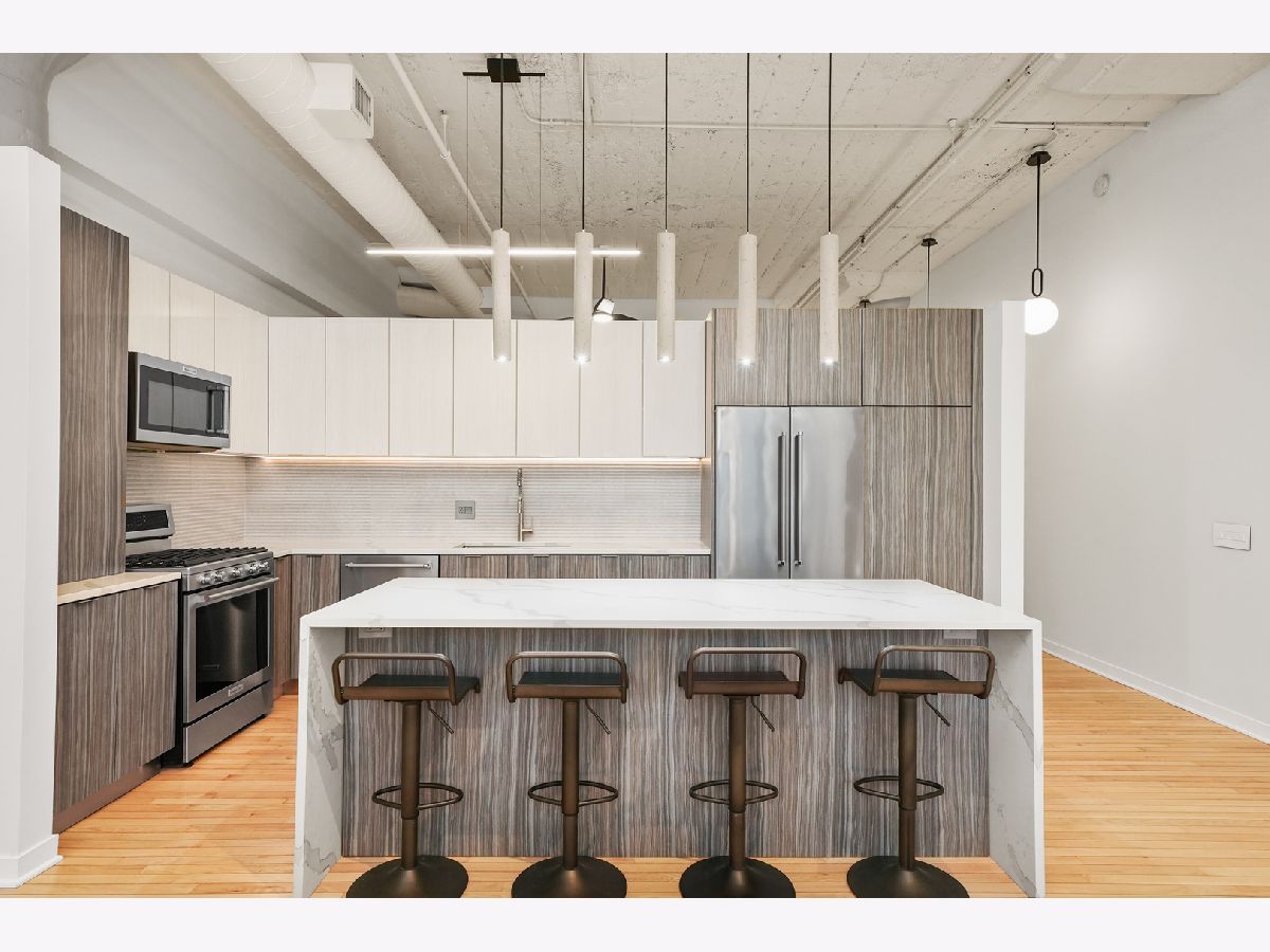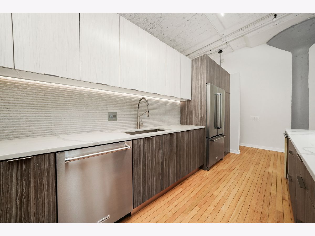 Turn-Key, Fully Renovated 1Bed/1Bath Loft at Union Square Lofts - Prime River North Location! Welcome to this spacious and stylish concrete loft, perfectly located in the heart of River North. This beautifully renovated home features dramatic 12-foot ceilings, gorgeous hardwood floors, and oversized windows that flood the space with natural light. The expansive, open-concept living area offers plenty of room for a large sectional and flows seamlessly into the designer kitchen, complete with custom cabinetry, a stunning 7+ foot waterfall island, stainless steel appliances, and a wine fridge-perfect for entertaining. Retreat to the primary suite featuring custom built-ins, lofted storage, and a thoughtfully designed layout. The updated bathroom is outfitted with classic subway tile and a spacious walk-in shower. Enjoy warm weather on your private balcony, ideal for relaxing or entertaining. Every detail in this unit has been carefully considered-custom cabinets and closets throughout (each with unique, texture-matched finishes), designer lighting, a Bosch washer and dryer, Ecobee smart thermostat, additional storage, and garage parking for $30K. Unbeatable location just one block from the Merchandise Mart Brown Line stop and within half a mile of nearly every major train line. Steps to East Bank Club and some of Chicago's best dining, shopping, and nightlife. Explore this stunning property in 3D! Click the 3D button to take a virtual tour and experience every detail.