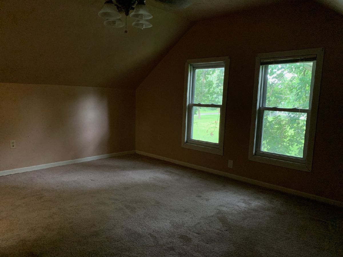 This quaint 1.5 story home right across the street from Forrest Park is waiting for you to come become it's new owners! This home features a beautiful kitchen that flows right into the dining room with french doors that provide a view to the HUGE backyard. Off of the dining room you will find a full bathroom with an attached laundry room. The living room has lots of natural lighting with the large windows. Master bedroom is off of the living room as well. Upstairs is an oversized bedroom with a walk in closet and an additional bonus room which could serve as a den or a possible office (does not have a closet). Updated windows through out home, and parking along the side of the house. Come see this gem before it's gone!