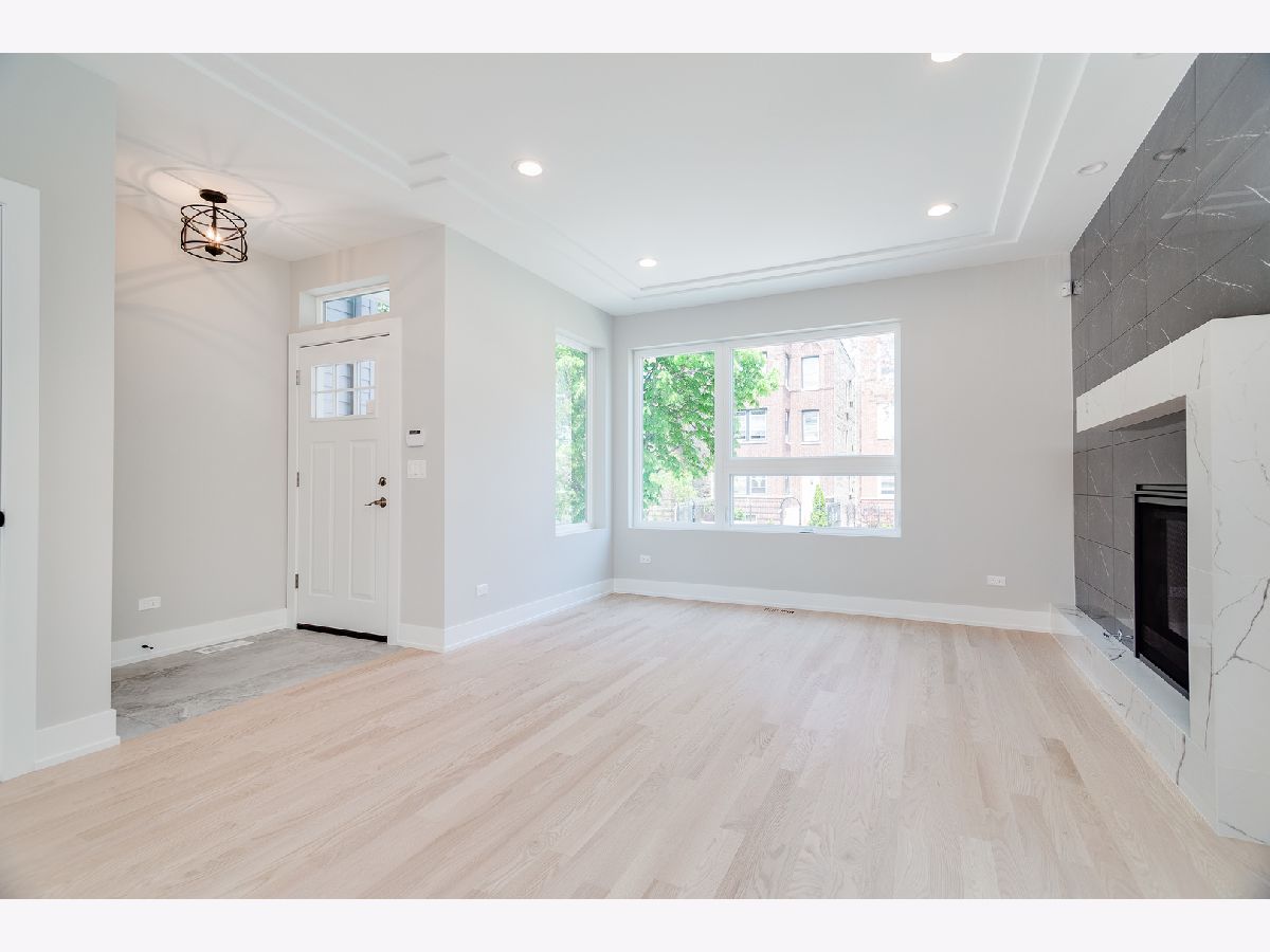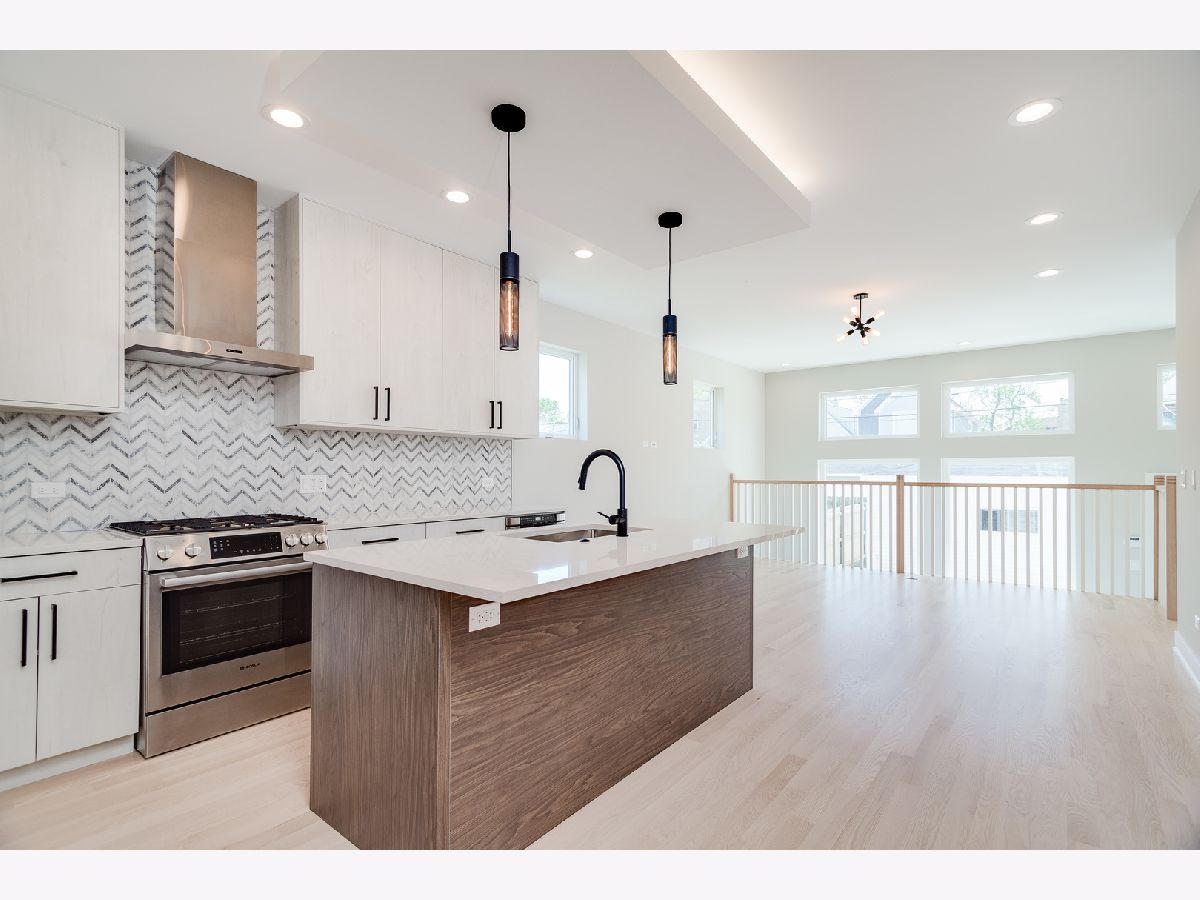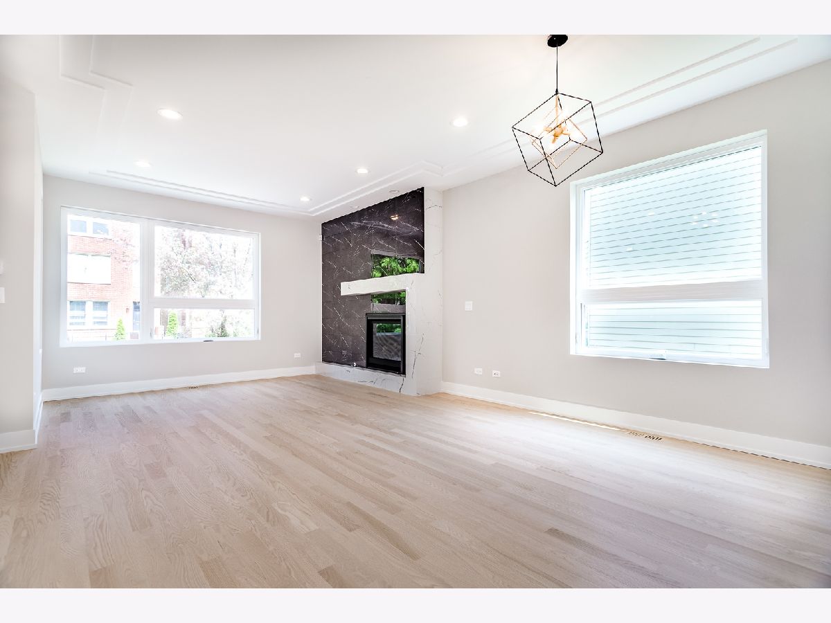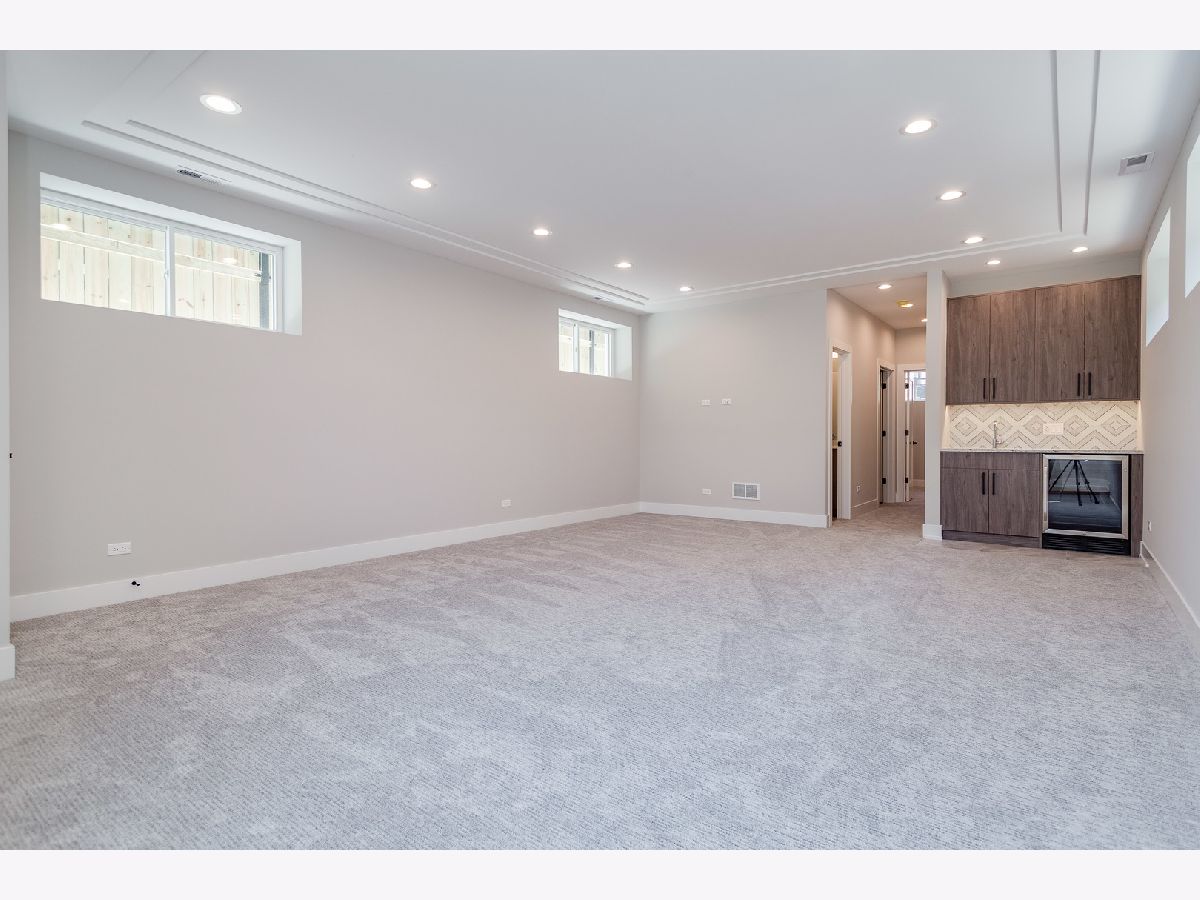 Impeccable new construction SFH by top developer. Sharp facade with Hardie lap siding and stone accents. Bright and spacious combined living/dining area features gas fireplace with custom surround. Chef's kitchen includes Bosch appliances, modern flat panel soft close cabinetry, quartz counters, chevron tile backsplash, island with bar seating, and pantry. Adjoining family room with oversized windows and exit to rear yard. Sunny primary suite features two large closets and private bath with frameless glass shower, designer tile, dual vanity and heated flooring. 2 additional bedrooms, full bath with dual vanity, tub, and linen closet, and laundry complete the upper level. Finished lower level with nice ceiling heights and great natural light, large recreation room with wet bar and beverage center, 4th bedroom, full bath, and laundry room with second hook-up. Hardwood flooring, statement lighting, skylights, custom ceiling details, security system and more. Enclosed front yard with security intercom. Enclosed backyard with nice green space, stamped concrete patio, and two-car garage. Great Irving Park location near restaurants, shopping, public transportation, parks, and more! Estimated completion June 15. Photos are from the completed home next door.
