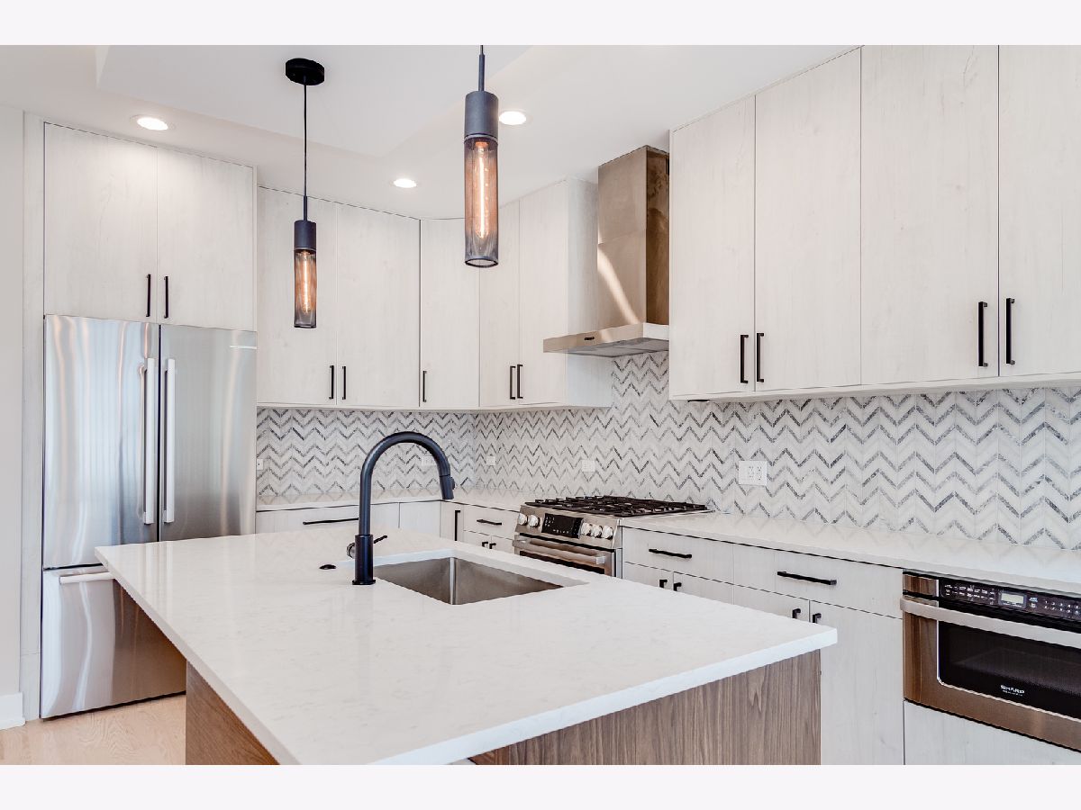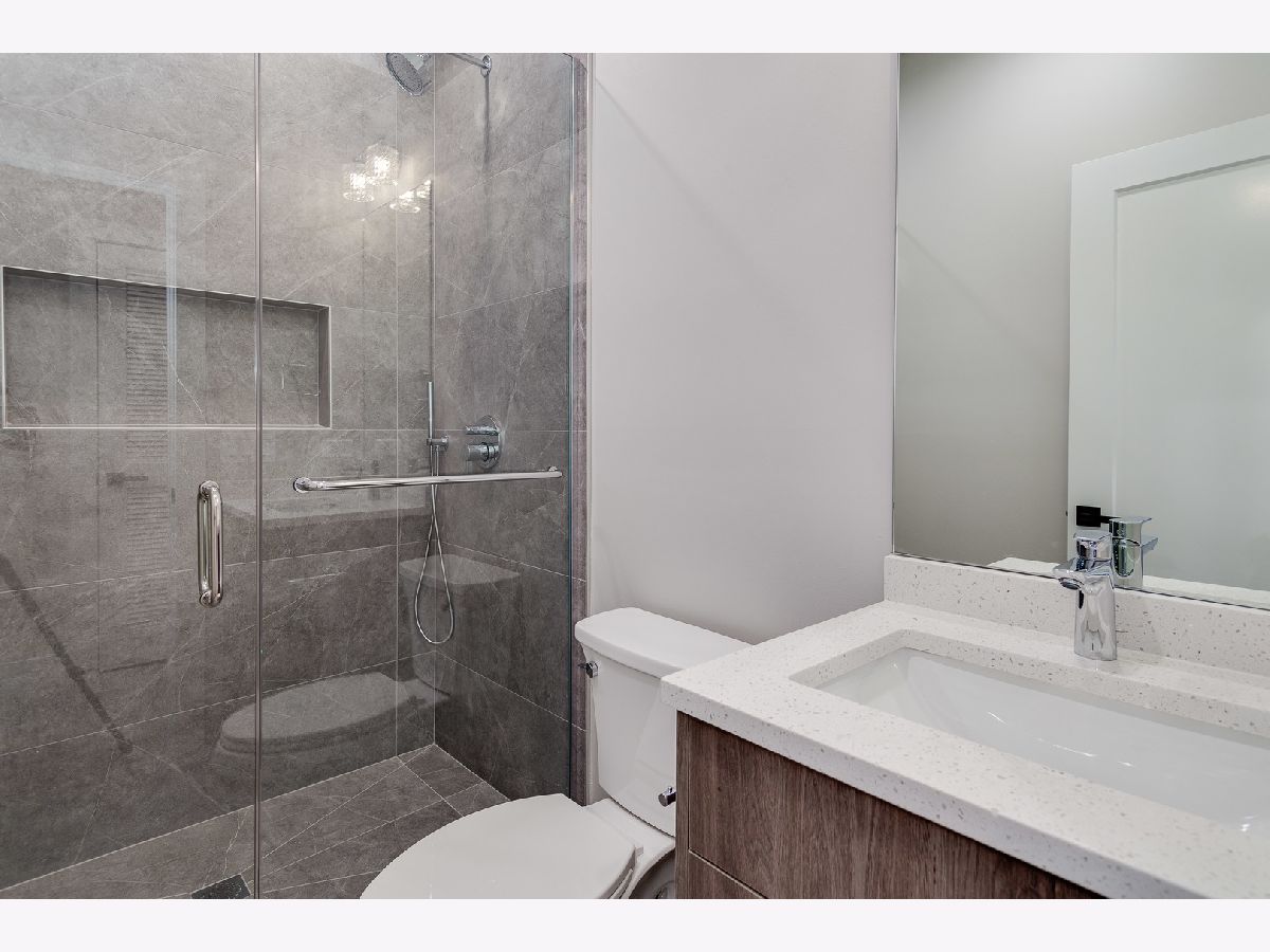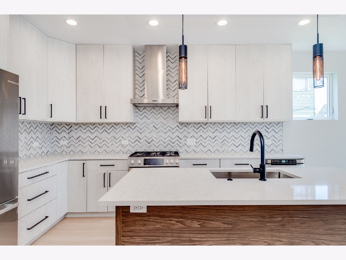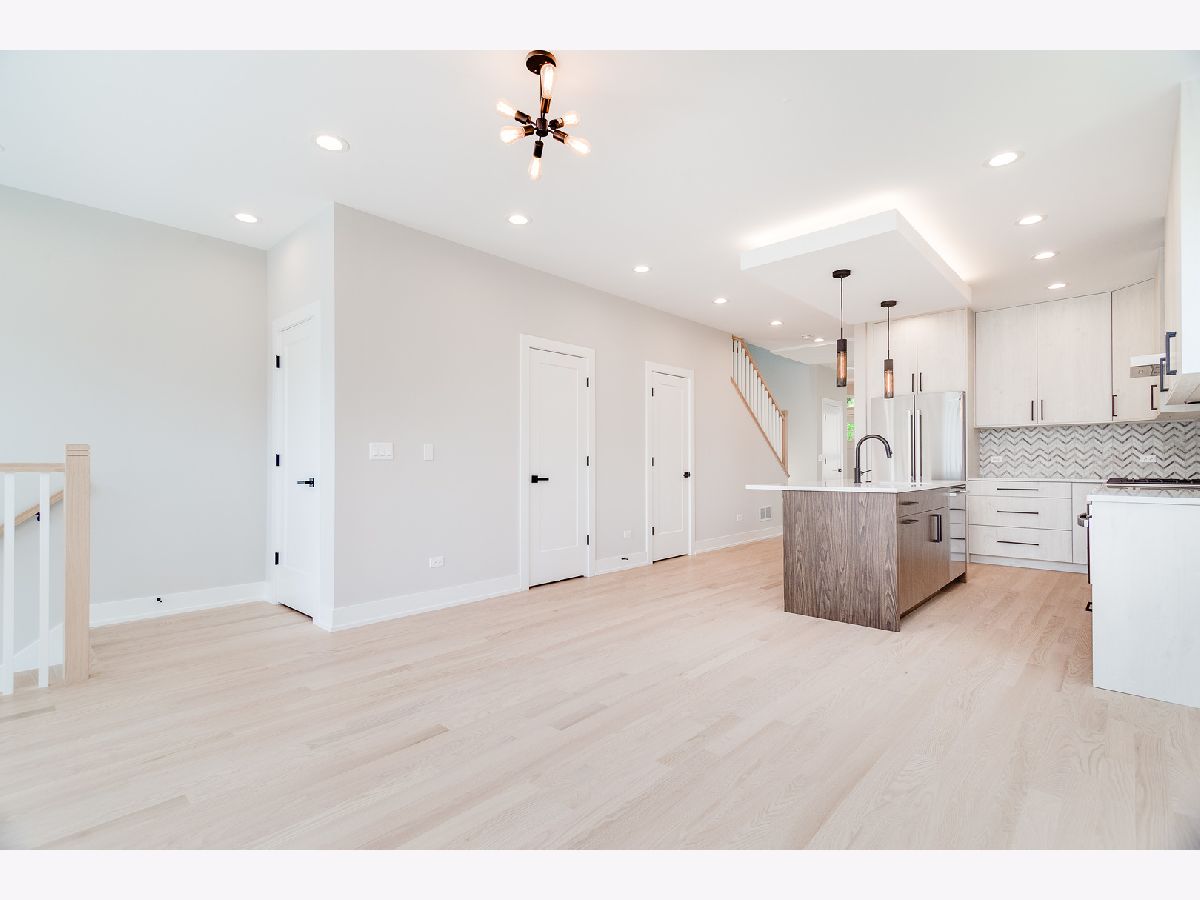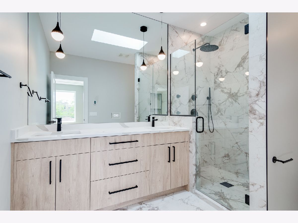 Impeccable new construction SFH by top developer. Sharp facade with Hardie lap siding and stone accents. Bright and spacious combined living/dining area features gas fireplace with custom surround. Chef's kitchen includes Bosch appliances, modern flat panel soft close cabinetry, quartz counters, chevron tile backsplash, island with bar seating, and pantry. Adjoining family room with oversized windows and exit to rear yard. Sunny primary suite features two large closets and private bath with frameless glass shower, designer tile, dual vanity and heated flooring. 2 additional bedrooms, full bath with dual vanity, tub, and linen closet, and laundry complete the upper level. Finished lower level with nice ceiling heights and great natural light, large recreation room with wet bar and beverage center, 4th bedroom, full bath, and laundry room with second hook-up. Hardwood flooring, statement lighting, skylights, custom ceiling details, security system and more. Enclosed front yard with security intercom. Enclosed backyard with nice green space, stamped concrete patio, and two-car garage. Great Irving Park location near restaurants, shopping, public transportation, parks, and more! Estimated completion June 15. Photos are from the completed home next door.