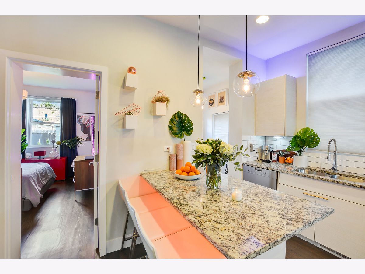 Beautifully finished, sleek single family home in hot Humboldt Park. This recently renovated 3BR/1BA home offers great space finished to perfection. Hardwood floors throughout, the home offers tall ceiling height and through the foyer, opens to living area with wonderful natural light. Modern, European kitchen features 42" cabinets, granite countertops and island, SS appliances and newer backsplash. Updated spa like bath has enormous walk in shower, designer tile and updated lighting. Main bedroom has walk in closet offering ample storage. Two additional bedrooms, mud room and side by side laundry complete the space. Back yard is an urban oasis- with 13x9 deck, fenced in yard with lovely green space and garage. Unfinished basement is great for additional storage. Location is close to Humboldt Park, multiple bus lines (CTA), shopping, restaurants and nightlife. A preferred lender offers a reduced interest rate for this listing