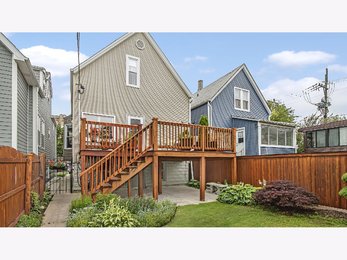 Irving Park home awaits you, with its open floor plan, maintenance free living, and beautifully landscaped back yard and wrap around deck, where you can relax and enjoy entertaining. The garage features an additional party door, great for gatherings. The main floor has high ceilings, and the nice sized kitchen has custom maple cabinets crown moulding, and granite countertops, and opens to the back deck! The living and dining rooms are open and bright, with 10ft ceilings and bay windows. There are two bedrooms on main floor. The second floor has a large and sunny, south-facing primary bedroom, pls second bedroom, bath and walk in storage room. Lower level has a recreation/family room, large laundry/utility room, music room, and workshop for enjoying your hobbies. The home is easy to maintain, with new roof and furnace, new 200 amp service, and exterior siding, new front stairs, porch and back fence. Located on quiet, one-way street, and there are transit options via blue and brown lines, and the bus stop less than a minute from the front door.