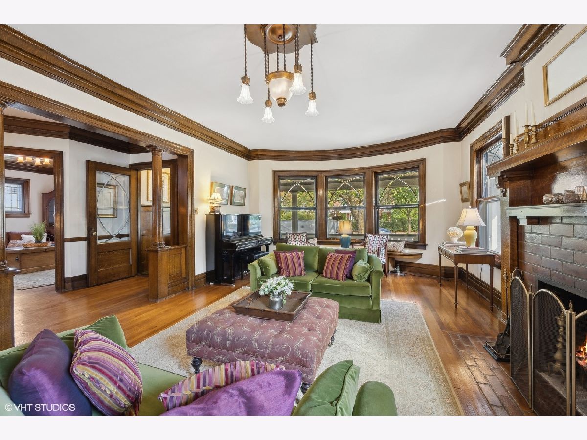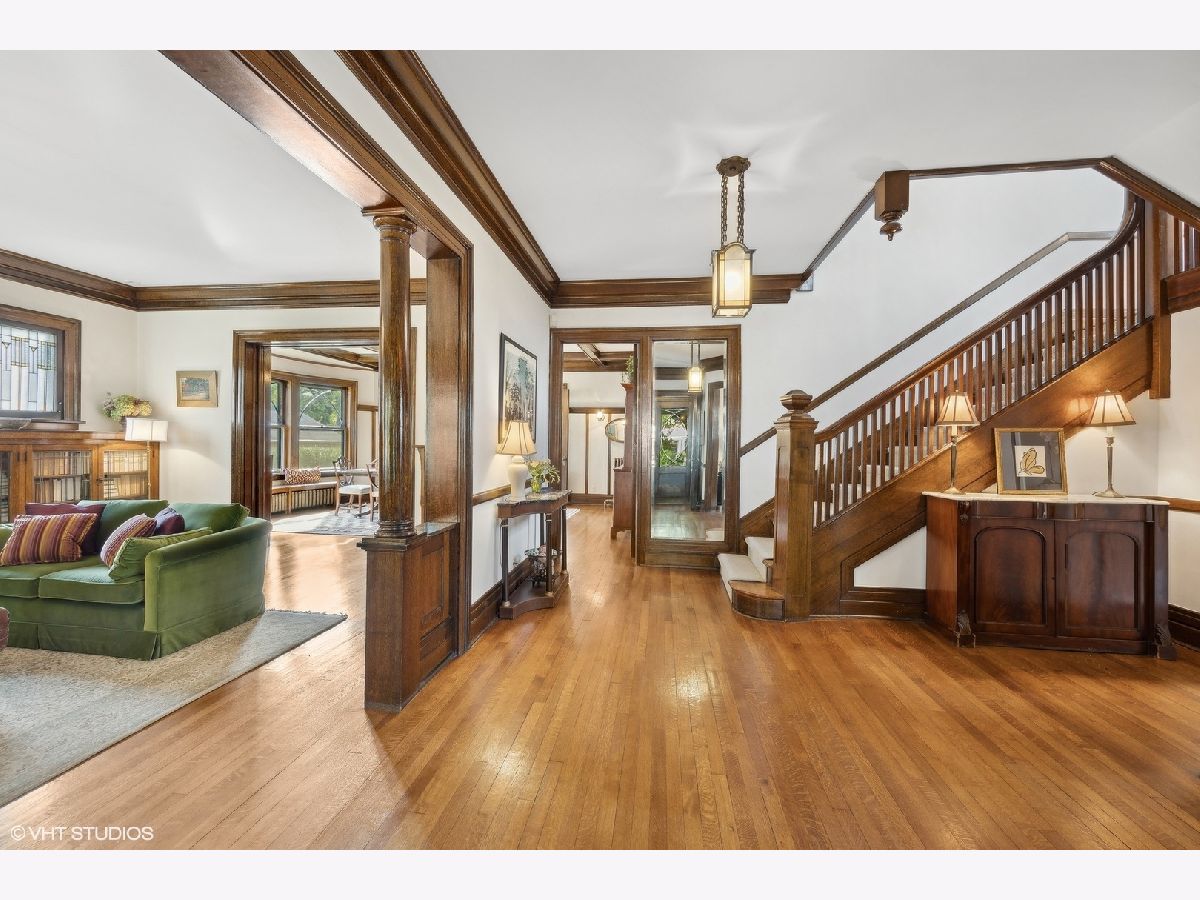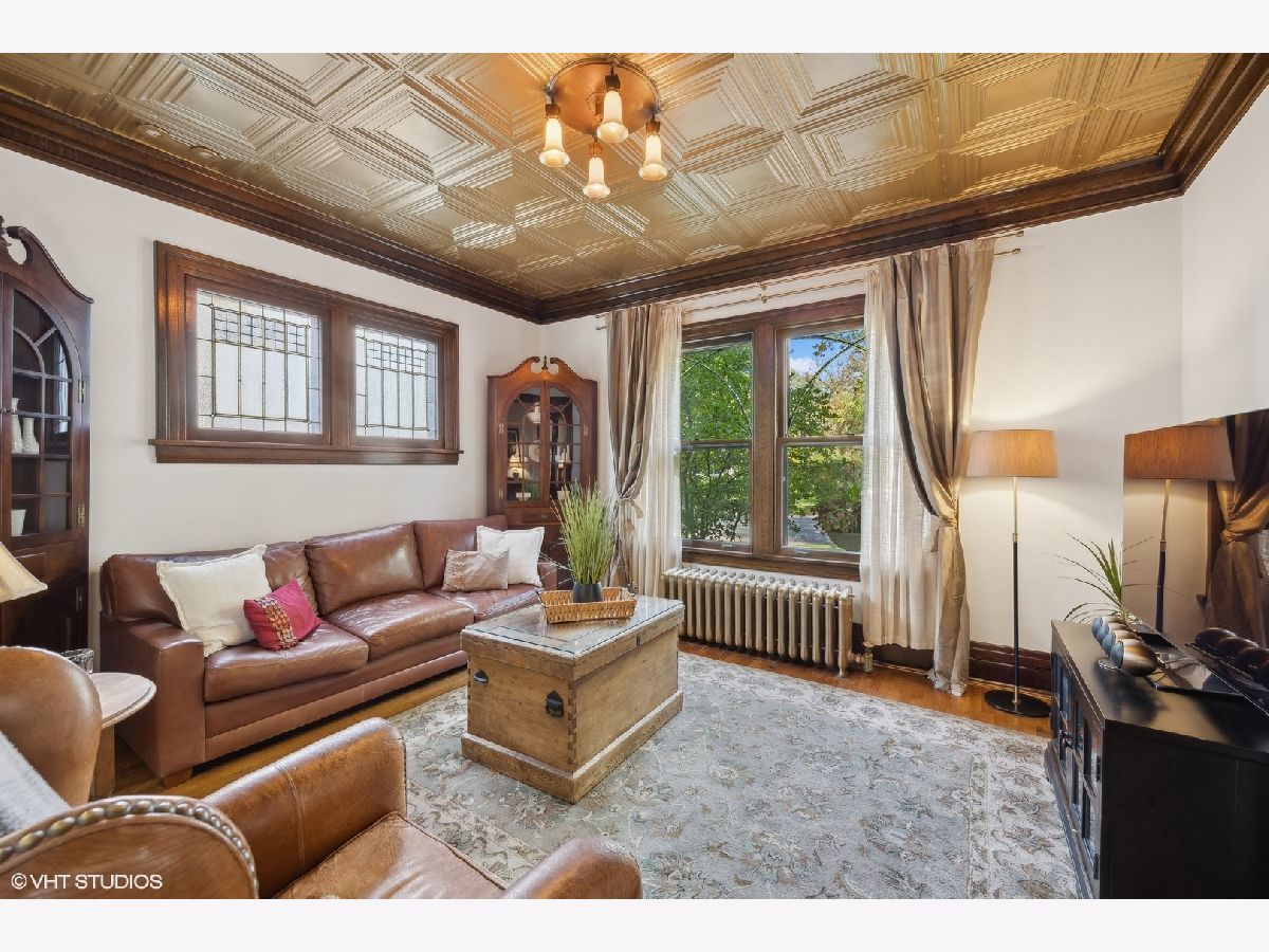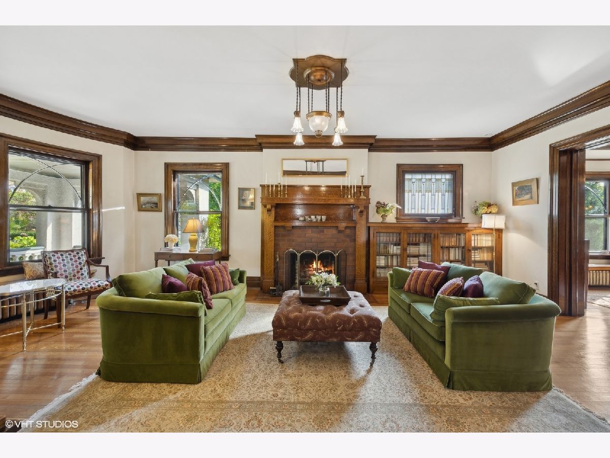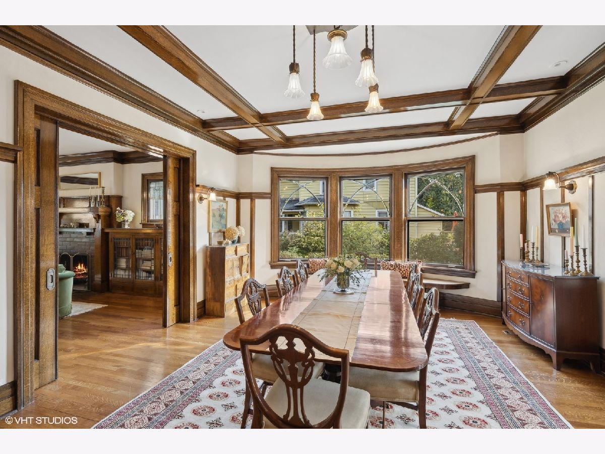 This stately colonial with prairie influences designed by J. N. Tilton, who was a student of Frank Lloyd Wright, is a stunning example of classic architecture with modern updates. It features exquisitely restored millwork, including quarter-sawn oak trim and intricate coffered ceilings in the dining room. Solid pocket doors and leaded glass windows add to its historical charm, while original Tiffany light fixtures enhance its elegance. Upon entering, you'll be greeted by a gracious foyer leading to either a formal living room with a fireplace or a cozy family room adorned with a charming tin ceiling. The expansive dining room, adjacent to the living room, is perfect for both intimate and large gatherings. The chef's kitchen is designed for both functionality and style, boasting a large island, breakfast nook, gas log fireplace and butler's pantry which provides access to the home's rear staircase. The first floor also includes a sunny den, practical mudroom, and powder room. Upstairs, you'll find four bedrooms with ample closet space and two hall bathrooms. The third level offers a sitting area, two additional bedrooms or a flexible space for a home office, along with a full bath. The basement which includes powder room and laundry room offers the opportunity to create expansive recreation space. The home is set on a generous 100x161 foot lot, surrounded by beautifully layered gardens that provide natural privacy. Significant investments have been made to ensure the home's structural integrity and modern comfort, including a new roof, exposed aggregate concrete driveway and walkways, refurbished original windows, replacement windows in the upstairs sunroom, foundation repairs, porch tuckpointing, fresh paint and new carpeting. Situated in the heart of La Grange, this home is just a short walk from its vibrant downtown, the train, and award-winning Cossitt Elementary School!