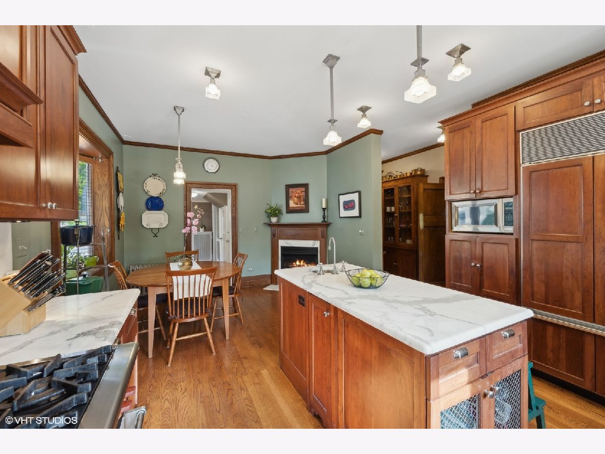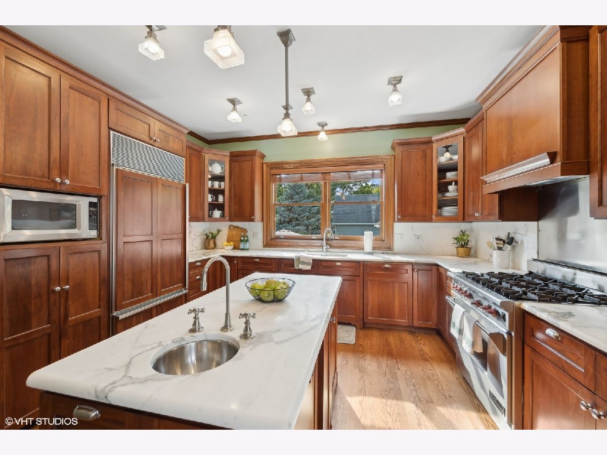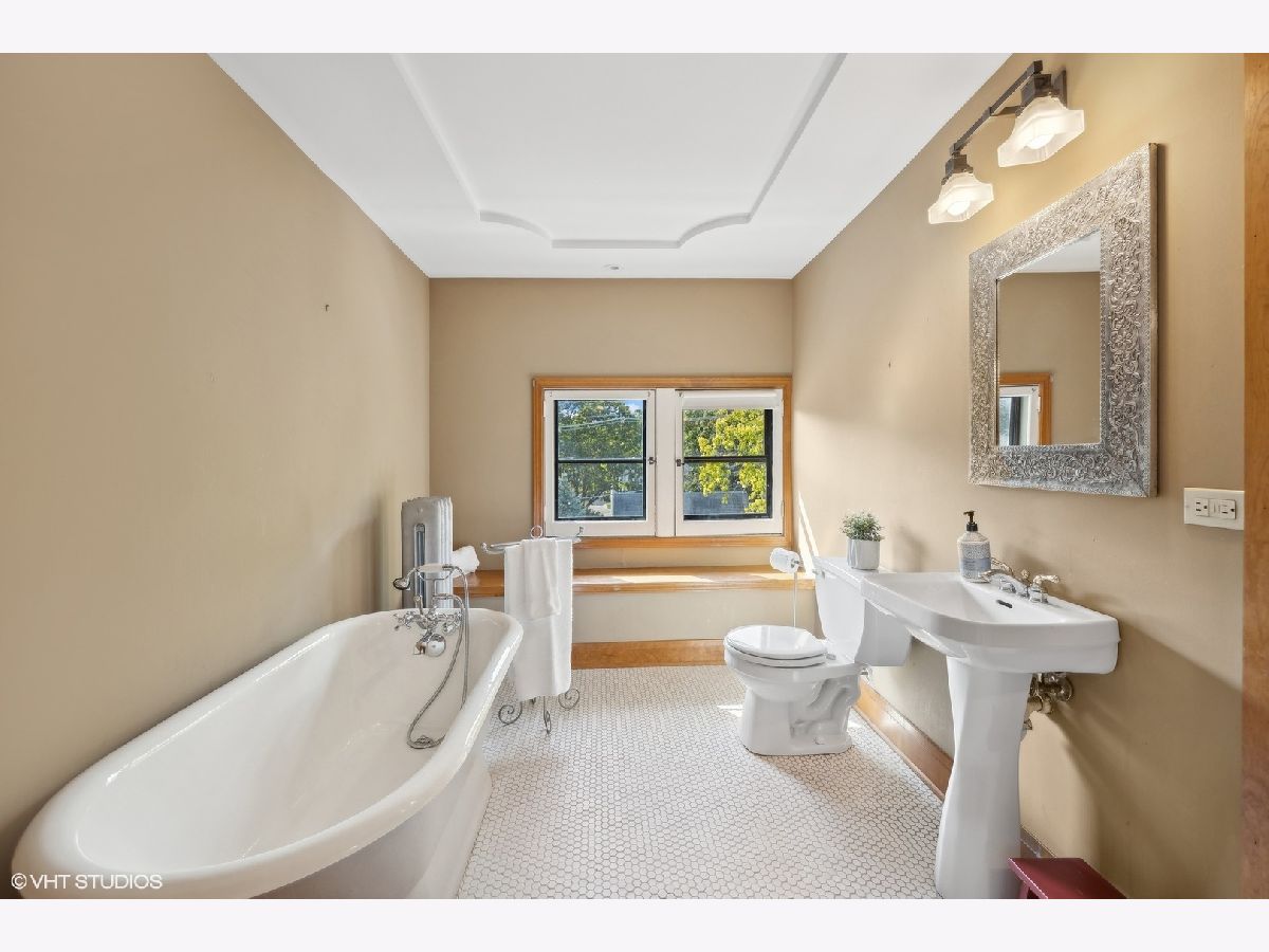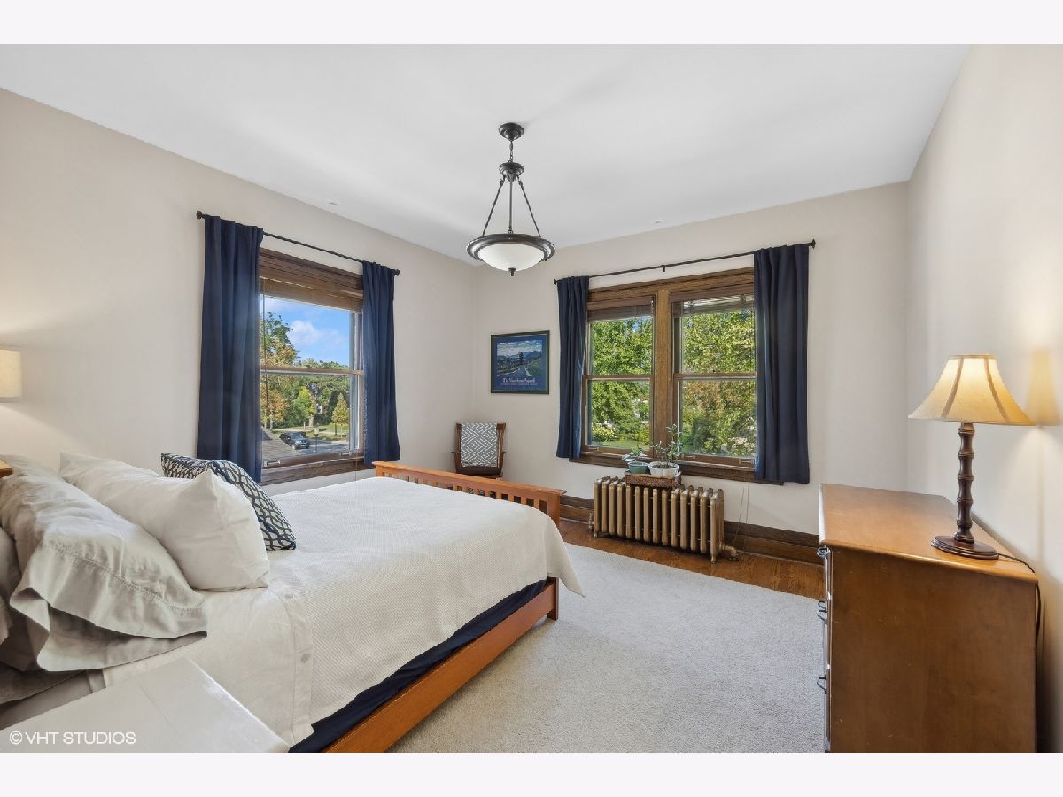 This stately colonial with prairie influences designed by J. N. Tilton, who was a student of Frank Lloyd Wright, is a stunning example of classic architecture with modern updates. It features exquisitely restored millwork, including quarter-sawn oak trim and intricate coffered ceilings in the dining room. Solid pocket doors and leaded glass windows add to its historical charm, while original Tiffany light fixtures enhance its elegance. Upon entering, you'll be greeted by a gracious foyer leading to either a formal living room with a fireplace or a cozy family room adorned with a charming tin ceiling. The expansive dining room, adjacent to the living room, is perfect for both intimate and large gatherings. The chef's kitchen is designed for both functionality and style, boasting a large island, breakfast nook, gas log fireplace and butler's pantry which provides access to the home's rear staircase. The first floor also includes a sunny den, practical mudroom, and powder room. Upstairs, you'll find four bedrooms with ample closet space and two hall bathrooms. The third level offers a sitting area, two additional bedrooms or a flexible space for a home office, along with a full bath. The basement which includes powder room and laundry room offers the opportunity to create expansive recreation space. The home is set on a generous 100x161 foot lot, surrounded by beautifully layered gardens that provide natural privacy. Significant investments have been made to ensure the home's structural integrity and modern comfort, including a new roof, exposed aggregate concrete driveway and walkways, refurbished original windows, replacement windows in the upstairs sunroom, foundation repairs, porch tuckpointing, fresh paint and new carpeting. Situated in the heart of La Grange, this home is just a short walk from its vibrant downtown, the train, and award-winning Cossitt Elementary School!