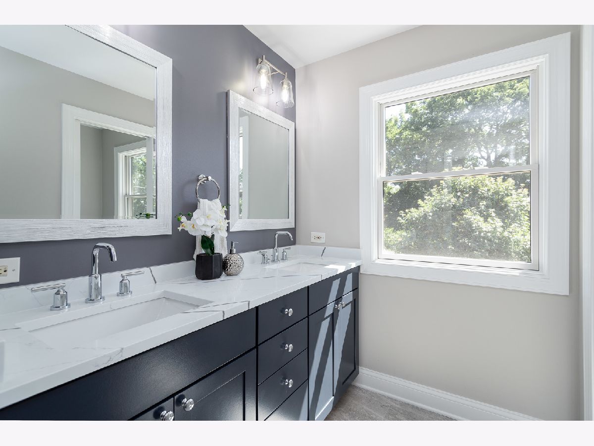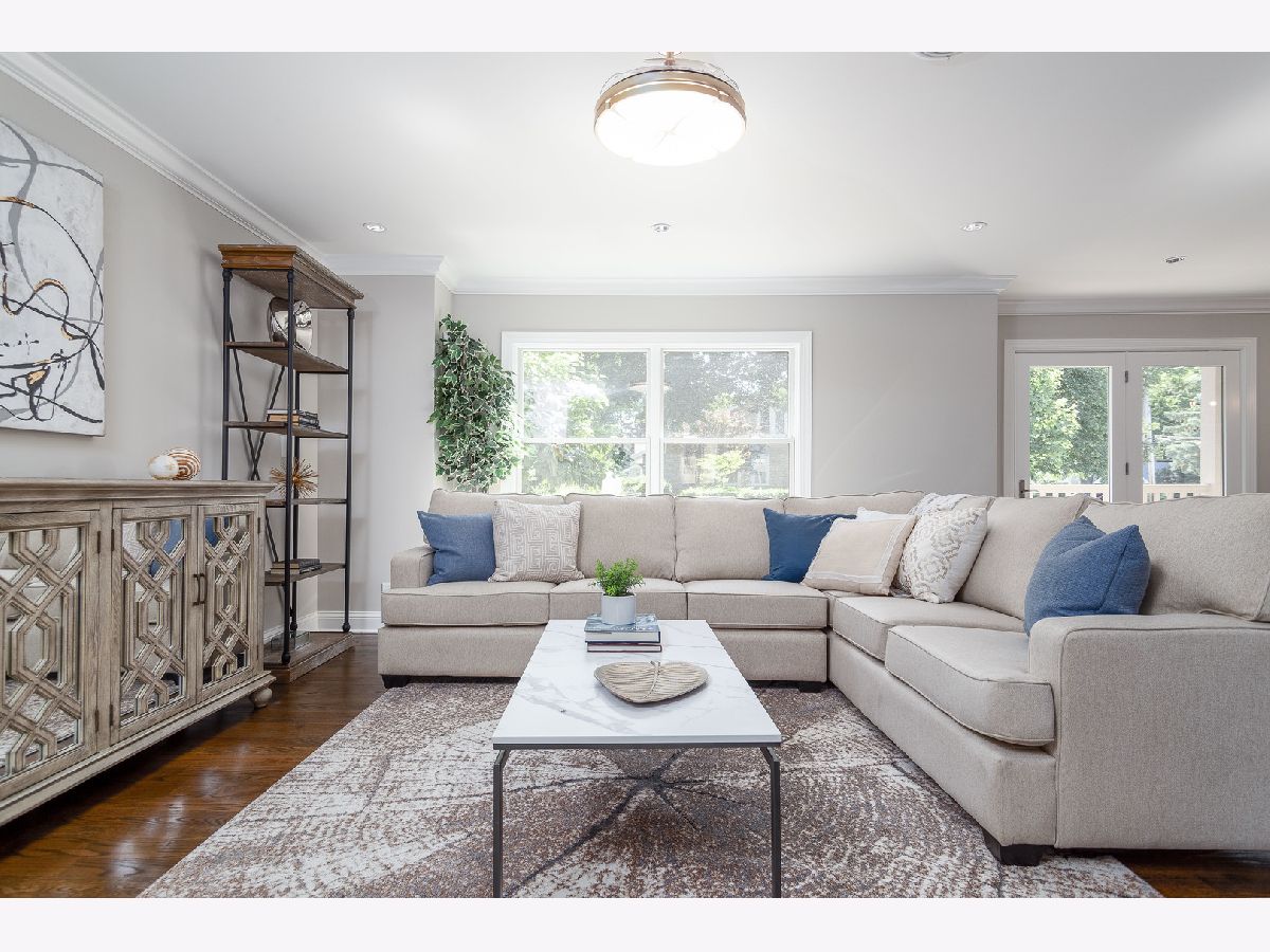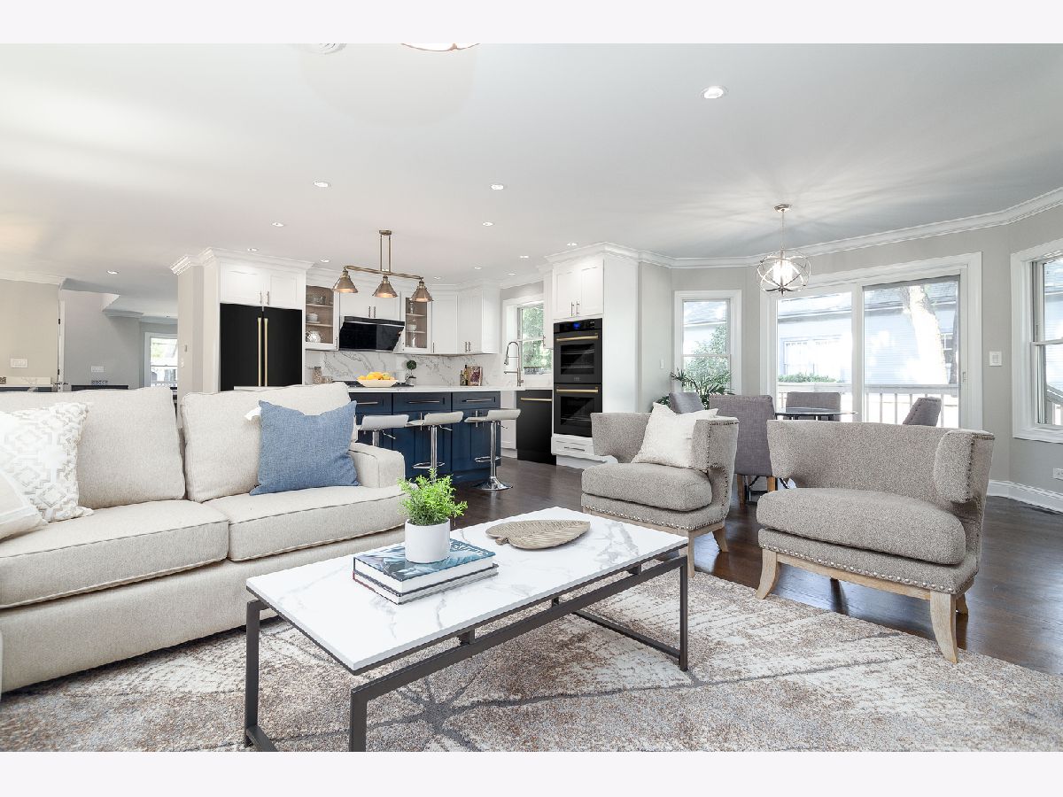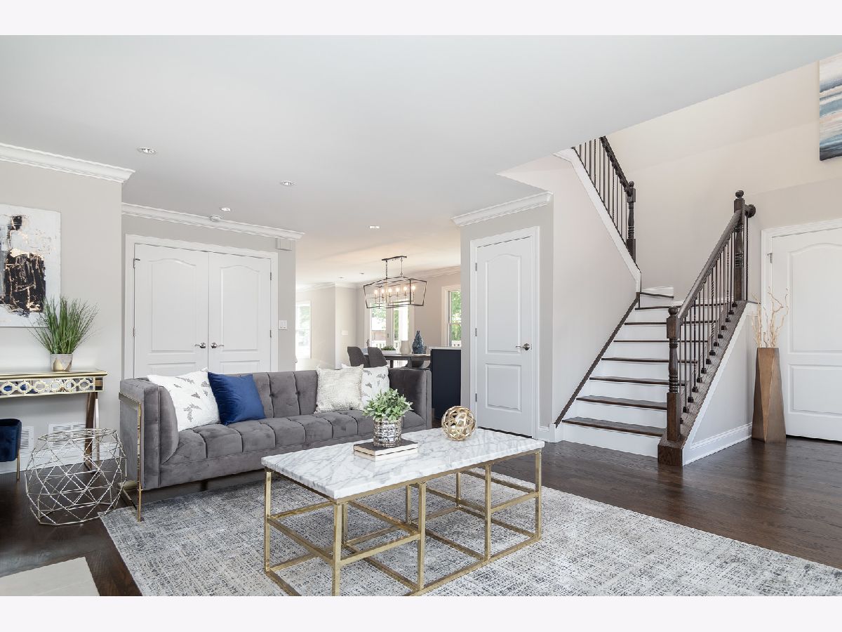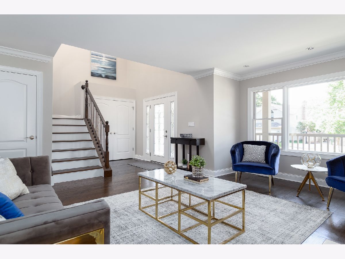 Impeccable single family rehab with 5 beds, 4.1 baths and 3500 sqft above grade + finished basement. All new electrical, mechanicals, plumbing, kitchen, baths, fixtures, finishes, and more! Flexible floor plan with multiple entertaining areas, great outdoor space and attached two-car garage with brick paver driveway and patio. Wrap around front porch opens to welcoming entry foyer open to second level. Sun filled living room with ample windows and fireplace with limestone mantle + adjoining dining area. Open concept eat in kitchen perfect for entertaining with high end Zline appliances, white shaker cabinetry, quartz countertops and backsplash, farmhouse sink and island with bar seating. Breakfast area with patio to deck and family room. Spacious upper level includes primary bedroom with large WIC and private bath featuring freestanding tub, separate shower with body sprays/rain shower/hand shower, and dual vanity. Three additional bedrooms, full jack and Jill bath with dual vanity, full hall bath with dual vanity, laundry room with LG washer/dryer and utilities complete the level. Beautiful hardwood flooring and crown molding throughout main/upper level. Finished lower level with rec room, media room, 5th bedroom, full bath and luxury vinyl plank flooring throughout. Pella wood windows. New high end sump pump with backup sump pump and battery. Corner lot with nice outdoor space. New fencing and landscaping. Top rated Fremd High School attendance area. Conveniently located near restaurants, conveniences, Jewel, public transportation, and 91 acre Riemer Reservoir Park featuring trail access, disc golf, a sled hill and more!