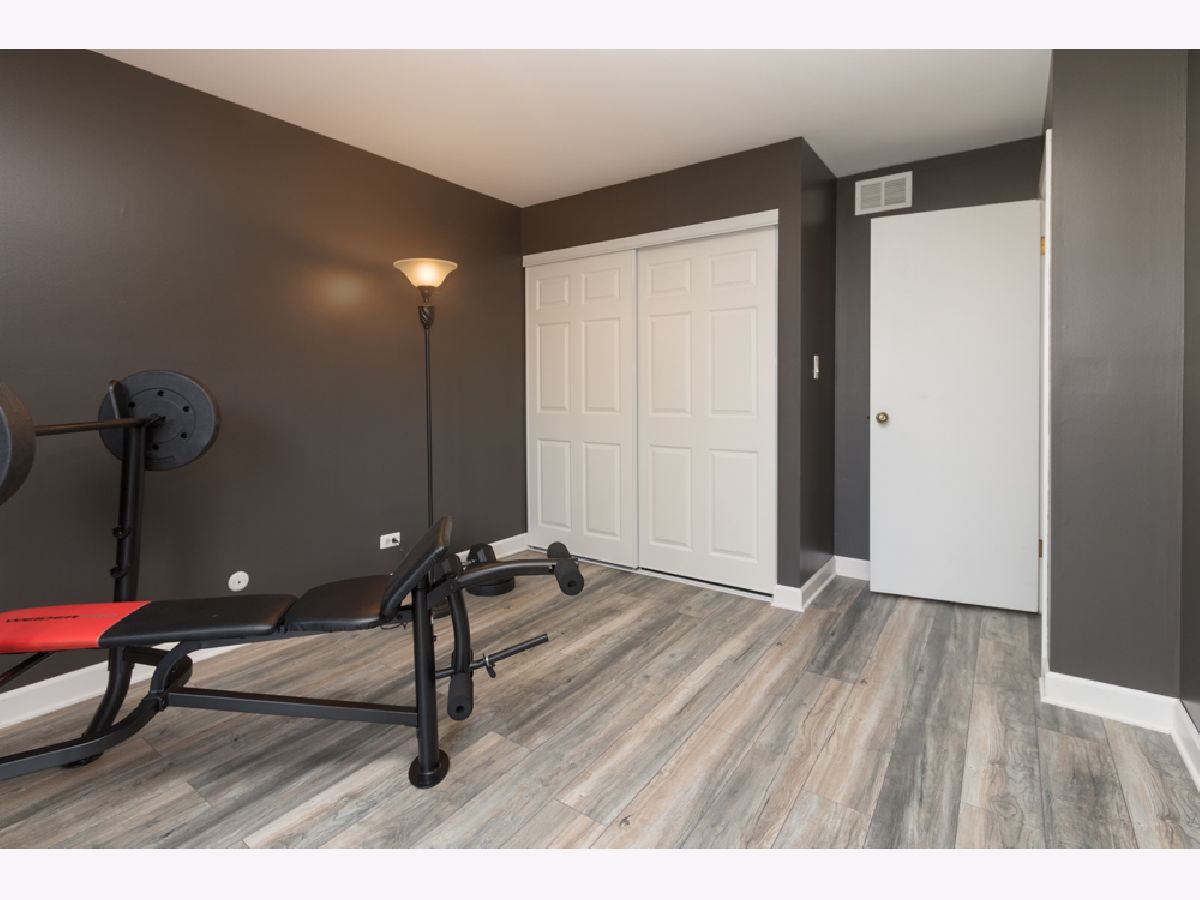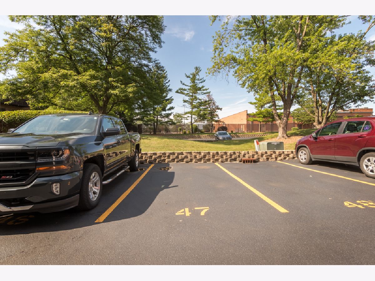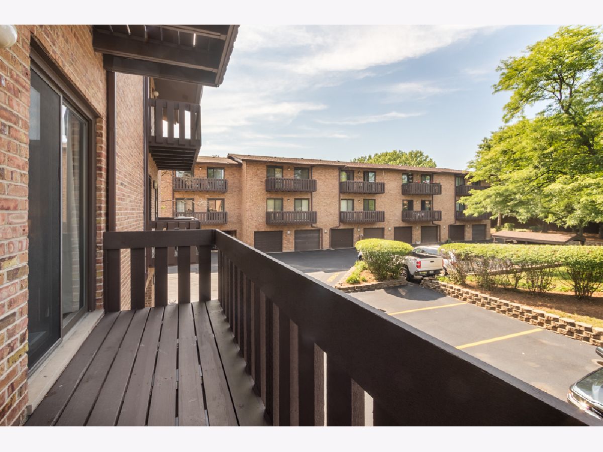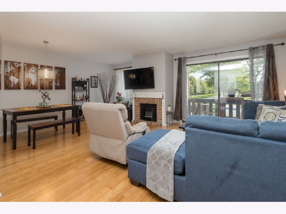 Here's a fabulous modern freshly painted 1st floor 2 bedroom, 2 bath condo unit just a few steps above ground level! Enter into this congenial open floor plan with wood laminate flooring thru out the spacious Living room, Dining room, Kitchen, hallway & both Bedrooms. Kitchen has beautiful cherry cabinets, granite counters & breakfast bar that overlooks Dining room & Living room areas. Centered Fireplace is stategically positioned between the Living & Dining rooms. Seller has never used fireplace & chose a temporary removable artifically insert. Patio doors in Living room give access to front balcony & HVAC closet. HVAC appx 2yrs old. 2nd balcony stretches across the back of the unit and can be accessed from either the Primary Bedroom or 2nd Bedroom. Primary Bedroom has private modern bath and great closet space. 2nd bedroom has great closet space too. Laminated flooring in both bedrooms is appx 1yr old. Notice newer contemporary white paneled closet doors thru out unit. SO unique is the private basement room for this unit that doubles as private extra storage area and laundry room where your full size washer/dryer & HWT are located. HWT is 2yrs old. Private 1 Car attached garage has new overhead door with new electric door opener and direct access to the private basement area. Additional parking space is #47. Convenient location to schools, shopping, restaurants & access to I-55. Come take a look and make it yours today!