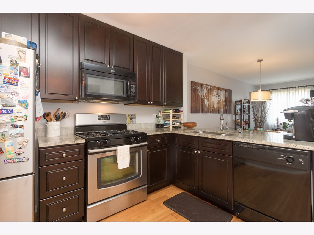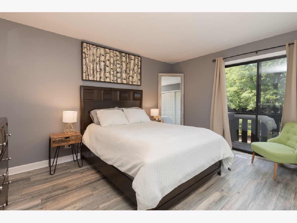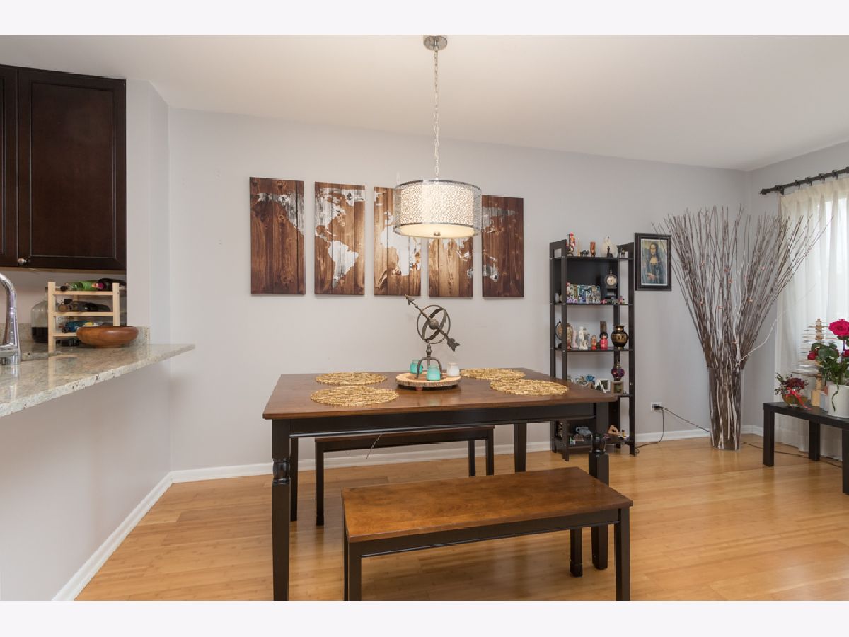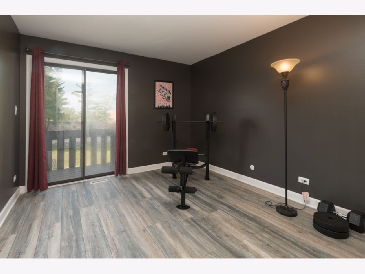 Here's a fabulous modern freshly painted 1st floor 2 bedroom, 2 bath condo unit just a few steps above ground level! Enter into this congenial open floor plan with wood laminate flooring thru out the spacious Living room, Dining room, Kitchen, hallway & both Bedrooms. Kitchen has beautiful cherry cabinets, granite counters & breakfast bar that overlooks Dining room & Living room areas. Centered Fireplace is stategically positioned between the Living & Dining rooms. Seller has never used fireplace & chose a temporary removable artifically insert. Patio doors in Living room give access to front balcony & HVAC closet. HVAC appx 2yrs old. 2nd balcony stretches across the back of the unit and can be accessed from either the Primary Bedroom or 2nd Bedroom. Primary Bedroom has private modern bath and great closet space. 2nd bedroom has great closet space too. Laminated flooring in both bedrooms is appx 1yr old. Notice newer contemporary white paneled closet doors thru out unit. SO unique is the private basement room for this unit that doubles as private extra storage area and laundry room where your full size washer/dryer & HWT are located. HWT is 2yrs old. Private 1 Car attached garage has new overhead door with new electric door opener and direct access to the private basement area. Additional parking space is #47. Convenient location to schools, shopping, restaurants & access to I-55. Come take a look and make it yours today!