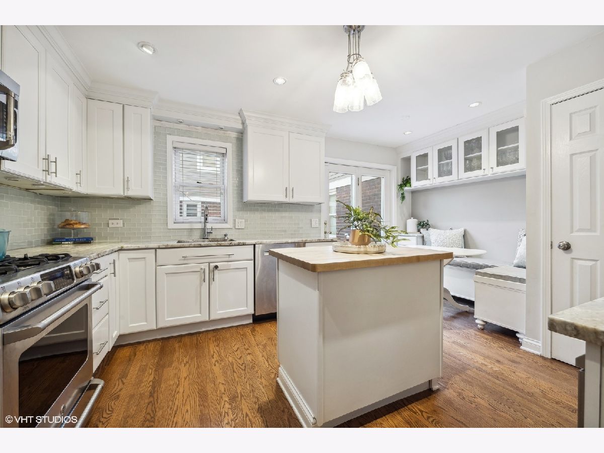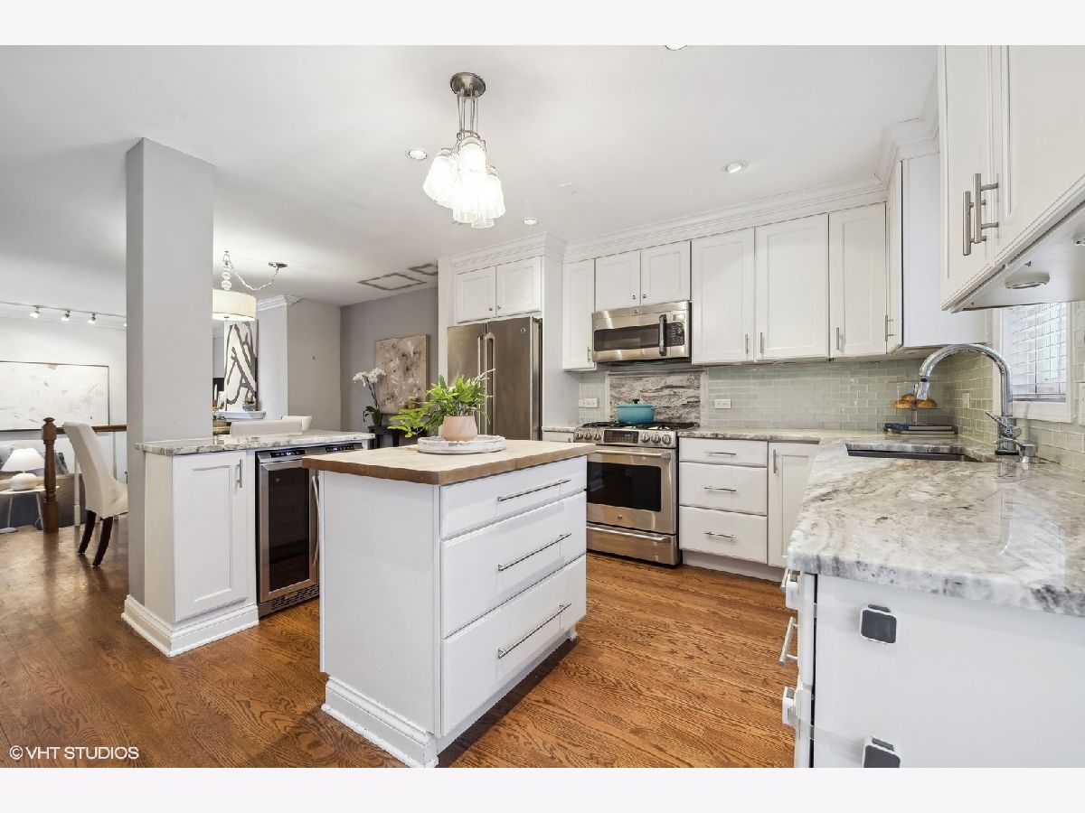 Welcome to this charming 3-bedroom, 2-bathroom townhome nestled in the heart of Southport Corridor in Chicago. This meticulously designed residence offers a perfect blend of contemporary comfort and classic elegance. The top level boasts 2 spacious bedrooms and a stylishly appointed Jack and Jill bathroom with dual vanity sink, separate soaking tub and frameless glass shower. The main level features an open concept layout, showcasing a cozy living room with a fireplace, a dining room perfect for entertaining, and a gourmet kitchen that will delight any chef. The kitchen is adorned with white cabinets, GE Cafe SS appliances, a dual fuel range (electric oven/gas cooktop) and beverage fridge; quartzite counter tops, and two islands - one with chopping and a glass subway tile backsplash. The custom built-in banquette has additional cabinets and adjacent pantry adds convenience to your culinary endeavors. Step out onto the large private deck off the kitchen, perfect for al-fresco dining or simply unwinding after a long day. The lower level presents versatile flex space that can serve as a third bedroom or a family room, complete with white built-ins and a full bathroom for added convenience. The expansive laundry room with utility sink ensures practicality. Enjoy the warmth of walnut-stained hardwood floors that grace the main level and the comfort of brand new carpeting upstairs and on the lower level. Ample storage throughout the townhome caters to your organizational needs. Hawthorne Court offers a delightful oasis within the city with its quaint courtyard. Located in the coveted Nettlehorst school district, this townhome offers not just a home but a lifestyle. Immerse yourself in the Southport Corridor charm, with its vibrant community and local amenities. Prime walk to everything location! Garage parking included.