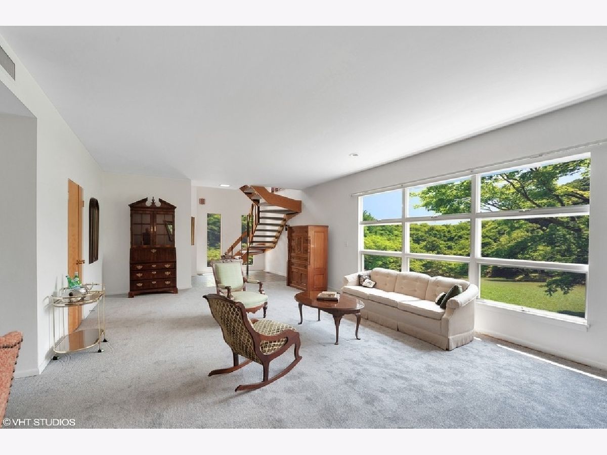 So much to love in this two-story mid-century modern home. The architectural integrity has been carefully maintained and awaits your own ideas. This special home has been enjoyed by long term owners who love being close to Ravinia, Braeside School, The Botanic Gardens and so much more. The Foyer welcomes you from the moment you enter. Love entertaining in the spacious LR/Dr. Enjoy high ceilings. Large floor to ceiling windows bathe each room in sunlight. The kitchen opens to the huge & inviting pine-beamed family room. Laundry is right off the kitchen. The dramatic staircase is typical of mid-century design. Upstairs, the large primary bedroom features a dressing area and bath. Four more bedrooms and a bath complete the 2nd flr. The 4th bedroom could become a laundry room. This is your opportunity to bring your ideas and update. Some rooms freshly painted. Bedrooms not photographed...now being used for storage. New carpeting on 1st flr and stairwell. Full basement w/shower, bedroom, rec room and storage. Extra high, deep garage w/hot & cold water. This home is a throwback to the late 60's and early 70's. Roof: 2014-15, A/C: 2014, H2O: 2015 Truly a home to be enjoyed!