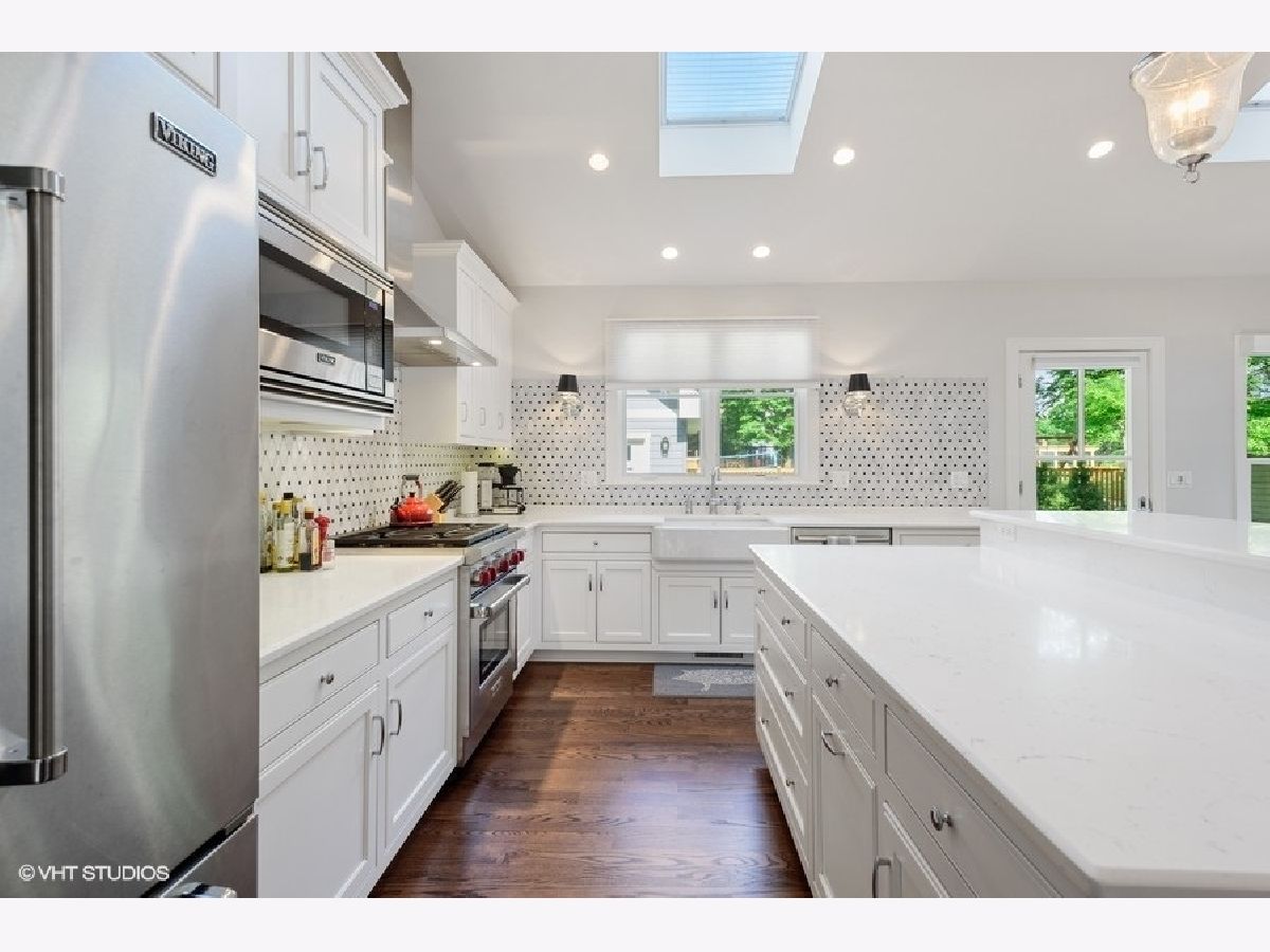 Steps to downtown Glen Ellyn shopping, dining, and entertainment, and St. Pets Private School. A custom build by legendary Glen Ellyn builder and renovator, Baumson Builders, this picturesque farmhouse-style home sits on the quietest half-street in town. Featuring the highest quality quartz countertops, Viking appliances, and custom cabinetry, the kitchen is suited for the most discernible chef and opens up to an oversized family room, ideally situated for entertaining. A truly open floorpan boasting 9 foot ceilings and gorgeous dark hardwood floors, the first floor includes a formal sitting room, full dining room, mudroom, and walk-in butler's pantry with an abundance of woodworking detail -- accentuated by not only a powder room, but full bath and 5th bedroom. The expansive second floor is adorned by 4 large bedrooms, 3 bathrooms, and laundry. Don't overlook the 1,250 square feet of primed third floor space. Plumbed for a full bath, soundproofed, insulated, and separate ac/heating system and ductwork installed, this space is perfect for the secret getaway space your heart desires. This masterpiece is capped off by an 1,100 square foot finished open layout basement with full bath. This splendid jewel isn't just a pretty facade. Architecture series Pella windows, separate nest heating zones, a backup generator, and electric car charger in the garage make this abode quite possibly the most energy efficient home in Glen Ellyn. So what are you waiting for?