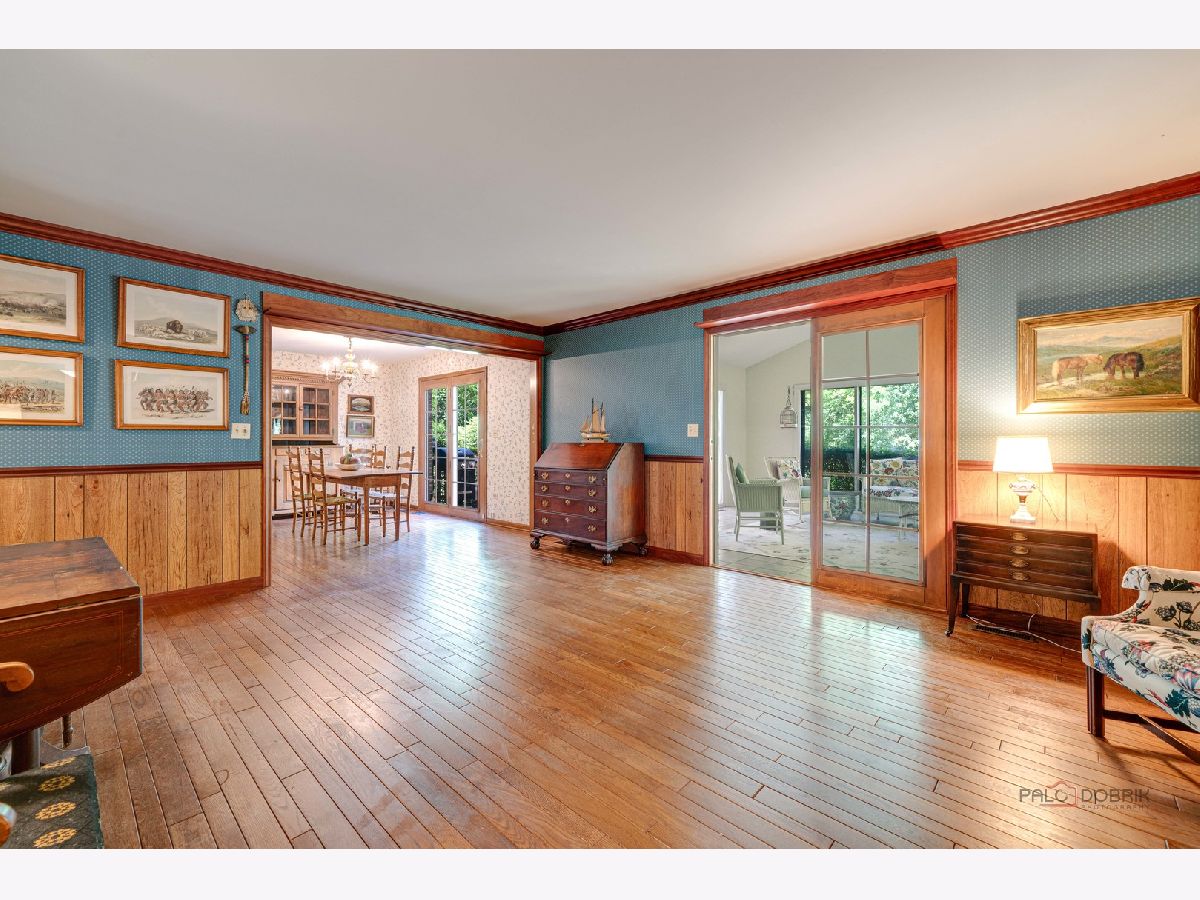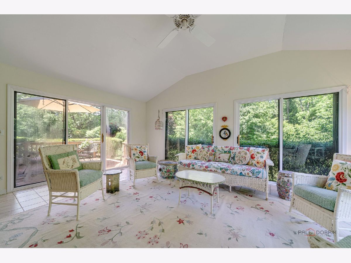 Excellent opportunity to live in the tranquil community of Lake Bluff! Located in the beautiful Wimbledon Estates neighborhood on a private cul-de-sac, this surprisingly large home offers close to 3000 sq. ft. of living space. As you step inside, you're greeted by the warmth of hardwood floors that flow throughout the main living areas, lending a timeless allure to the space. Good size kitchen, living room and dining room are great for family gatherings and entertaining. The warm and inviting family room with a gas fireplace opens to the lovely four season room where you will want to spend your time reading, relaxing and playing games. Desirable first floor laundry/mudroom is a big plus. Upstairs offers a huge primary suite with a walk in closet and large bathroom; two additional large bedrooms share a second full bathroom. Bring your vision to the unfinished basement or use for storage. Dine al fresco on the deck off of the eat in kitchen where you are surrounded by mature trees and pretty landscaping. Close proximity to all that Lake Bluff offers~Recreation Center with fitness/pool/golf course, parks, downtown, the Metra train and Lake Michigan. Come and see how you can make this home your own~estate sale, being sold "as-is".