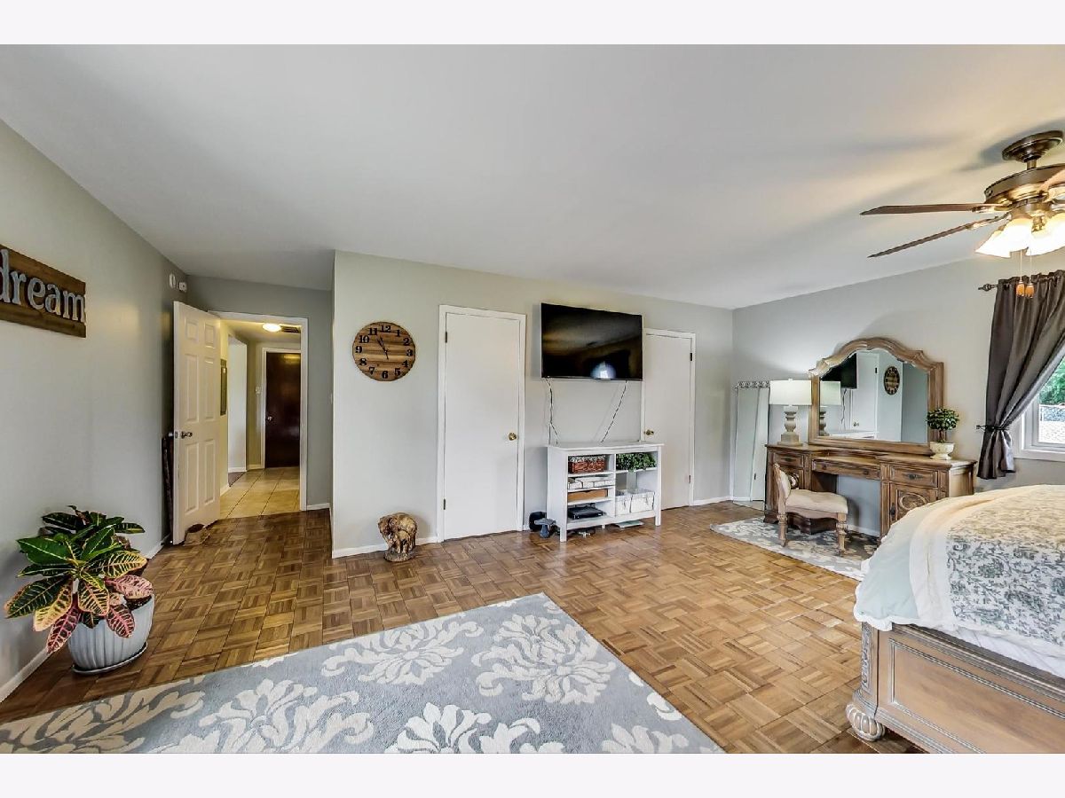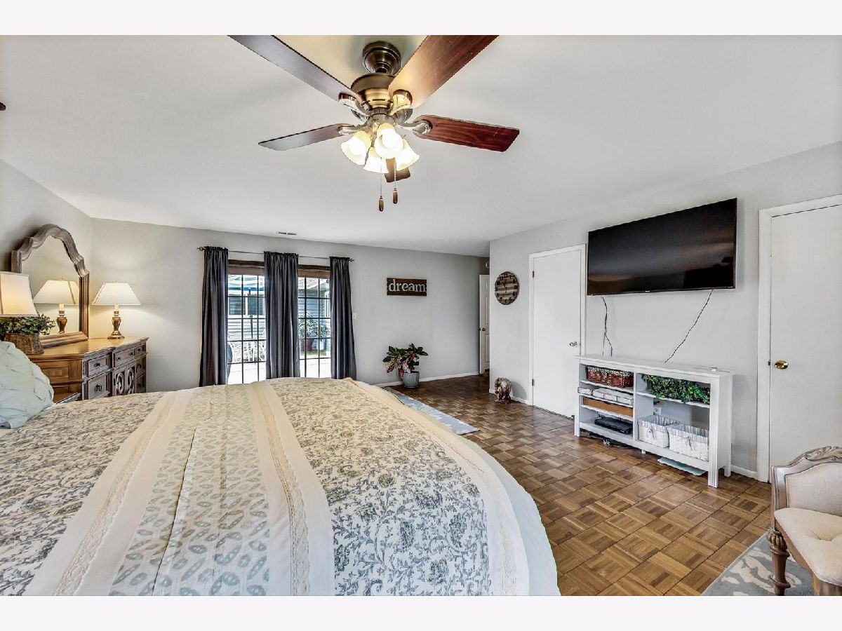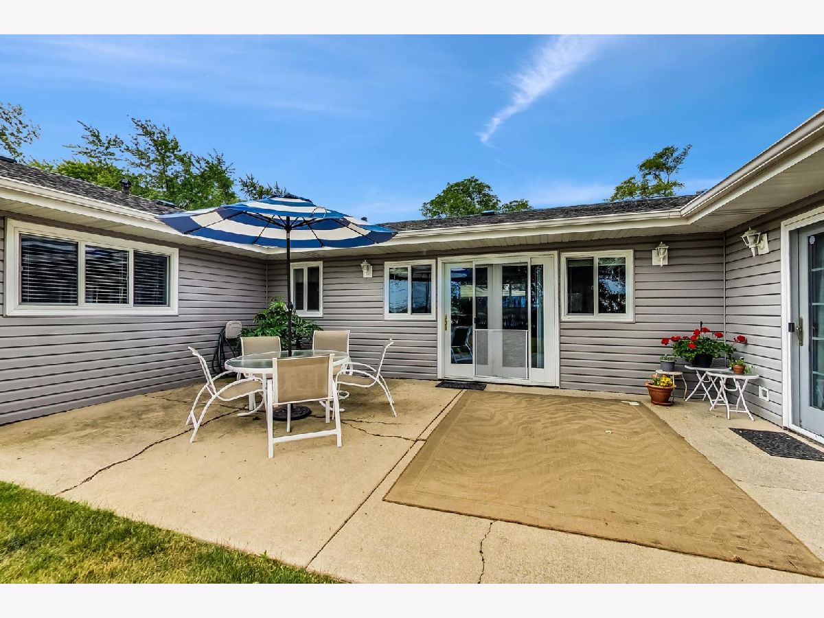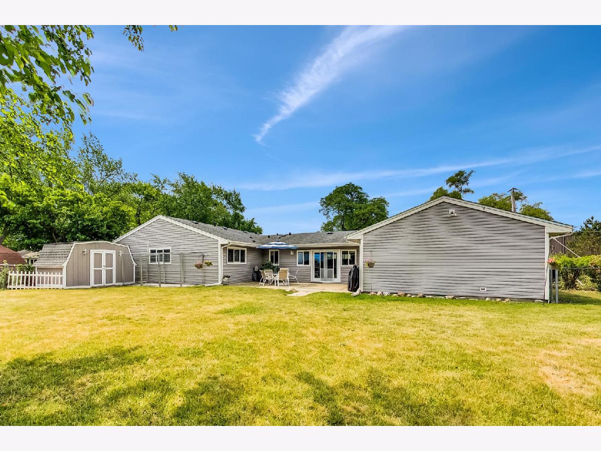 Don't let the outside fool you. This home is much larger than it looks. Expanded maintenance free ranch that has been updated throughout. Unique open floor plan. Sunny living room with half wall breakfast counter open to remodeled kitchen. Oak cabinets, neutral glass tile backsplash, all appliances and walk-in pantry. Large addition off kitchen provides dinette/eating area & huge family room with access to yard and patio. Master bedroom is sized for large suite of furniture w/ 2 walk-in closets. Both baths updated too. All the windows & doors have been replaced. Zoned HVAC. Pull down stairs to attic storage in hallway. Large shed and fenced dog run. Prime location. Spacious fenced-in backyard overlooking lake, bike trail & Heritage Park. This home is within walking distance of schools, metra, shopping, multi-million dollar park district community recreation center, sports complex & aquatic center! A must see inside and out!!