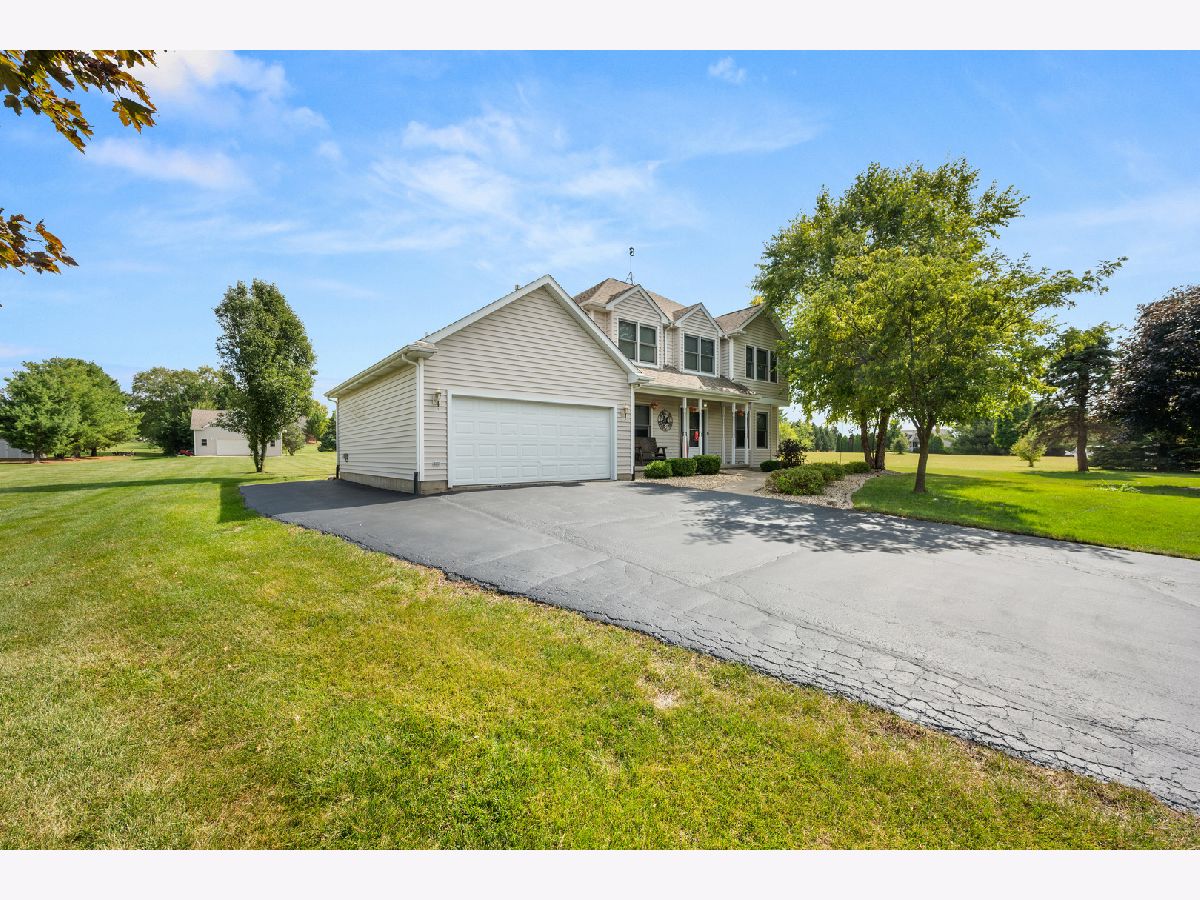 **Multiple Offers Received** Rare opportunity to own a beautiful home in a gorgeous country neighborhood hidden in the outskirts of Genoa. The property rests on a 1.12-acre lot, facing the west, allowing incredible views of the sunset over the cornfield. This two story, colonial style home offers 5 bedrooms, 2.2 baths along with a full finished basement and secondary garage. Enter a welcoming foyer area with high ceilings, new modern chandelier and luxury vinyl plank flooring that run throughout the first floor. Ahead you'll find a spacious Living/Dining combo arrangement that flows seamlessly into a sizeable Kitchen. Off the dining area is a sliding glass door that leads to an insulated 3 seasons room flooded with tons of natural lighting, overlooking the back yard. A substantially sized, canned lit living area is the heart of the home. Boasting a stone mantle wood burning fireplace, newer lighting fixtures and ceiling fan. The kitchen is updated with a new sink and faucet (2020), as well as new appliances. (2024) Directly off the kitchen is a laundry/walk-in pantry offering extra cabinet and counter space as well as convenient 1st floor laundry. Off the living room is a traditional dining room, great for family activities or holidays. The second floor has 4 bedrooms including the master suite and master bath equipped with jacuzzi tub, water closet and a stylish custom designed walk-in closet. The basement is finished with and in-law suite arrangement. Below, you'll find the 5th bedroom, a half bath equipped with rough-in drain for a shower addition. Full family room with a built-in wet bar. and gas fireplace. Heading out the kitchen is a heated and insulated 2.5 car garage. The exterior of the property is professionally landscaped with plenty of mature trees giving ample privacy from neighbors. The back yard is enormous and boast a separate 24'X 34" two story heated and insulted detached garage with concrete floors and separate 220-amp electrical panel. Other important mechanical updates include new HVAC system installed (2025), twin water softeners (2023), new roof (2016). Driveway seal-coated. (2025) Very well cared for property awaiting new owners. Don't wait. Set up your showing today!
