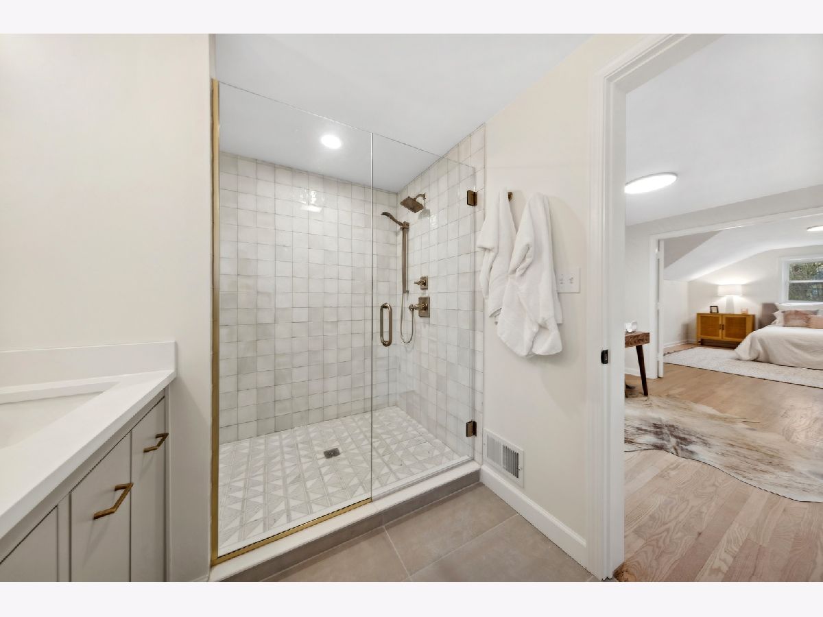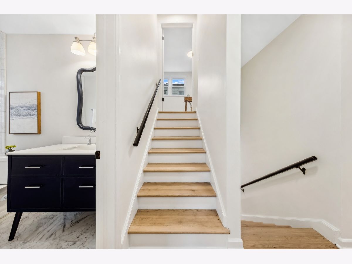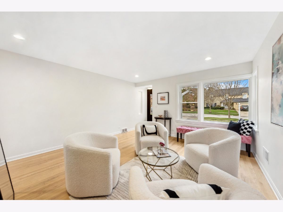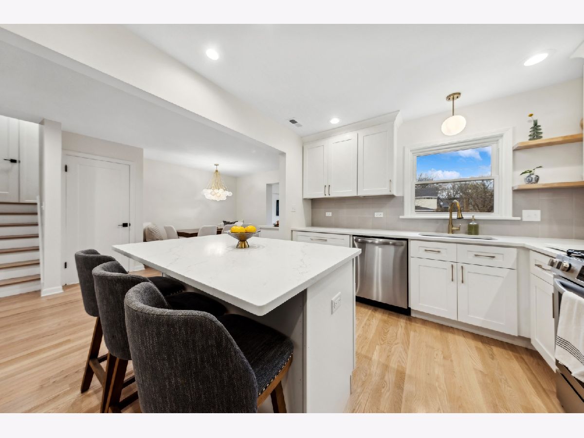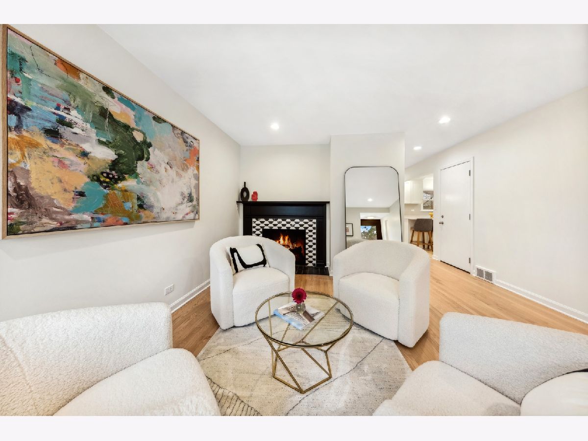 Absolutely gorgeous top to bottom, inside and out. This three bedroom 2 bath trilevel is even more spacious than it looks. Walk in to living room with wood burning updated marble surround fireplace. Attached garage now enters the house to mud-area, then opened up kitchen with white cabinets, quartz counters, island seating. Dining room with banquette seating dry bar with wine fridge. First floor family room (with new hardwood floors which have now been put in throughout and refinished where there was floors before) overlooks beautiful large yard and walks out to flagstone patio. Upper level has two large bedrooms which each have large closets. Full bath with marble floor. Then up a few more steps to the primary oasis. First walk in to flex room which could be office/zoom area, could be nursery, then huge room, massive walk in closet with extra attic storage as well. Gorgeous primary bath with double sinks, walk in shower. New windows throughout!