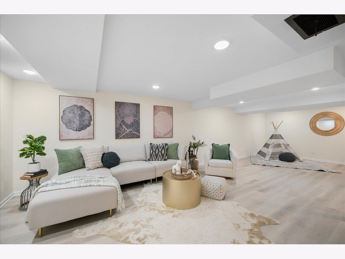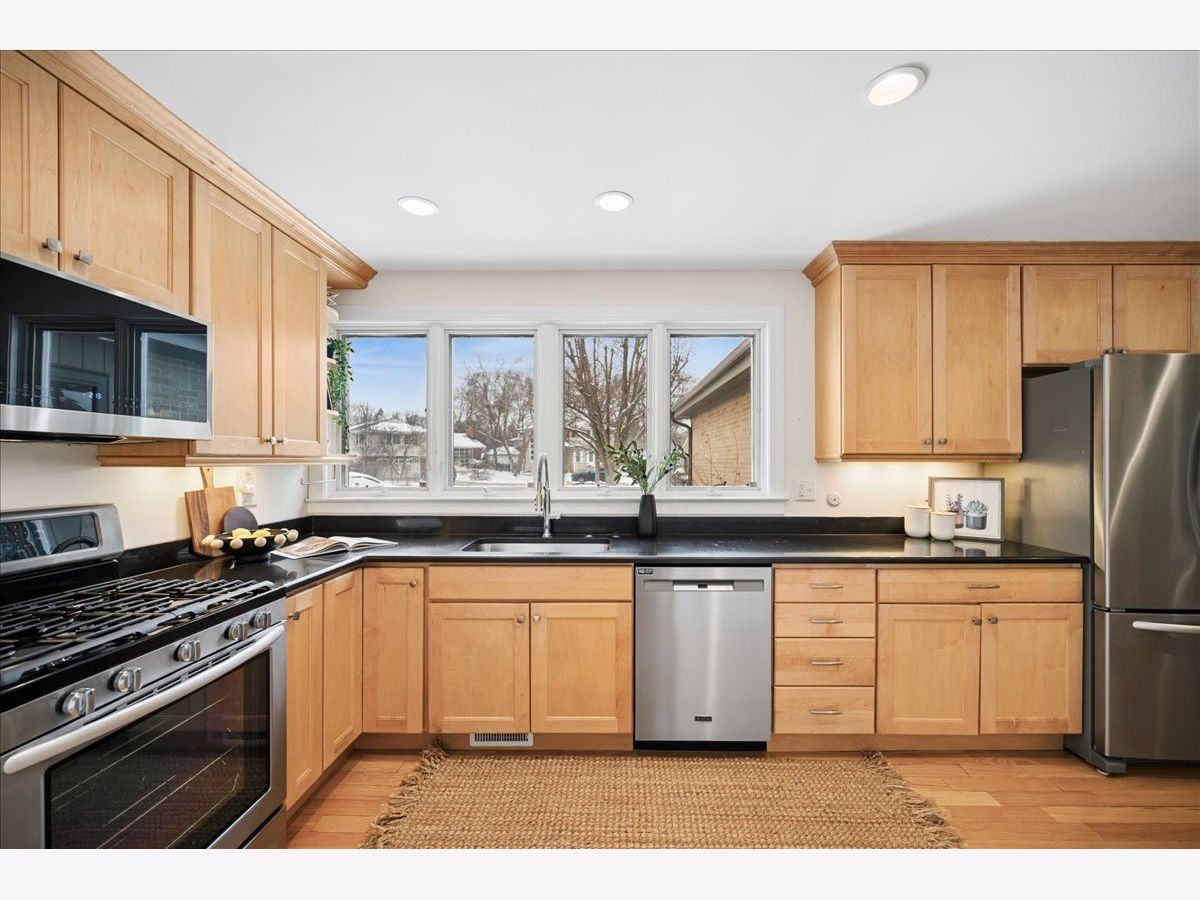 Rare renovated ranch with attached garage & finished basement in New Trier district. Tucked on a quiet cul-de-sac amid towering trees, this light-filled 4 bedroom, 2 1/2 bath gem offers the ease of single-level living with clean architectural lines, vaulted ceiling, hardwood floors, and a bright, open feel. Great Room with fireplace and views of the beautiful yard is open to the Breakfast Room & updated, sunny Kitchen. Separate Dining Room is perfect for holiday dinners. Primary suite is separated from the other three good-sized bedrooms. Finished basement was updated in 2021 and offers plenty of play space, storage & laundry room. Large, lovely fenced backyard with paver brick patio. Nothing to do but move in! Major renovation in 2015 included new kitchen, new baths, many new windows, upgraded electric, upgraded plumbing and more. Dry basement was renovated in 2021, roof replaced in 2017 & HVAC in 2018. Award-winning District #39 schools & New Trier HS. Convenient location close to parks, schools, Forest Preserve bike trails, Wayfair, Old Orchard mall shops & restaurants.