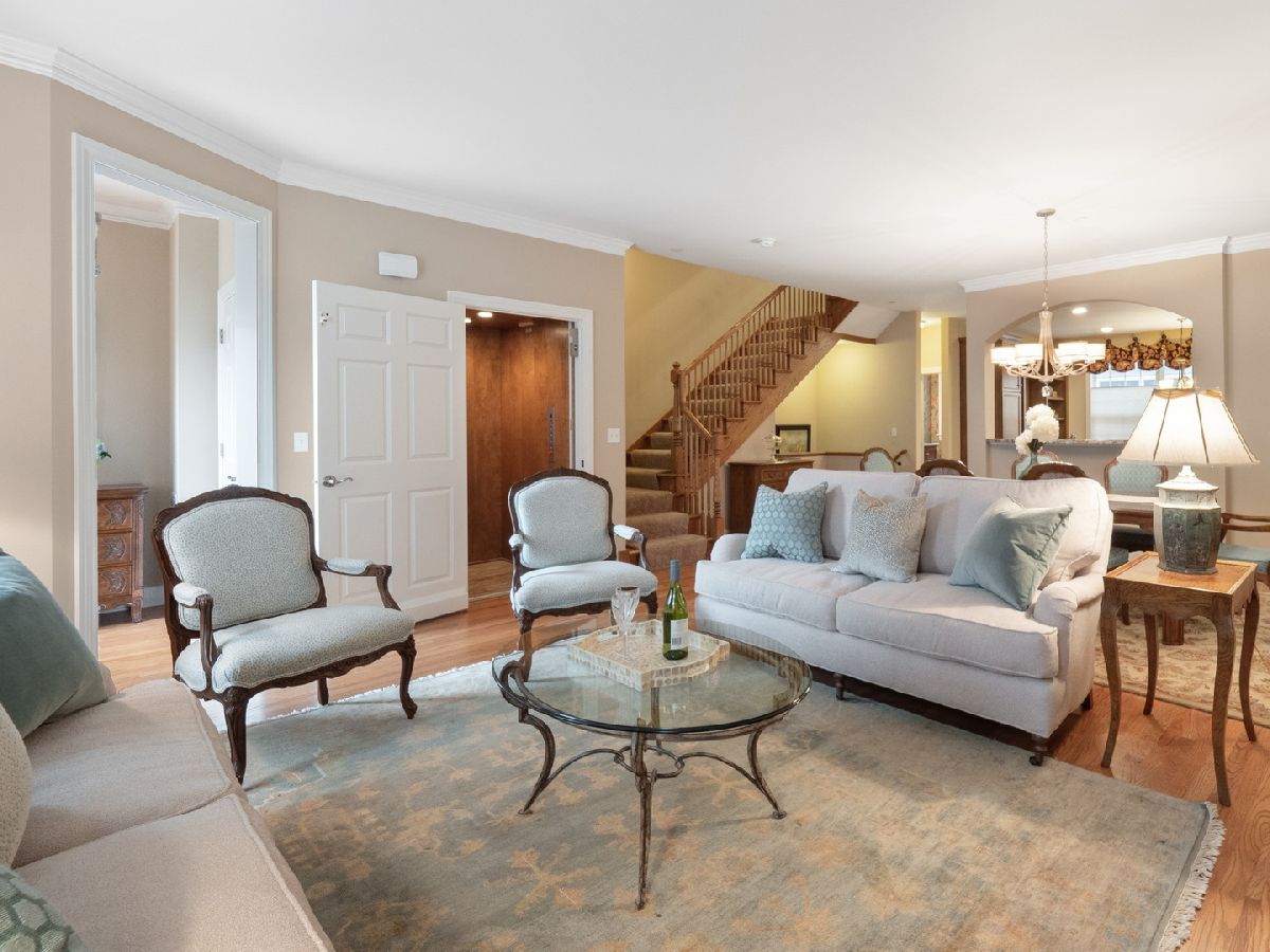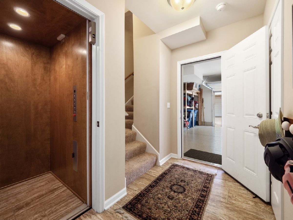 Enjoy life in the city! Stroll to shops and restaurants, Saturday's French Market, Starbucks, Mariano's, Metra Station, the library, and featured events at Memorial Park and Wheaton College! Located in Wheaton's historic district, a peaceful courtyard garden leads you to this lovely brick townhome with over 3,200 sq ft of refined living on four levels interconnected by a custom wood staircase and a private elevator. Tastefully selected features include gleaming hardwood floors, custom millwork, and designer window treatments throughout. The first level was designed with the pure enjoyment of family and friends in mind. The chef's kitchen has all the custom features that you'd expect, including a large prep island, ample granite counter space, two pantries, and tons of cabinet/drawer storage! Oversized windows provide an eating area that is washed in light. You'll find sanctuary on the second level with a grand master suite to rest and recharge; a second bedroom/office with custom cherrywood built-ins; a separate bath; and a convenient laundry room. The third level is where relaxation and family time takes place. In addition to a private third bedroom and full bath, the spacious family room features custom built-ins with a wet-bar and beverage refrigerator. It opens to a private Trex balcony for grilling and seasonal enjoyment. The lower level provides a large storage/bonus room and an oversized two car garage with epoxy floors and is wired with an EV Tesla Charger. Association fee includes indoor fitness center, outdoor sundeck and pool, and access to the lovely clubhouse suite with full kitchen for parties and larger gatherings. Welcome to your new maintenance free and convenient lifestyle.