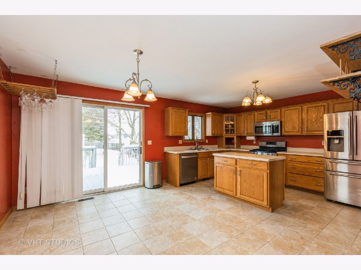 Welcome to your spacious new home near downtown Sycamore. Enter the front door to beautiful living room with vaulted ceilings that centers around a gas assisted wood burning fireplace which creates a warm and inviting space. It opens to a large dining area and kitchen with modern SS appliances and Daltile floors that are virtually indestructible. Plenty of windows and a sliding glass door to a raised deck to enjoy your fenced in backyard. There is also a large master bedroom and full bath on the main floor. Upstairs there are 2 additional bedrooms with plenty of space, a separate cozy loft area, and another full bath with walk-in safety tub. The finished basement has a third full bath and plenty of space for entertaining. There are multiple options for storage and a laundry room. Other amenities include a 12x12 storage building, new central air, newer roof, whole home carbon filtration system with reverse osmosis, new sump pump, and attached heated two car garage.