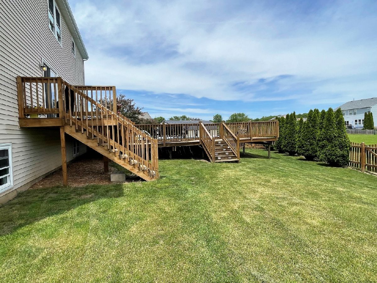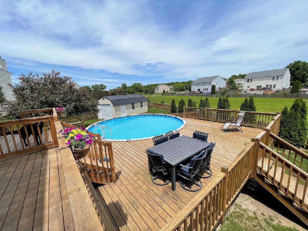 Amazing 5 bedroom home with an outdoor oasis featuring 2 tier deck, beautiful pool, and picket fence separated to keep pets in their own space if wanted. The home is in a cul-de-sac and backs up to an open area as well. This huge home features an open layout with a large living room opening up to the kitchen opening up to the family room. The formal dining room is currently used as a great office. Huge pantry/utility room with sliding door out to deck across the whole back of the house. Partially exposed basement with large rec room area separated somewhat for theater room with built-in speakers and ceramic tile area that once was a bar area. 1/2 bathroom with laundry tub that could easily be finished with a shower. 5th bedroom with walk-in closet in the basement. All bedrooms upstairs have walk in closets except one which has an extra-long closet. This house is light and bright and ready to move into with almost everything updated.