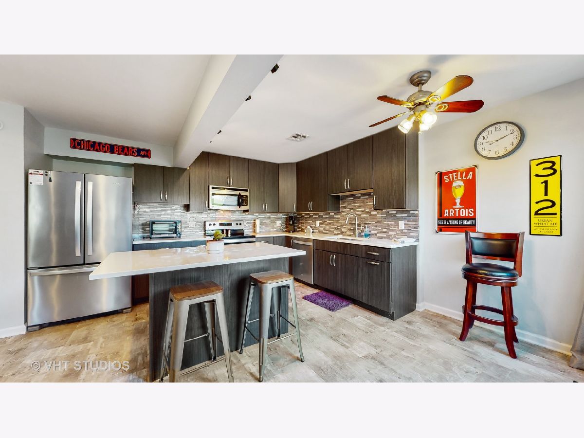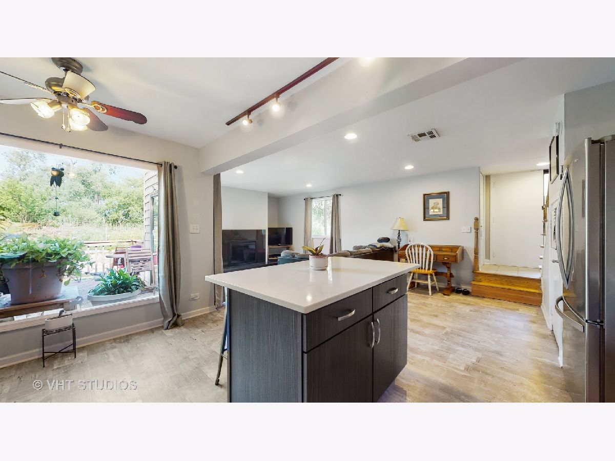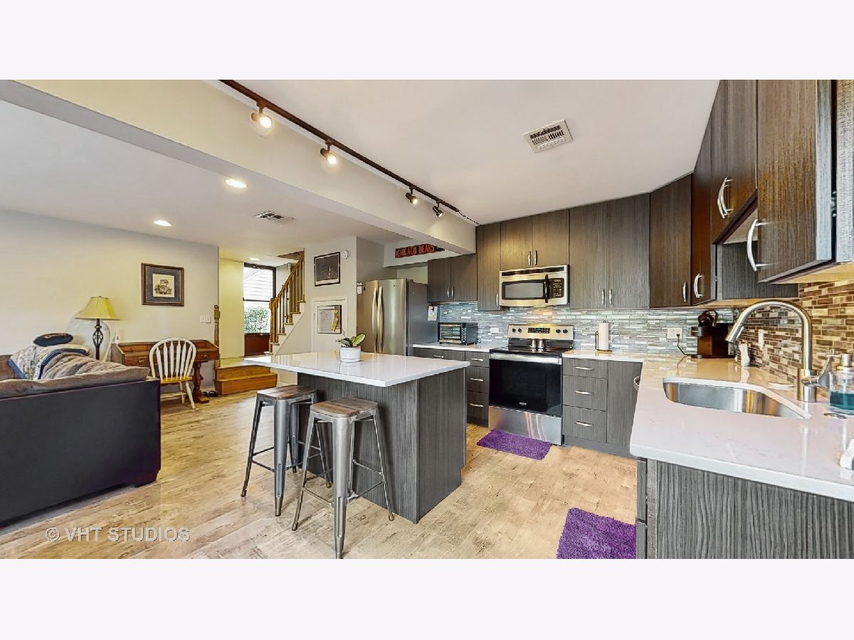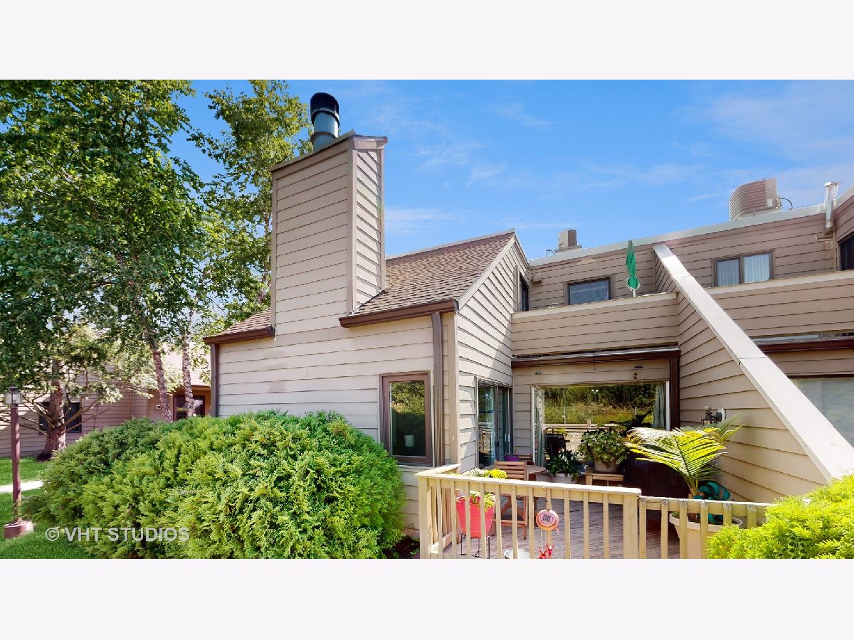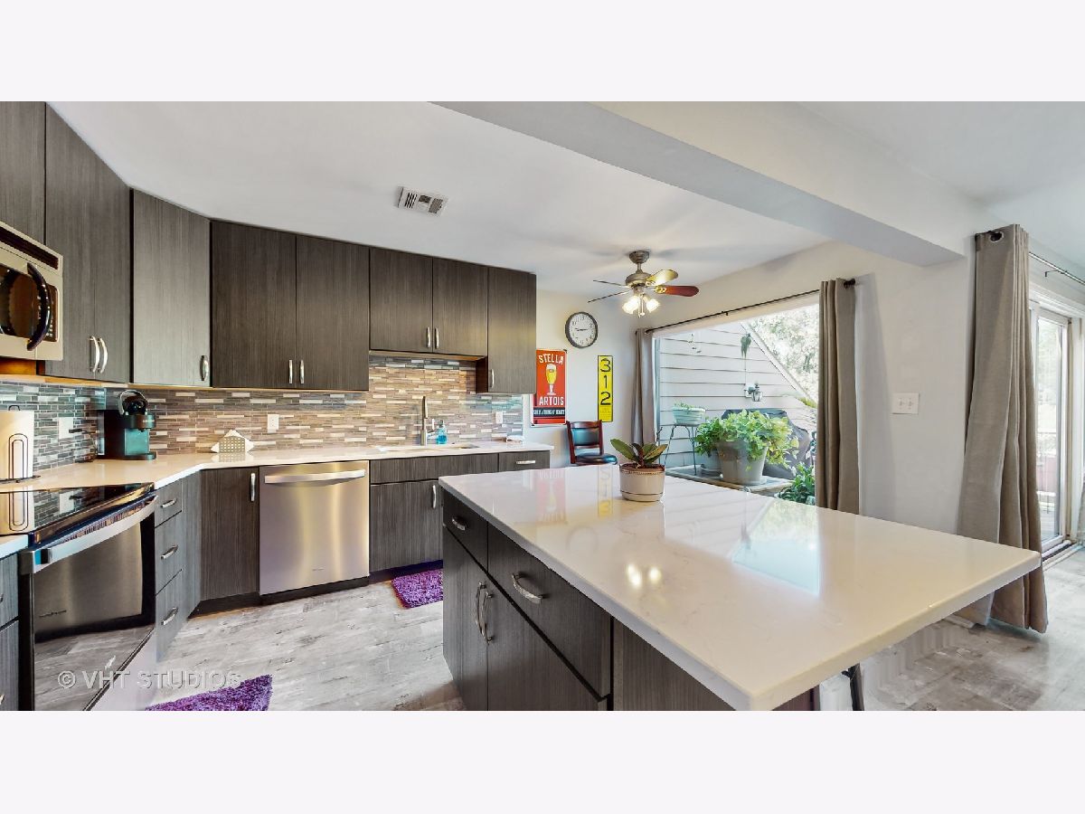 This one is GORGEOUS! Recently updated, open-concept 1BD/1BTH, 2-story condo with beautifully updated kitchen, granite fireplace & newer flooring throughout. Kitchen updated in 2021 w/ lots of cabinet storage & counter space, SS appliances, quartz counters, island & eat-in area. 2nd level features oversized bedroom w/ HWD floors, rooftop deck, updated full bath w/ stacked laundry. Enjoy the summer weather from the first floor patio & 2nd level private balcony! Newer hot water heater (2019). Seller has nearby 1 car garage space, possibly transferrable for $12/month! Pool, Tennis courts, clubhouse & pond also available through the association! Easy access to RT41 & IL94. Available for quick close. Furniture also available.