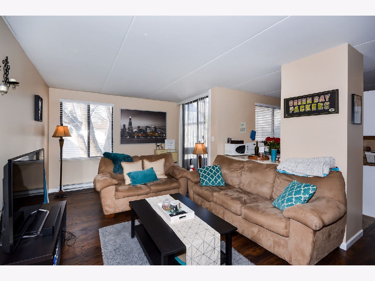 Looking to live in downtown Arlington Heights? Look no further! This investor friendly 2 bedroom/1bath condo is walking distance to the train, grocery store, and all restaurants & stores that Arlington Heights has to offer. One of only a few interior units that faces the courtyard. Home Warranty offered! Newer laminate hardwood floors and new carpeting in both bedrooms (Oct 2020) - Great outdoor patio (with grilling allowed) with access from 2 rooms - 2 parking spaces included - cable tv, water, garbage included in HOA. Individual storage units on site as well as laundry. Come see it today!