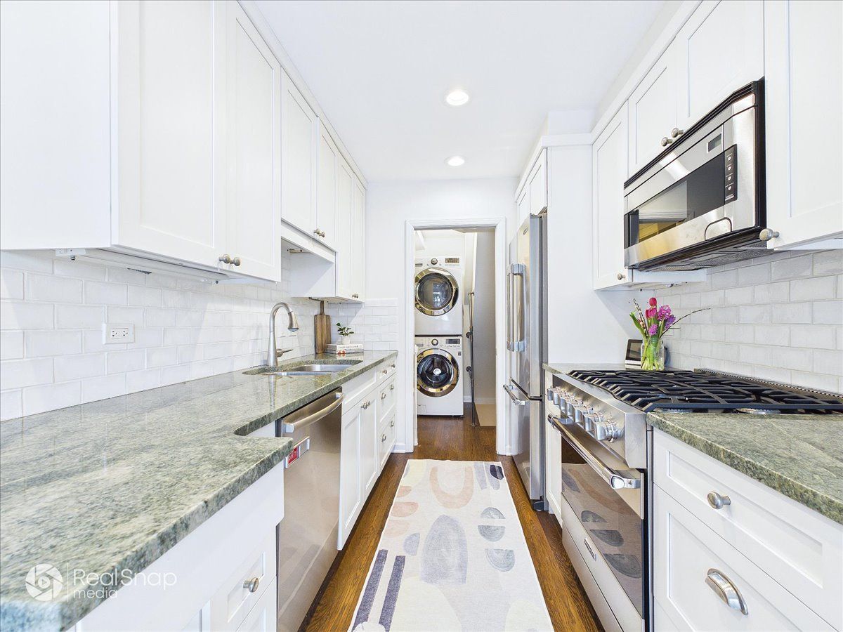 Located on a quiet, cobblestone, tree-lined street in East Wilmette, this beautifully updated 3BR/2.1BA townhome offers an ideal layout and prime location. Enter into the spacious foyer with slate floors, two large coat closets, and a stylish powder room with a granite vanity. From there, you'll walk into a sun-filled living room with a bay window, beautiful built-ins, and hardwood floors, which opens to a separate dining room perfect for entertaining. The kitchen features granite countertops, top-of-the-line appliances, hardwood floors, an eating area, and Marvin sliders out to the private bluestone patio. There is also first-floor walk-in laundry with full-size LG washer/dryer, utility sink, and storage. The second floor includes a large primary suite with two double closets and a gorgeous primary bath with marble basketweave floor, Caesarstone vanity, glass shower, and separate tub. Two additional bedrooms with hardwood floors, plus a generous full hall bath with marble herringbone floor and Caesarstone vanity complete the second floor. The finished basement offers extra space with a massive rec room and storage/mechanical room. The attic provides additional storage. Easy access to the garage, located just around the corner from the back patio. Enjoy summer walks to the beach and easy city access from the nearby CTA Linden stop. You can't beat this ideal East Wilmette location! Low assessment $210. Buyer pays Wilmette transfer tax. Dining room light fixture excluded.